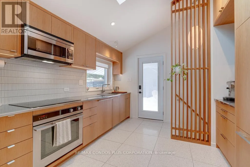Cross Streets: Midland & Dorcot. ** Directions: Midland to Dorset to Munson. Welcome to 6 Munson Crescent - A rare opportunity to own a carefully restored and design-forward mid-century modern home in one of the area's most celebrated architectural neighbourhoods. Meticulously renovated using period-accurate materials and design while integrating modern amenities, this home features original 1960 mahogany closets, doors, panelled feature walls and oak strip flooring. With its distinctive A-frame side-split structure and vaulted 1.5-storey ceilings, the abundance of natural light defines the living and kitchen spaces. Completely renovated, the custom kitchen leaves no inch untouched - it optimizes space and efficiency while maintaining a perfect sense of Mid-Century charm. New floor-to-ceiling mahogany cabinetry, Fisher & Paykel panel-front appliances, terrazzo quartz flooring, a Velux skylight w/motorized blind, and custom pocket doors create an open yet flexible layout. Designer lighting throughout includes a Herman Miller Bubble Lamp and many more period features.The upper floor includes 3 spacious bedrooms and overlooks the main floor. The renovated bathroom (2021) boasts a custom walnut vanity and matching built-in medicine cabinet, terrazzo quartz tile floors and a new skylight. Adding valuable living space, the basement (renovated 2022) is a wonderful cozy retreat complete with sound-deadening insulation, natural wool carpeting and a wood-burning fireplace with stone surround. There is also an entirely new spa-inspired bathroom, thoughtfully created with heated floors and custom mahogany cabinetry. Adding a massive amount of storage is the 38 x 11' crawl space and a workshop/laundry room. Extensive landscaping features California-inspired gardens, two custom wood-slat pergolas, mature trees, fully enclosed fencing, a new 8x17' shed and multiple outdoor living areas designed for privacy and year-round enjoyment. Additional upgrades: black vinyl double-pane windows, upgraded electrical panel, modern window coverings. This is a MUST SEE! (id:27476)