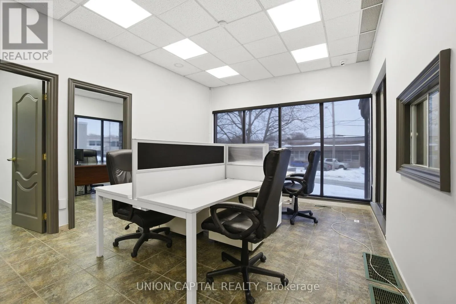 Rexdale Boulevard & Martingrove Road Located at 15 Airview Road, this well-maintained property offers excellent road exposure and approximately 1,926 sq. ft. of clean, functional office space. The finished basement includes a bathroom, kitchen, and additional office area, providing added flexibility. The warehouse is equipped with a drive-in door and is zoned E1.0, allowing for a wide range of permitted uses. Ideally situated minutes from Toronto Pearson International Airport, with quick access to major 400-series highways, public transit, and key commercial corridors, the location offers outstanding connectivity and convenience. (id:27476)