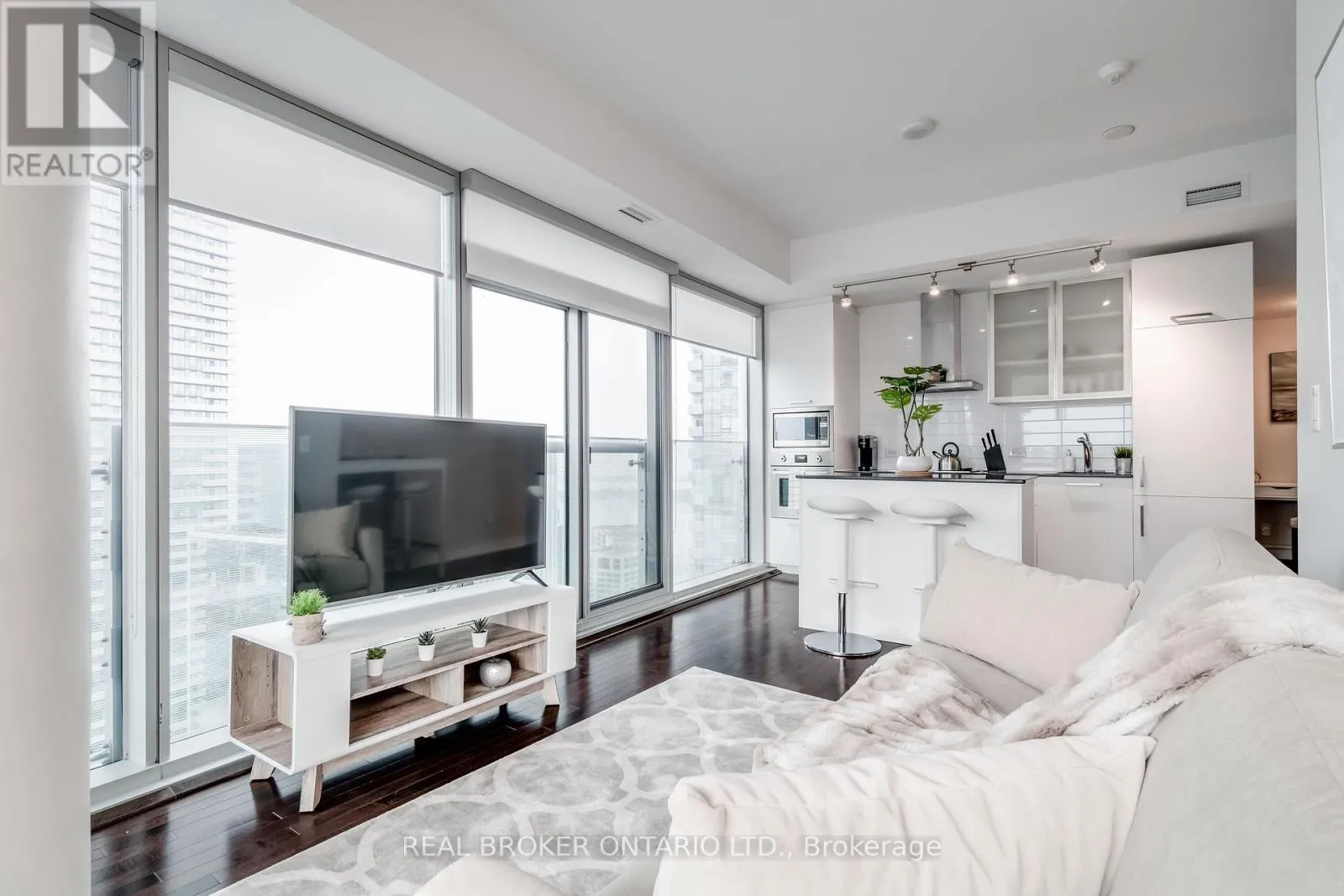 Cross Streets: York St/Bremner Blvd. ** Directions: 12 York is the first tower on your right after crossing Bremner Blvd, about 400-500m from Union Station. You may also follow the PATH signs for ICE Condos or 12 York St. An escalator at the NE entrance provides direct access into the building. Stunning Corner Suite, High Floor, Amazing Views, Unbeatable Waterfront Location. Experience luxurious urban living in this spacious unit that features an open-concept layout with 9-foot ceilings and floor-to-ceiling windows that flood the space with natural light while offering breathtaking views of the cityscape and skyline. The modern kitchen is equipped with built-in stainless-steel appliances, granite countertops, and an undermount sink. Hardwood flooring runs throughout the living areas, leading to a large, private wrap-around balcony perfect for enjoying the vibrant city atmosphere. For added convenience, the unit includes ensuite laundry, one underground parking spot, and a storage locker. As a resident of this Scandinavian-inspired building, you will have access to world-class, resort-style amenities designed for wellness and recreation. It features a 24-hour concierge and a state-of-the-art fitness center with a yoga studio and weight areas. Relax in the indoor swimming pool, hot tub, sauna, or steam rooms, or entertain guests in the stylish party room, media room, or rooftop deck. Additional facilities include a business center, guest suites, and a mezzanine-level secured child play room. Located in the heart of Toronto's South Core, this unit offers an unbeatable location with direct access to the underground PATH network. You are just steps away from major transit hubs like Union Station and top-tier entertainment venues including the Scotiabank Arena, Rogers Centre, and CN Tower. Everyday conveniences are at your doorstep, with a Longo's supermarket, LCBO, and various fine dining options located within the immediate area. With a near-perfect walk score, you are perfectly positioned between the bustling Financial District and the scenic Toronto Waterfront. (id:27476)