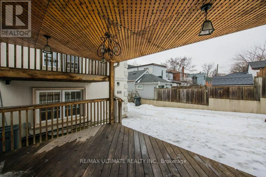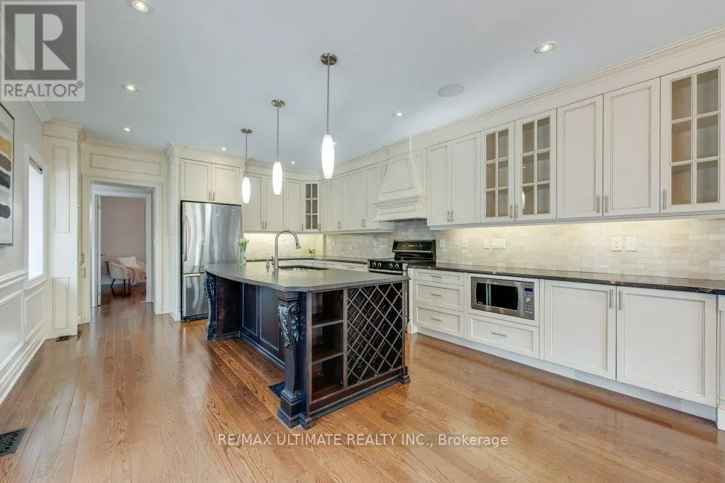Cross Streets: Rogers Rd and Dufferin St. ** Directions: One Block north of Rogers Rd and west of Harvie Ave. Beautifully Renovated Home on a Large Private Lot with Driveway and Laneway Access This fantastic property sits on an expansive lot and features a private driveway plus laneway access-ideal for added parking, privacy, or workshop use. Completely renovated throughout, the home offers a bright open-concept main floor with both front and side entrances. The living and dining areas showcase hardwood floors, crown moulding, and elegant wainscoting, creating a warm and inviting atmosphere. The modern kitchen is designed for both style and function, featuring a large Centre island, granite countertops, wine fridge and wine rack, ceramic backsplash, and a breakfast bar with a walkout to the patio-perfect for indoor-outdoor entertaining. The home offers exceptional flexibility with two primary bedrooms, including one on the main floor with a semi-ensuite and double closet, which can also serve as a spacious family room. An open oak staircase leads to the upper level, where you'll find a generous primary suite complete with a 5-piece ensuite featuring a jacuzzi tub, separate shower, custom cabinetry with marble counters, his-and-hers closets, and a walkout to a private balcony. Two additional well-sized bedrooms with closets complete the upper level. The professionally finished basement impresses with high ceilings, double-door entry, and an open-concept living and dining area overlooking a modern kitchen with ceramic backsplash-ideal for extended family or entertaining. A rare triple garage with its own lower level and a 2-piece washroom offers incredible potential for a workshop, studio, wine cellar. With its wide private driveway, laneway access, and thoughtfully upgraded interior, this home delivers outstanding space, privacy, and versatility for a variety of lifestyles. The lot includes the numbers 62 and 64 of Teignmouth Ave, potential garden suite. (id:27476)