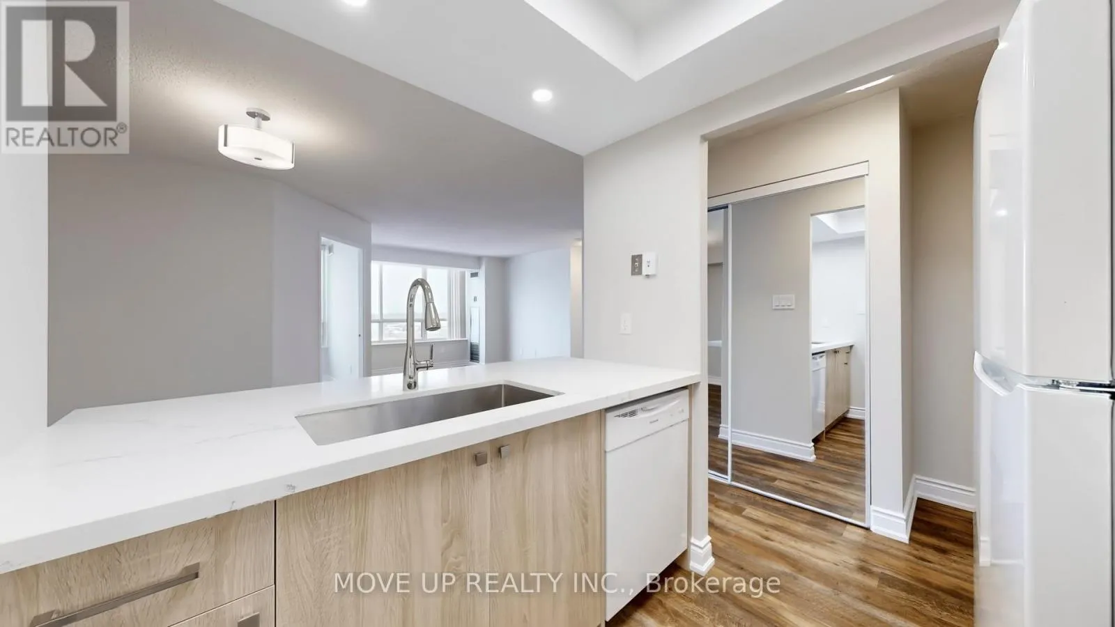 Midland And Danforth Bright and spacious, this hidden gem offers an exceptional layout and scenic views within a prestigious Tridel gated community in a highly sought-after Toronto East location. This beautifully renovated two-bedroom residence features a thoughtfully designed split-bedroom floor plan and a generously sized open-concept living and dining area, ideal for both everyday living and entertaining. The modern kitchen is equipped with quartz countertops and backsplash, newer appliances, and a convenient breakfast bar. Additional highlights include a stylishly updated bathroom, new vinyl flooring throughout, potlights and upgraded light fixtures. The elegant primary bedroom provides a tranquil retreat with ample closet space and a semi-ensuite bathroom. Residents enjoy outstanding amenities, including a gated security entrance, indoor and outdoor swimming pools, a fully equipped fitness centre, sauna, games and media rooms, as well as squash and tennis courts. Enjoy unparalleled convenience with easy access to the TTC, GO Train, and a nearby shopping mall. Rent includes heat, hydro, and water and one parking space. (id:27476)