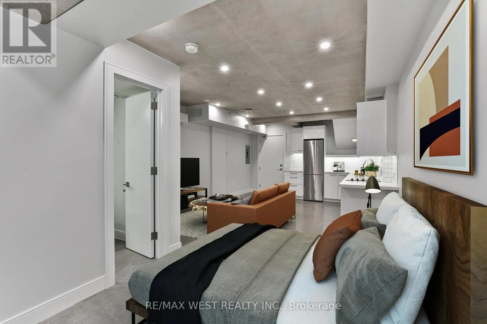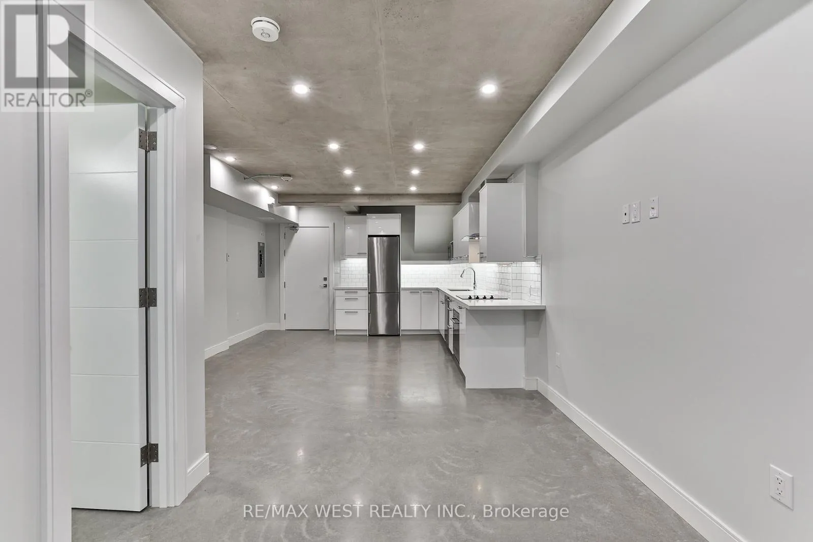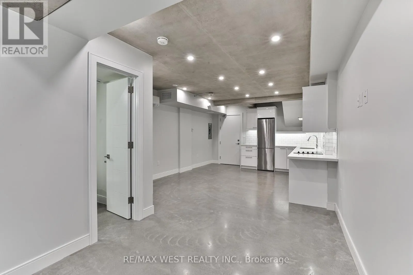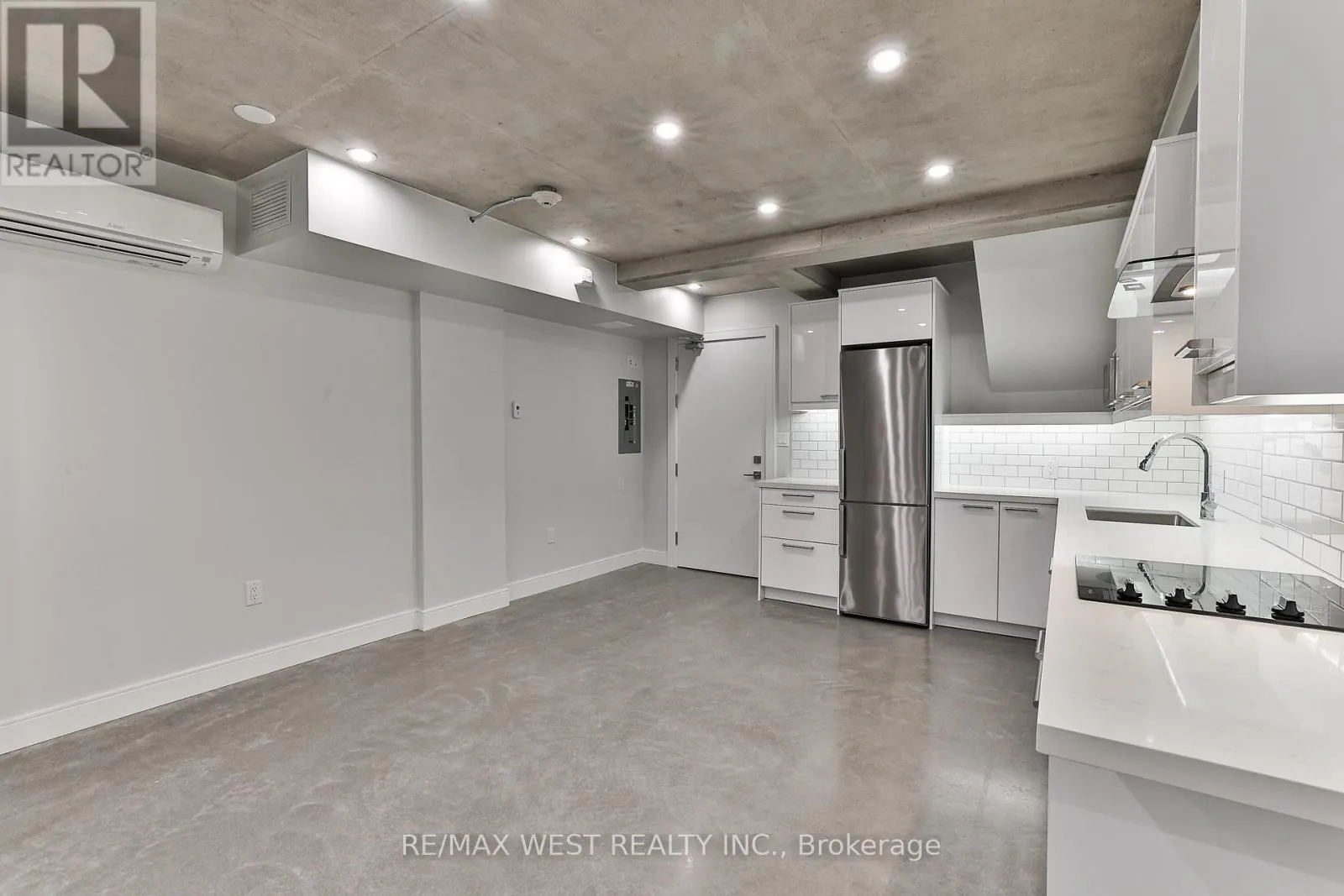 Keele St * Eglinton Ave W Brand new LOWER LEVEL UNIT in stunning boutique building built w/ finest craftsmanship & incredible attention to detail. Bachelor/studio unit with open concept lofty feel. Featuring high exposed concrete ceilings, polished concrete flrs w/ radiant in-floor heating, pot lights & custom kitchen w/built-in S/S appliances & quartz countertops. Functional open concept layout w/ loft style feel. W/3Pc Ensuite w/ walk-in shower. Access to BBQ in common area. Just steps from stockyards, 401, Ttc & Lrt! Water included, just pay gas & hydro (Street parking is free) Very well insulated (solid concrete walls and ceiling with sound proofing)HRV system (allowing for fresh outside air to be recirculated into the unit) (id:27476)