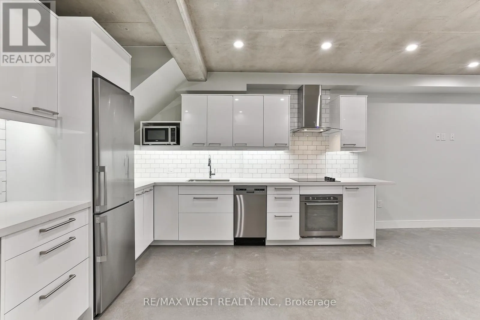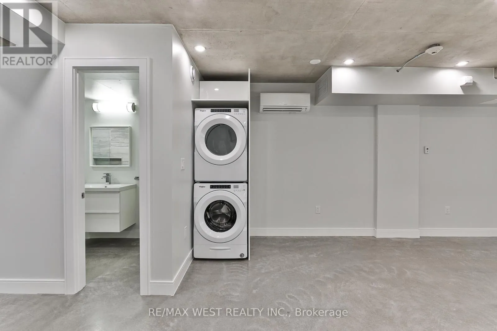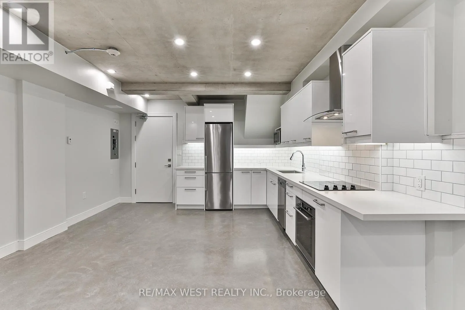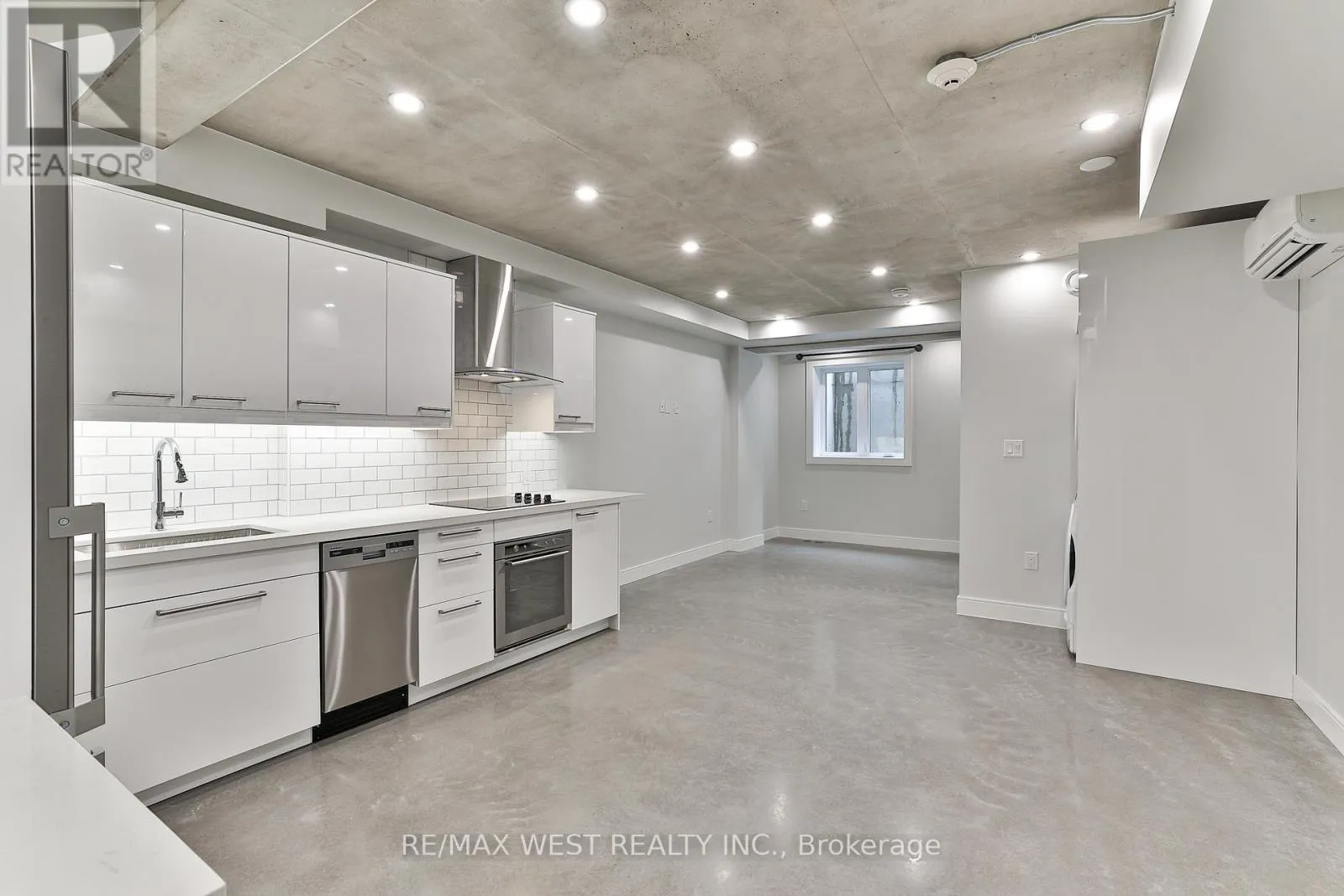 Keele St * Eglinton Ave W Brand new LOWER LEVEL UNIT in stunning boutique building built w/ finest craftsmanship & incredible attention to detail. Bachelor/studio unit with open concept lofty feel. Featuring high exposed concrete ceilings, polished concrete flrs w/ radiant in-floor heating, pot lights & custom kitchen w/built-in S/S appliances & quartz countertops. Functional open concept layout w/ loft style feel. W/3Pc Ensuite w/ walk-in shower. Access to BBQ in common area. Just steps from stockyards, 401, Ttc & Lrt! Water included, just pay gas & hydro (Street parking is free) Very well insulated (solid concrete walls and ceiling with sound proofing)HRV system (allowing for fresh outside air to be recirculated into the unit) (id:27476)