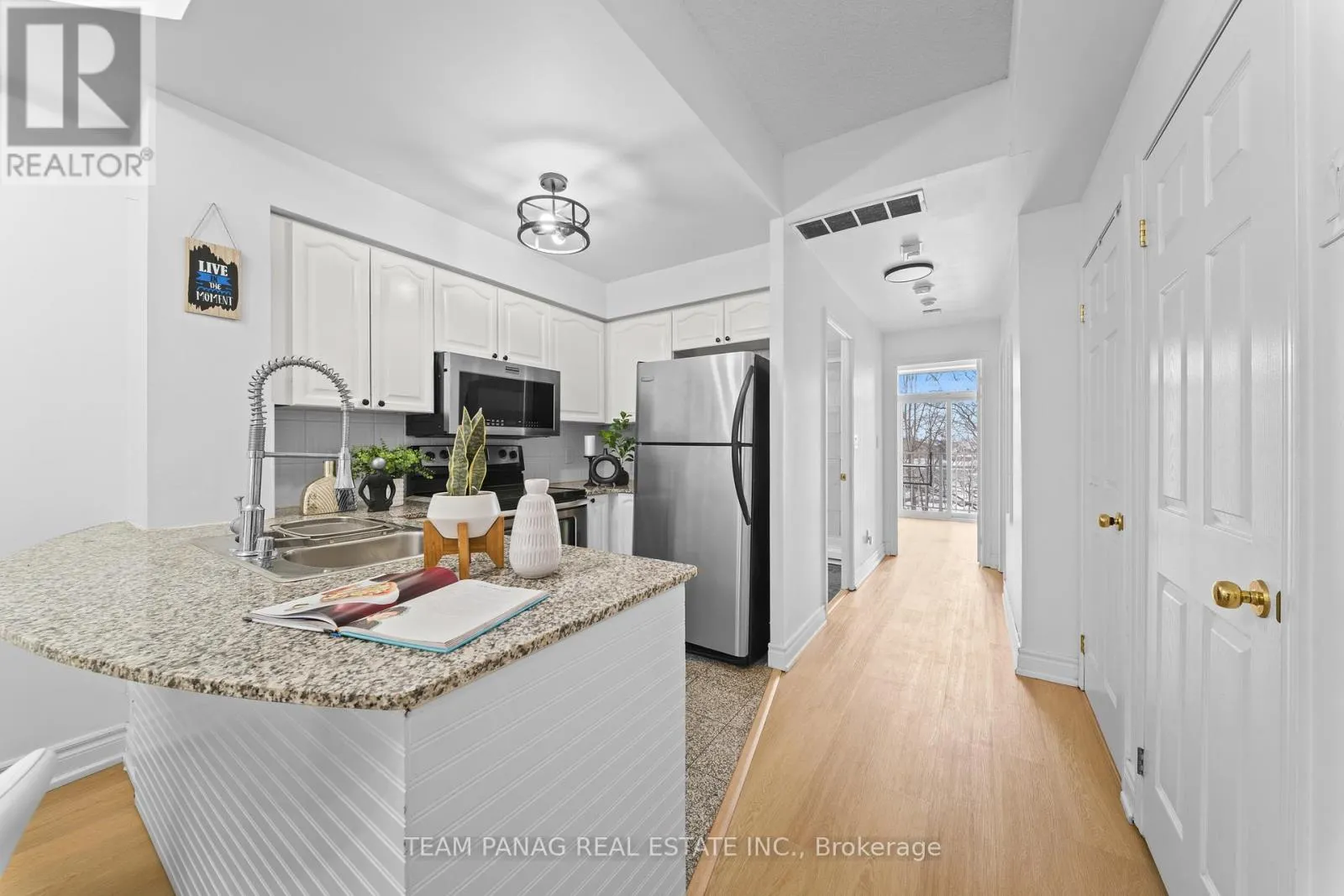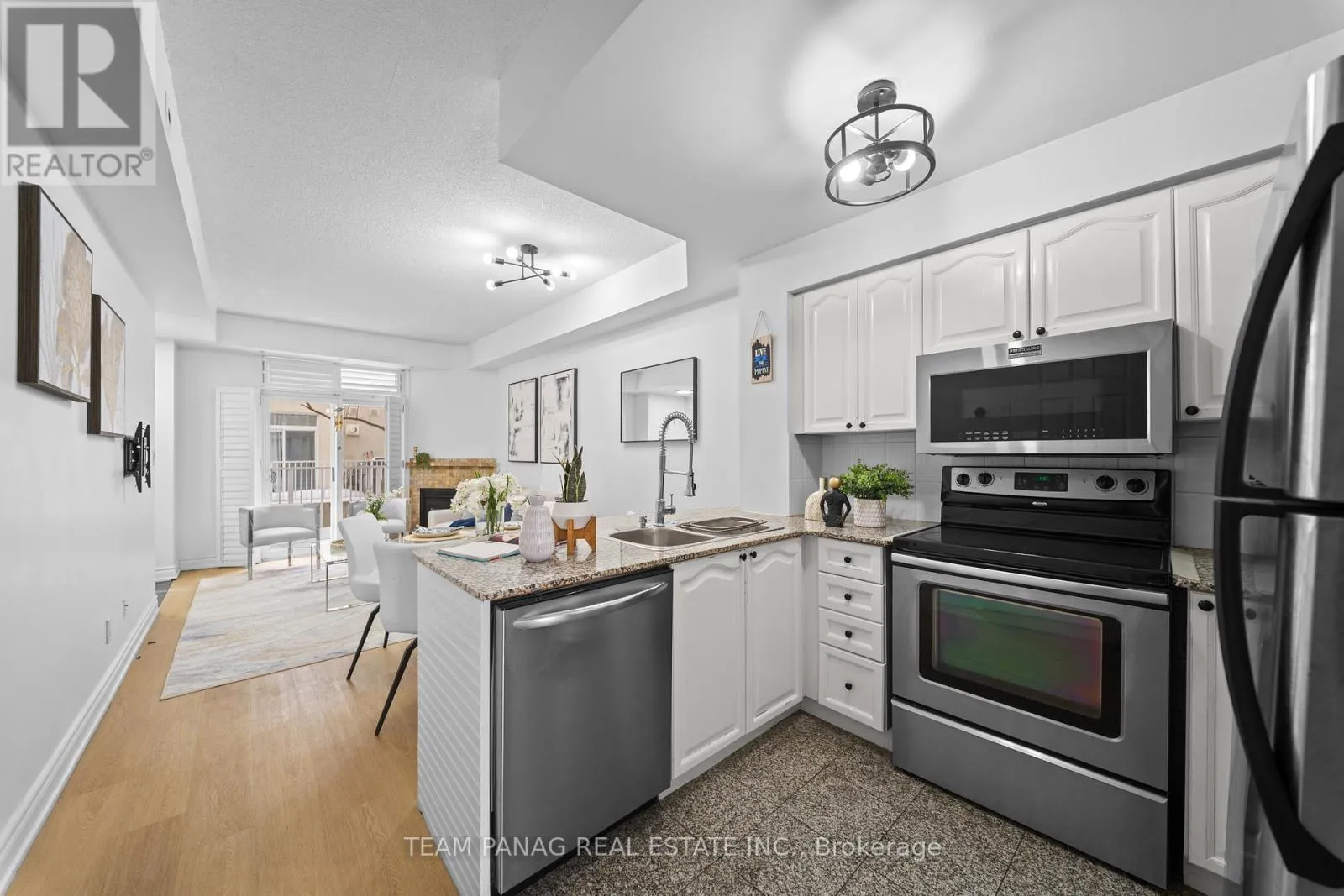 Stadium Rd & Queens Quay Welcome home to your own private retreat by the water. This stunning unit features 2 spacious bedrooms, 1 beautifully appointed bathroom, a chef-inspired kitchen, a striking gas fireplace, abundant natural light, and not one but two balconies perfect for relaxing and taking in the surroundings. The south-facing balcony offers serene lake views you'll never get tired of. Thoughtfully upgraded throughout, this home is completely move-in ready-just unpack and enjoy. The newly installed light luxury vinyl flooring brightens the entire space, while the elegant wainscoting on the kitchen island adds a charming, coastal-inspired touch. The spa-like bathroom is sure to impress with its upgraded vanity and sleek walk-in glass shower. Location truly sets this home apart. You're just steps from TTC transit, grocery stores, shops, the waterfront, Billy Bishop Airport, major highways, the marina, yacht club, and more. Perfectly situated, this residence truly lives up to the South beach Marina Townhomes name. A must-see-you won't be disappointed. Extras: Stainless steel fridge, stove, microwave/range combo, and dishwasher. Washer and dryer. All existing light fixtures and window coverings. One parking space included. Doorbell, Google Nest, and storage shelving in the living room closet. (id:27476)