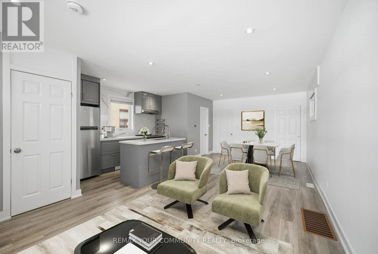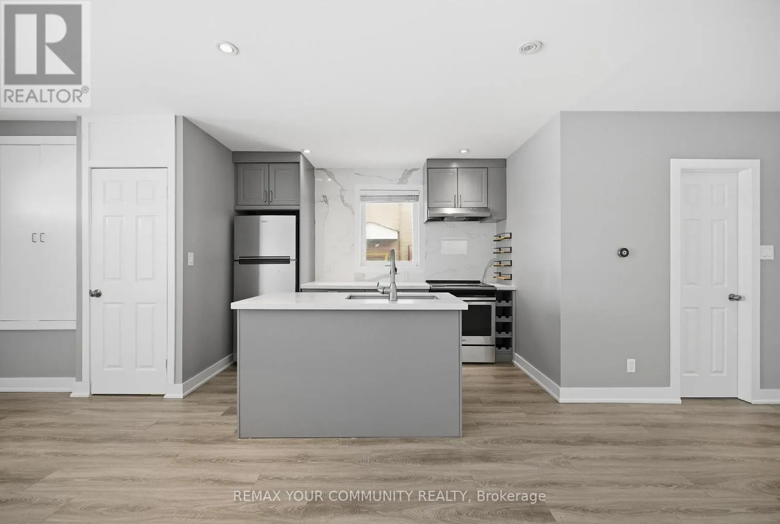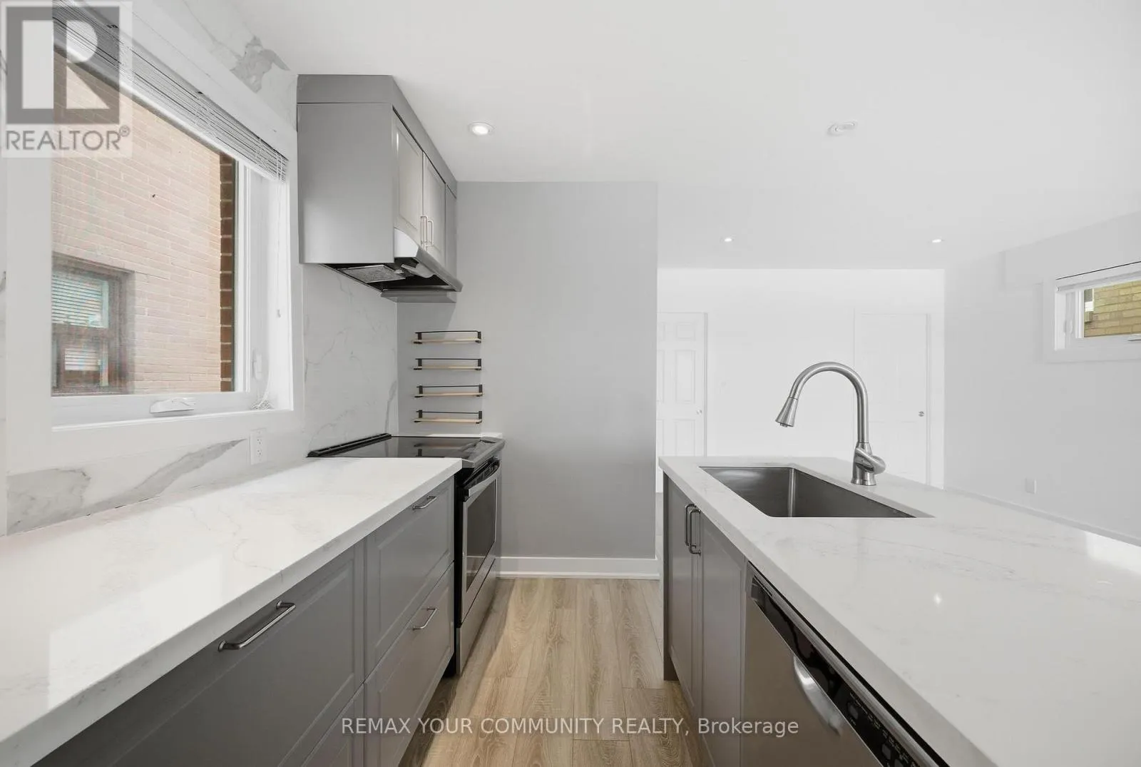 Dufferin/Eglinton W Fully renovated bungalow 2 +1 bedrooms with double car garage! Comprehensive renovations and improvements in the home were completed with City of Toronto permits. The bright open concept living and dining space over look the kitchen with corian countertops, centre island and stainless steel appliances. The extensive renovations continue in the finished lower level which offers a separate side entrance and a private entrance with second kitchen with corian counters, centre island and 3pc bathroom. Located in the sought after Briar Hill-Belgravia neighbourhood. Minutes to good schools, shopping, transit, and the new Eglinton LRT. (id:27476)
