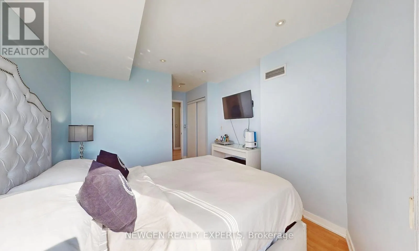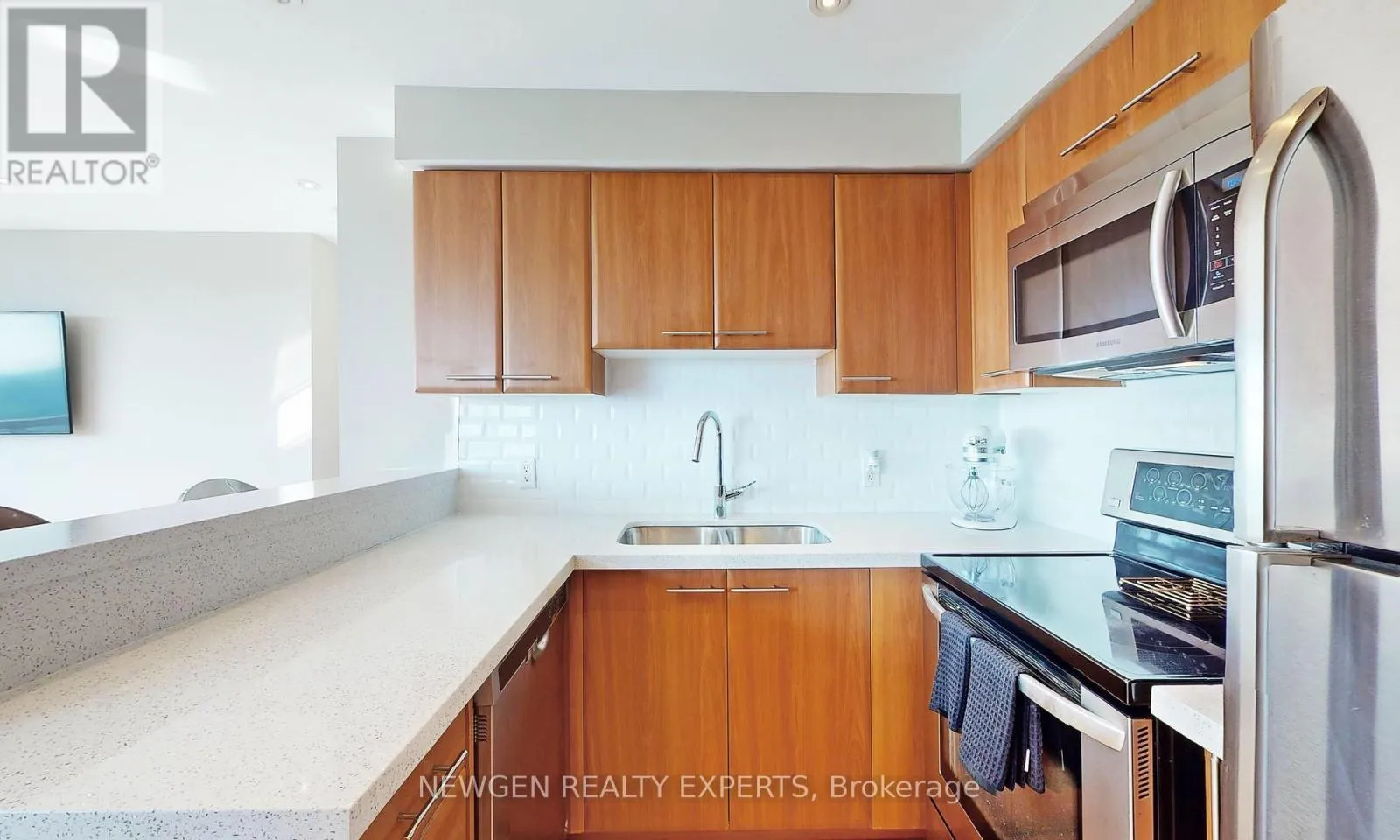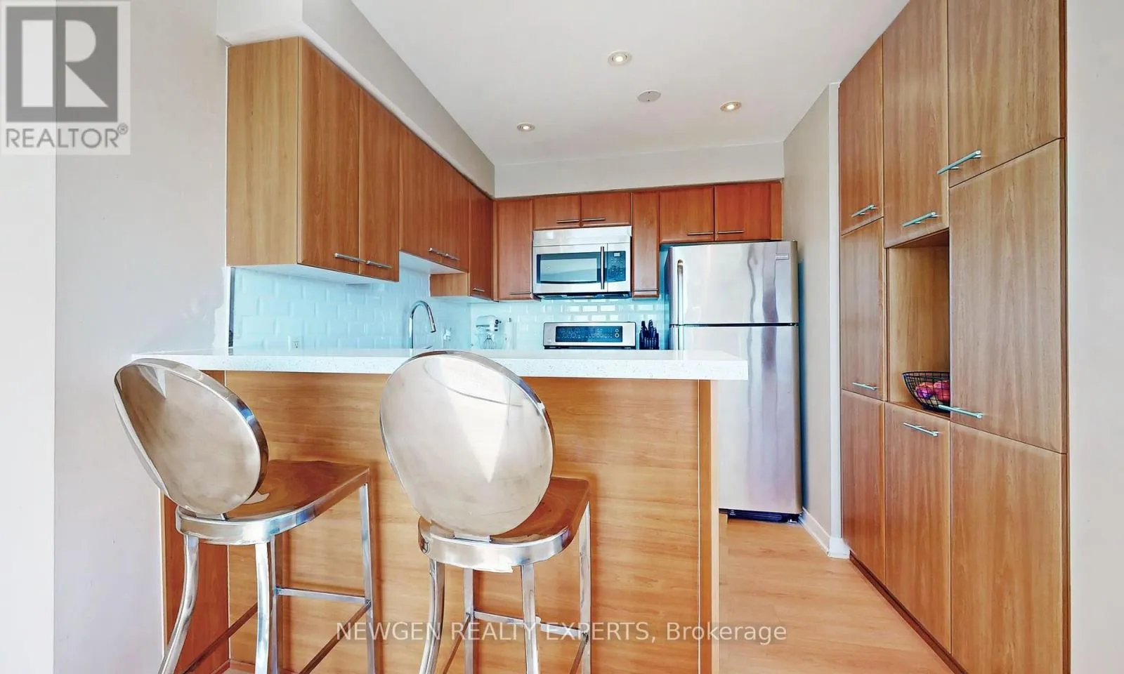 Mccowen & Hwy 401 Bright and spacious 2-bedroom, 2 full bathroom corner unit located in the heart of Scarborough. This suite offers an open-concept living and dining area with unobstructed southeast panoramic views. Features include an upgraded kitchen with breakfast bar, stainless steel appliances, built-in pantry, pot lights . Includes an 1 parking space and 1 lockers. Enjoy exceptional building amenities such as 24-hour concierge, fully equipped gym, swimming pool, sauna, party room, and more. Unbeatable location close to highway 401, Scarborough Town Centre, restaurants, grocery stores, University of Toronto, TTC/LRT, Highway 401, and much more. Don't miss this opportunity! (id:27476)