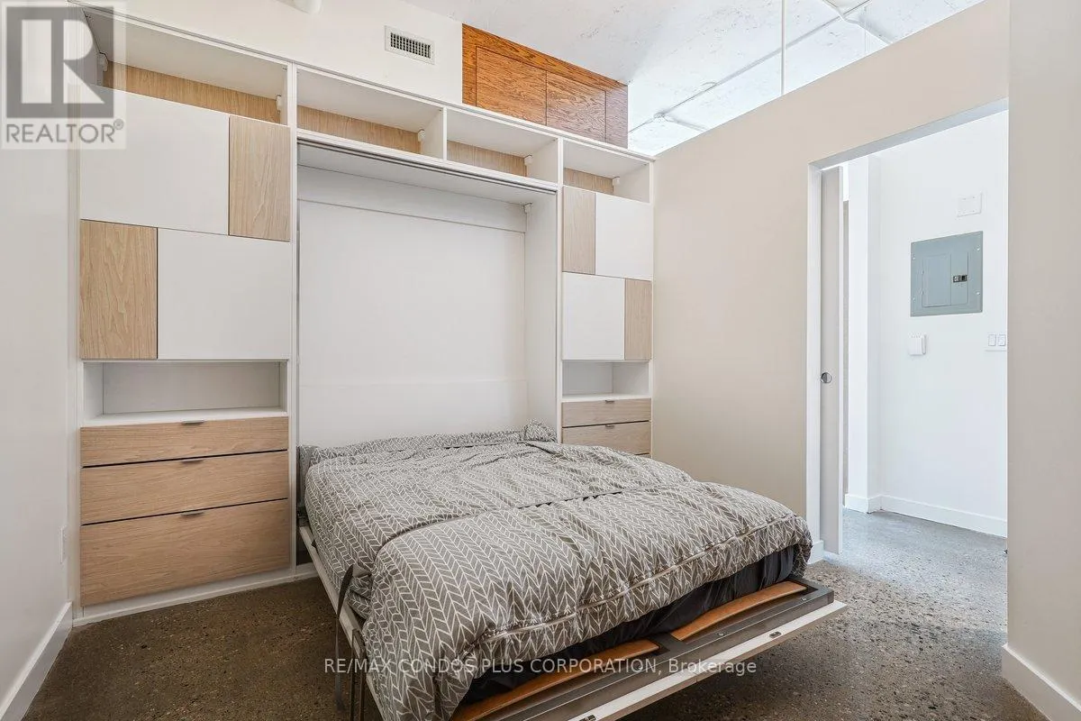 Bloor/Islington Experience Urban loft style perfection in this spacious and sun filled 862 sq ft 2-bedroom, 2-bathroom condo in the sought after Network Lofts. Just steps to Islington Subway, this unit features soaring ceilings, an open concept layout, Juliette balcony, and polished concrete floors throughout. Upgraded with thoughtful built-in closet organizers, murphy bed, and updated appliances. Extra overhead storage in the primary bedroom. Large storage locker conveniently located across the hall for added convenience. Parking is ideally situated in the covered area near the entrance with visitor parking available. Enjoy premium amenities including a rooftop terrace with BBQs, exercise room, party room, jacuzzi, and steam room. Parks, shopping and highway access all at your fingertips. (Note some photos are virtually staged) (id:27476)