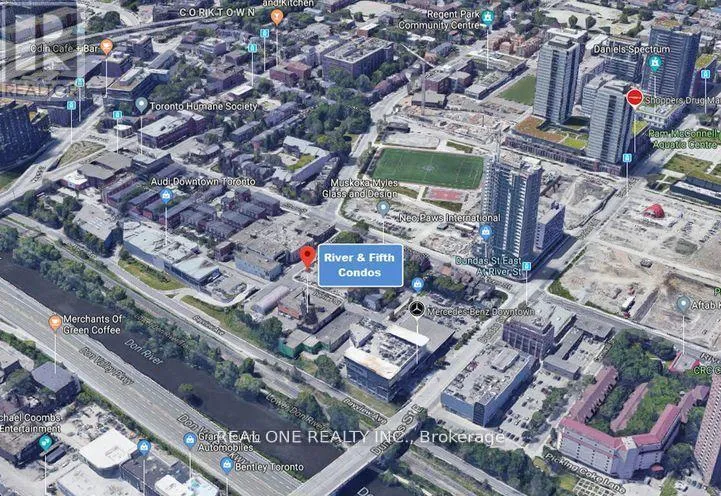 Cross Streets: River & Dundas. ** Directions: Defries. River and Fifth Condos Located in the citys popular Corktown neighbourhood, This stunning 2-bedroom, 2-bathroom suite boasts a prime location with unobstructed eastern views that flood the space with natural light.This unit has been meticulously upgraded with modern touches and a vibrant mix of colors, creating a chic and inviting atmosphere. Premium finishes, including quartz countertops, elevate the space, while the efficient layout maximizes functionality.direct access to the Bayview Extension, which will allow you to access the Don Valley Parkway (DVP), the Gardiner Expressway, and Highway 401. just minutes from some of the TTCs main Streetcar routes, allowing you to travel quickly throughout the city for work or play.not far from Torontos historic Distillery District and the Downtown core where you can enjoy a sporting event or concert.close to Toronto General Hospital, The Hospital for Sick Children, Ryerson University, George Brown College (id:27476)