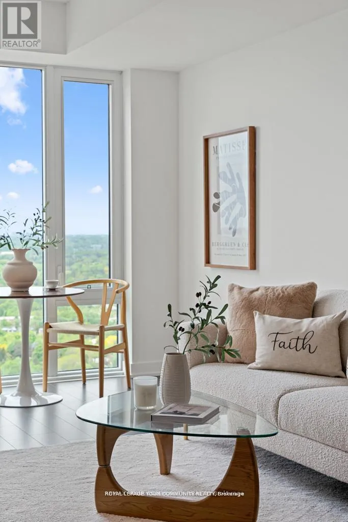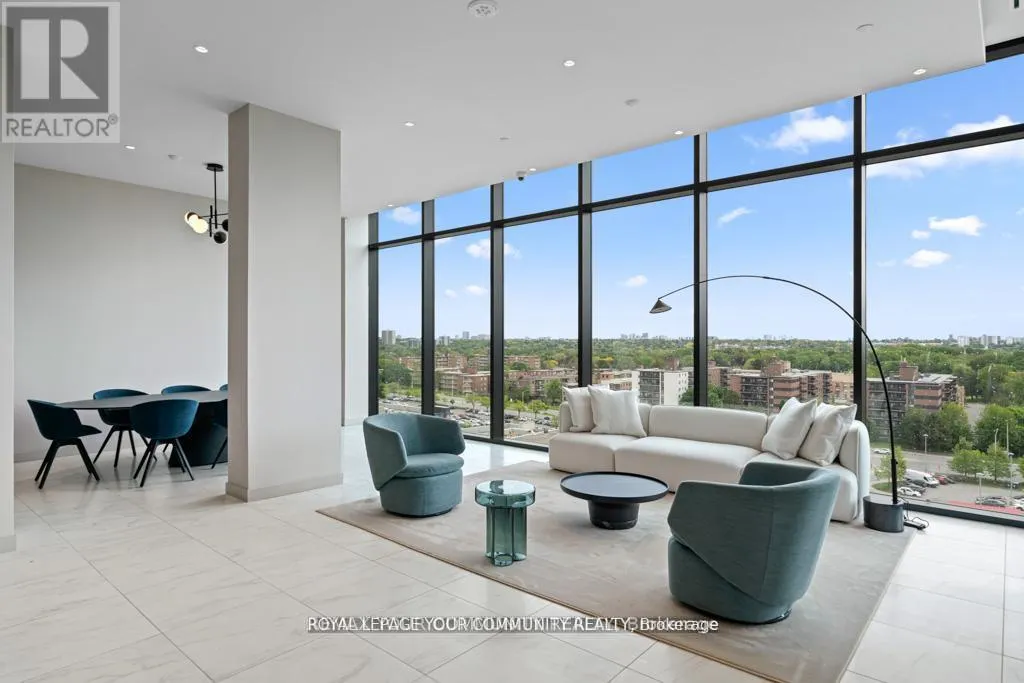 Don Mills Rd/Lawrence Ave E Living at Rodeo Drive, Shops At Don Mills best kept secret! Don Mills is in the heart of midtown, connected to great shopping, fine dining, schools, parks, libraries and community centres! Stunning 1 Bedroom + Den boasting unobstructed South & South West Views of the city core & beyond from your huge full-size balcony terrace! One of the most functional floor plans with no wasted space featuring enclosed den that makes for the perfect 2nd bedroom or home office. Enjoy open-concept living area with 9ft ceiling & wide vinyl floors T/O. Chef's Kitchen boasting integrated Miele appliances, quartz counters with under-mount lighting. Spacious primary bedroom with Walking closet featuring huge floor to ceiling windows with incredible views! Comes with 1 underground parking spot, just steps to Shops at Don Mills & minutes to DVP, HWY 401, TTC public transit, just five minutes to the south, you have the upcoming Crosstown LRT on Eglinton, a speedy gateway to east and west Toronto. it offers an array of amenities including a24-hour concierge, security cameras, a pet spa, fitness room, dry sauna, indoor lounge/party area, outdoor pool, hot tub, and expansive deck with scenic views, outdoor lounge and BBQ areas, a dining room with kitchen, bar lounge, boardroom, and game room! (id:27476)