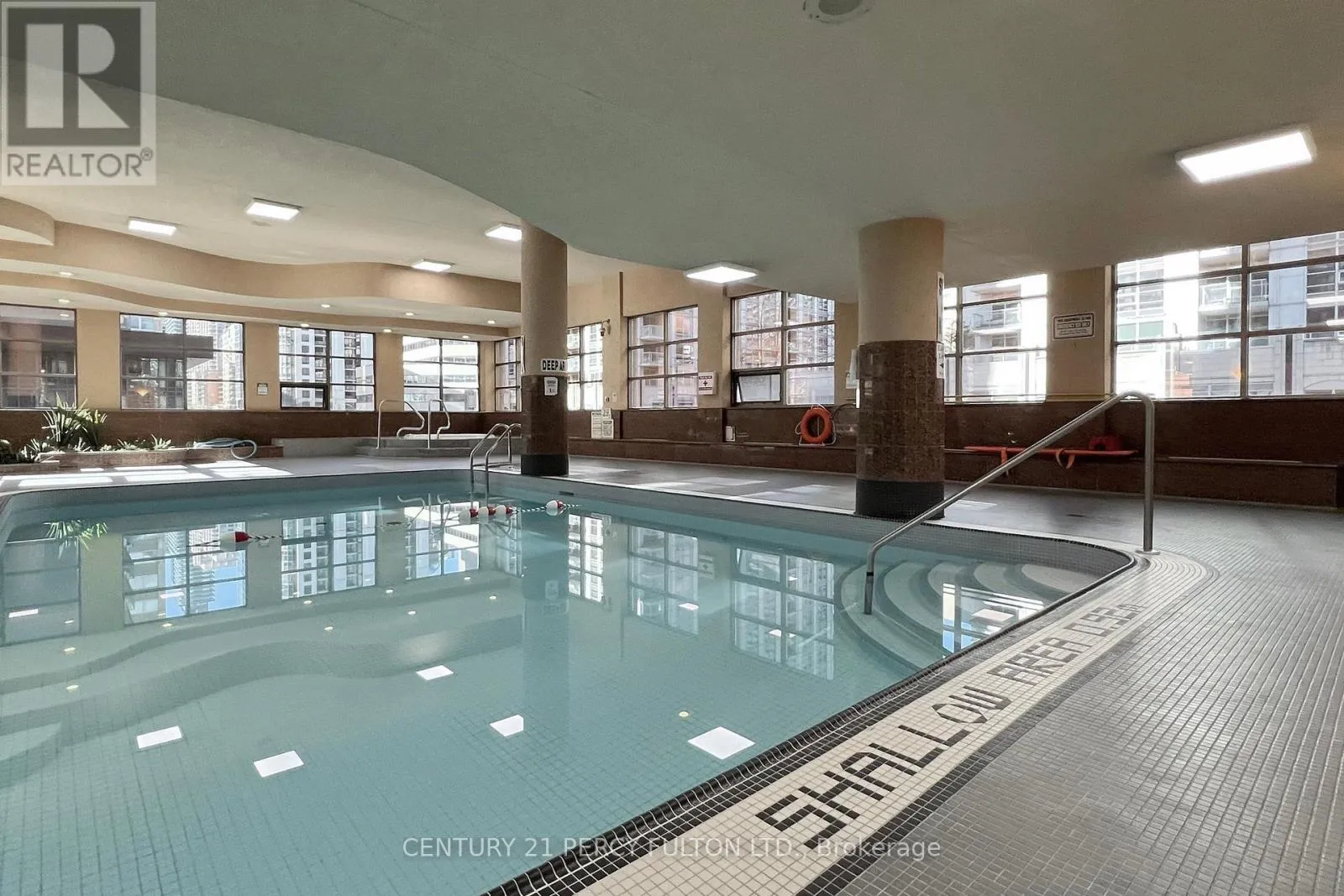 Bay St & College St This well maintained two-bedroom plus large den condominium, offered by the original owner, presents an exceptional urban residence in Toronto's vibrant core. The unit features a practical split-bedroom layout with a spacious primary suite and ensuite, an extended balcony, and includes one parking space and locker. Situated within a full-service building offering 24/7 concierge, a pool, and a fitness center, the property is perfectly positioned in the heart of the Financial District, with immediate access to the University of Toronto, major hospitals, premium shopping, diverse dining, and all major transit lines, delivering a complete and connected downtown lifestyle. (id:27476)