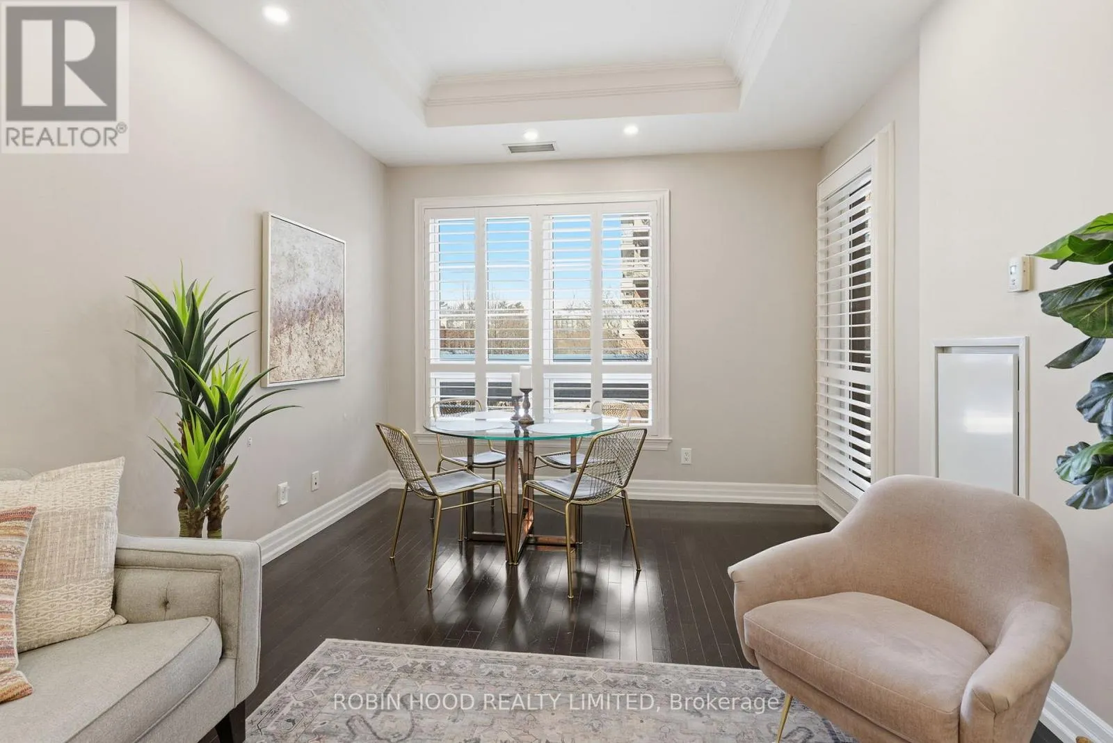 Bayview / Eglinton *** Additional Listing Details - Click Brochure Link *** Welcome to Kilgour Estates, a highly regarded community in a private, tree-lined enclave beside Sunnybrook Park. This beautifully maintained 1,123 sq.ft. two-bedroom, three-bathroom suite offers an ideal split-bedroom layout with peaceful north-facing courtyard views. A spacious foyer with powder room leads to an open-concept living and dining area with high ceilings and hardwood floors throughout. Step out to a private balcony with gas BBQ hookup, perfect for morning coffee or evening unwinds. The kitchen features granite countertops and stainless steel appliances. Both bedrooms include walk-in closets and full ensuite bathrooms; the primary ensuite has a double vanity and glass-enclosed shower. Recently painted and move-in ready, the suite includes underground parking and a locker. Residents enjoy 24-hour concierge, indoor pool, steam room, gym, theatre, guest suites, and landscaped grounds. Steps to Sunnybrook Park, hospital, TTC, and shops. (id:27476)