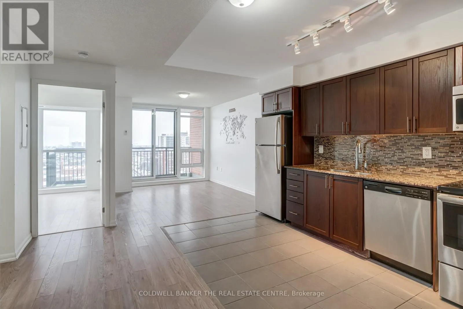 Cross Streets: Dufferin St & Lawrence Ave W. ** Directions: Dufferin St & Lawrence Ave W Turn onto Via Bagnato. **Stunning South-Facing 1-Bedroom Condo with Spectacular Toronto Skyline Views!** Welcome to Treviso 2, where style meets convenience in one of Toronto's most sought-after neighbourhoods! This beautifully upgraded **1-bedroom, 1-bathroom and 1 conveniently located corner Parking Spot condo offers a perfect blend of modern elegance and urban accessibility, making it an ideal home for professionals. Boasting **unobstructed south-facing views**, this unit is drenched in natural light and features a spacious **open-concept layout** with no wasted space. The living area seamlessly extends to an **oversized balcony**, providing a breathtaking panoramic view of the city skyline, perfect for morning coffee or unwinding after a long day. The kitchen is designed to impress, featuring **granite countertops**, a **glass backsplash**, an **upgraded faucet**, and **wood flooring** that extends throughout the unit, adding warmth and sophistication. Freshly painted and meticulously maintained, this condo is truly move-in ready. **Unbeatable Location & Amenities** Located just minutes from **Lawrence Ave West Subway**, with the **TTC right at your doorstep**, commuting is effortless. Plus, with **Yorkdale Mall** just a short distance away, you'll have access to world-class shopping, dining, and entertainment. Treviso 2 offers an impressive selection of **luxury amenities**, including **24-hour concierge** for your security and convenience, **Indoor pool, sauna, a fully equipped exercise room** for relaxation and fitness, **Party room and a rooftop BBQ area** for entertaining **Plenty of visitor parking** for your guests With its unbeatable combination of location, style, and amenities, this condo offers a **vibrant city lifestyle with a welcoming community feel**. Don't miss out on this incredible opportunity. Schedule your viewing today! (id:27476)