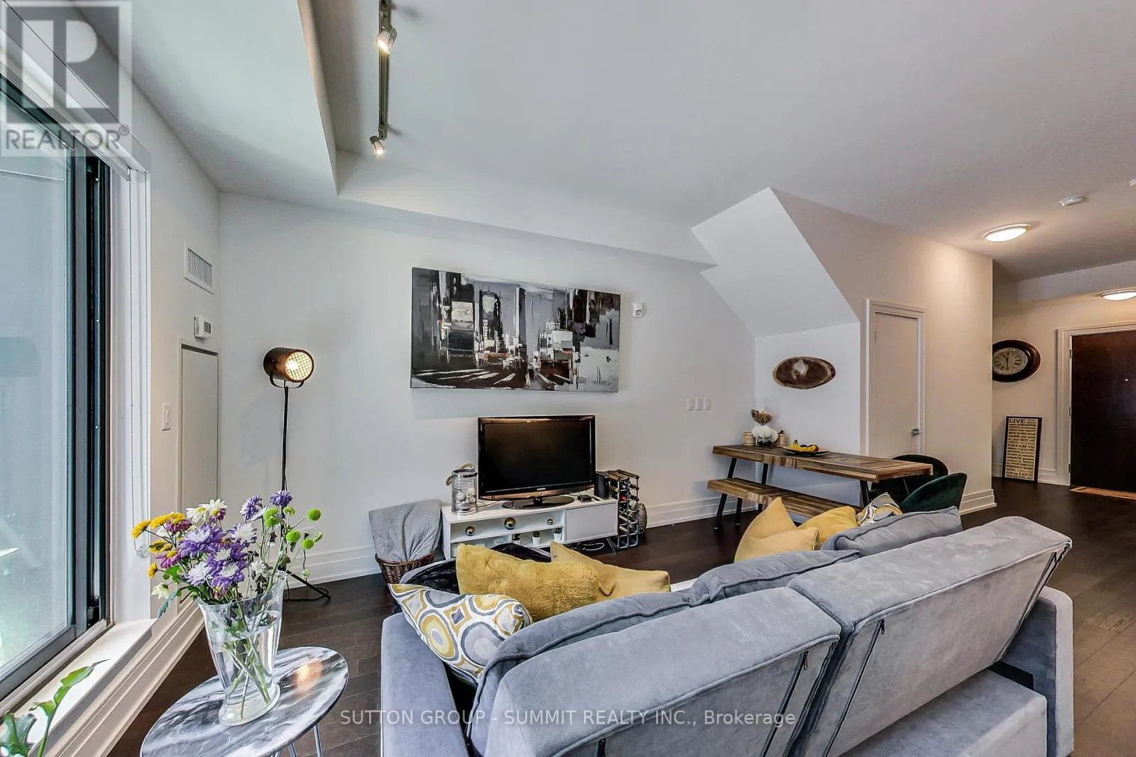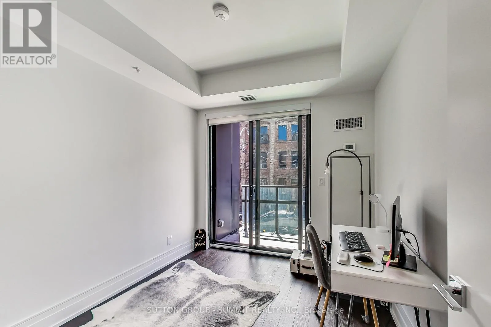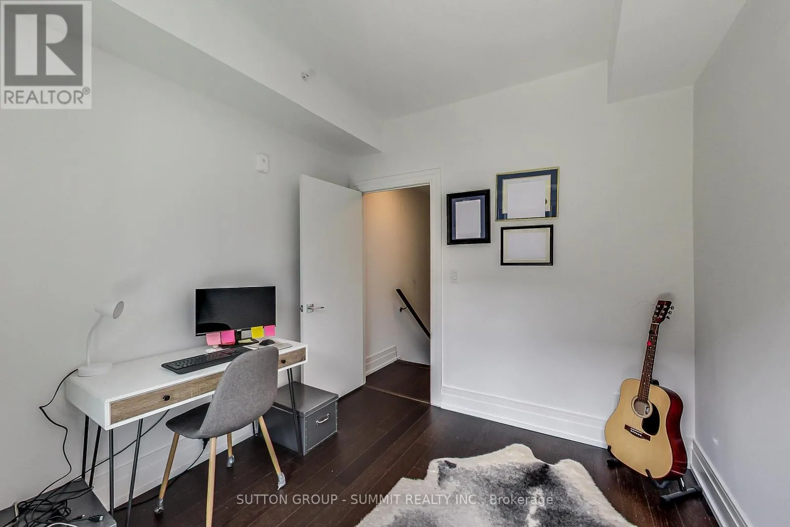 Bathurst St & Wellington St W Boutique townhouse living in the heart of King West. This two-storey boutique residence offers private dual entrances, soaring 9-10 ft ceilings, and two sun-filled balconies that flood the space with natural light. The open-concept living and dining area extends seamlessly outdoors and is anchored by a sleek kitchen with European-style cabinetry, quartz countertops, and premium full-size Bosch appliances. Featuring two bedrooms and two full bathrooms, the spacious primary suite includes a luxurious ensuite and oversized walk-in closet, while the second bedroom enjoys its own private balcony. Parking is included. (id:27476)