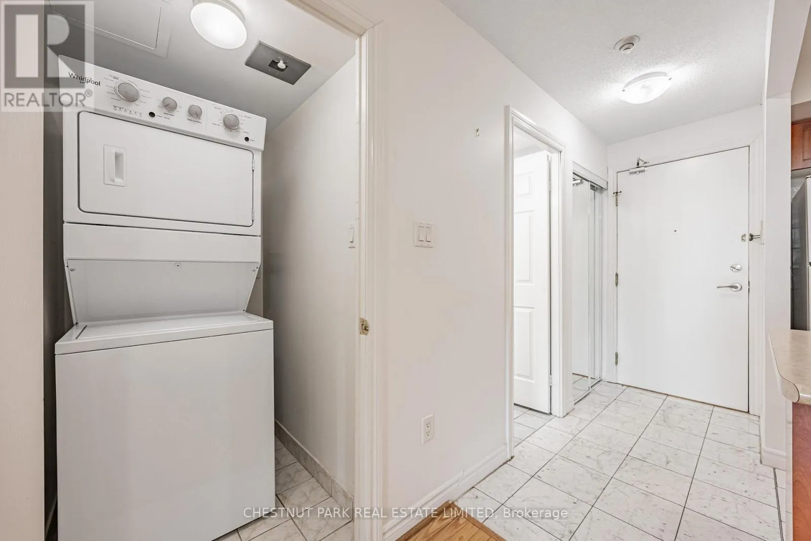 Cross Streets: Brimley Rd & Ellesmere Rd. ** Directions: Between Brimley & McCowan, just north of Ellesmere and South of HWY 401. Tridel quality built, large 2-bedroom, 2 full bathroom suite with a balcony, ensuite laundry, parking, locker and fabulous amenities. 930 square feet plus the balcony. Well-managed building with the on-site property management team. Excellent maintenance fees with all utilities included. Fabulous move-in condition suite with clear, bright west views and an open-concept, spacious, desirable split-bedroom floor plan. Large open-concept kitchen with full-sized appliances and lots of counter and cabinet space (p-trap, continuous waste, and tailpiece underneath the sink have been replaced (2025)). Enjoy the spacious living and dining rooms featuring hardwood floors and excellent wall space for large furniture, plus a walk-out to the private balcony. The extra-large primary bedroom can accommodate a king-sized bed and features a large walk-in closet, an additional closet, and a 4-piece ensuite bathroom. The good-sized second bedroom includes a double closet and has quick access to the 3-piece main bathroom. Both bedrooms include new laminate floors (2025) and have been freshly painted. The front foyer includes a double door coat closet and the ensuite laundry area. The premium OVERSIZED parking space is close to the elevators on the top parking level (see picture of the parking space). There is 24-hour gatehouse security and lots of underground visitor parking. The fabulous building amenities include two gyms (one in 125 Omni and one in 115 Omni), two indoor pools with hot tub (one pool in 125 Omni and one pool in 115 Omni), change rooms with a sauna, a party room, a games room with billiards, ping pong, shuffleboard, and foosball, a theatre room, and a library. Walk to Scarborough Town Centre, walk to TTC (Scarborough Centre Station), and have quick access to Highway 401. There are many great grocery stores nearby, plus fabulous restaurants, coffee shops, and conveniences for your daily needs. (id:27476)