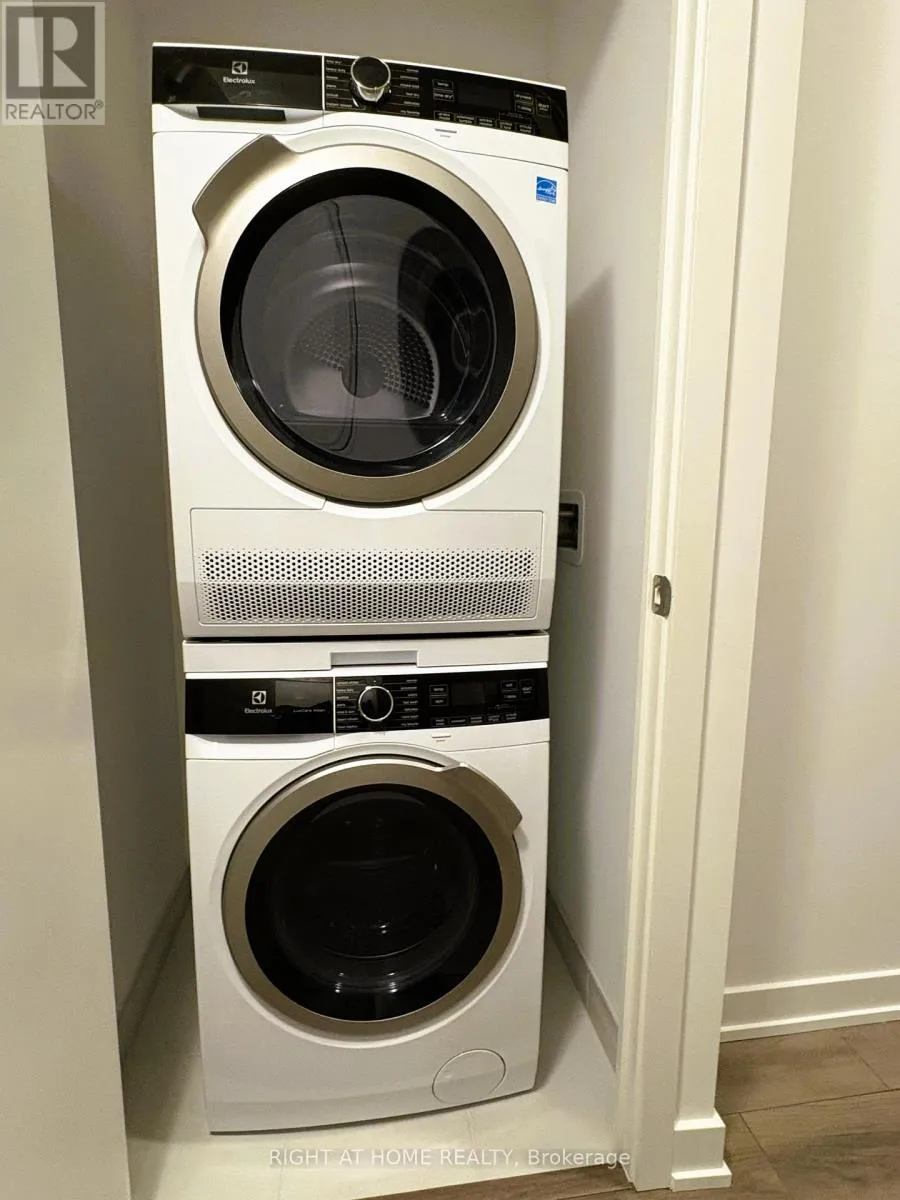 Cross Streets: Kingston Rd East of Sheppard. ** Directions: Kingston & Port Union. Brand new 1 Bedroom suite offering a smart, functional layout in Toronto's desirable Rouge community. Open-concept living and dining area with laminate flooring and walk-out to a private balcony. Modern kitchen featuring quartz countertops, mosaic backsplash, ample cabinetry, and brand-new stainless steel appliances. Spacious bedroom with double closet. Contemporary 3-piece bathroom with ceramic tile flooring and tiled tub surround. In-suite laundry with front-load washer and dryer. Includes one parking space and one locker. Enjoy premium amenities including 24/7 concierge, fitness center, yoga studio, co-working lounge, party room, games room, kids' playroom, and outdoor terrace with BBQ area. Excellent location with quick access to Hwy 401 and Rouge Hill GO Station. Minutes to U of T Scarborough, Centennial College, Rouge National Urban Park, Lake Ontario waterfront, shopping, and everyday essentials. Some Pictures are virtually staged. Ideal for professionals or students seeking modern, transit-connected living. (id:27476)