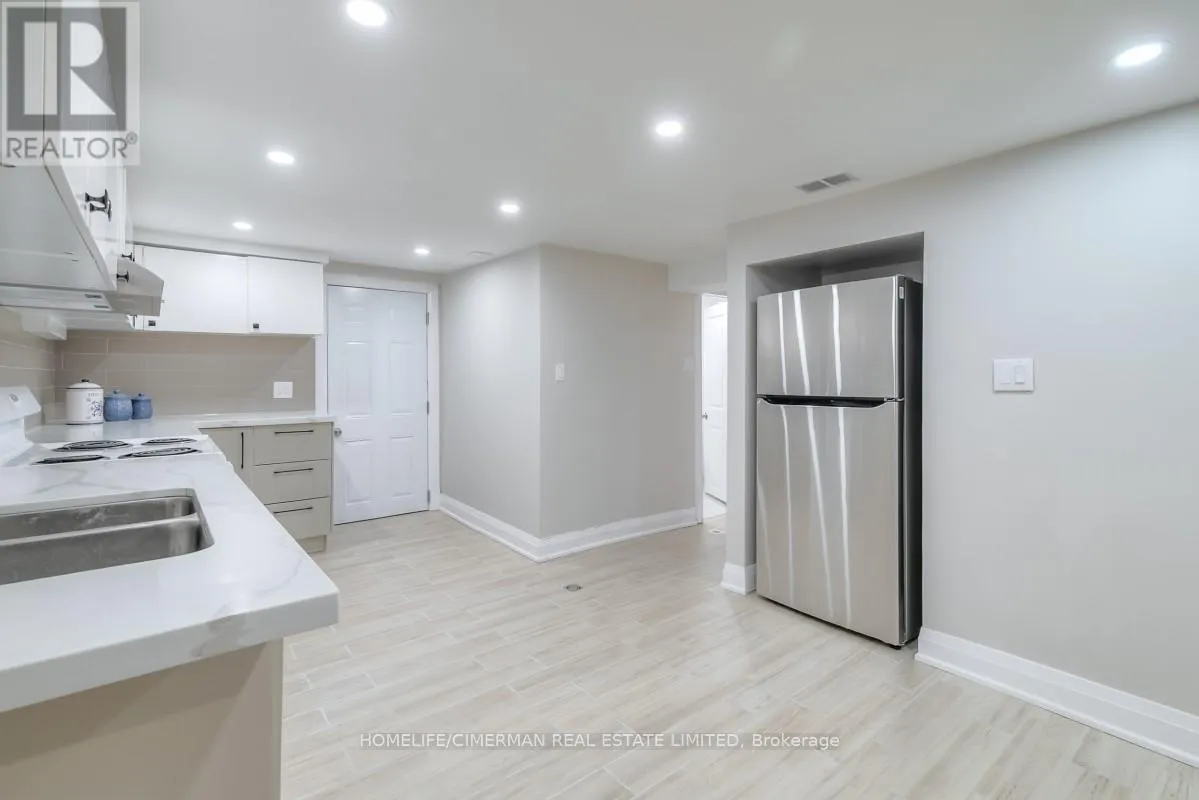 Warden/Ellesmere Welcome to 3 Willowhurst Crescent, a meticulously renovated brick bungalow showcasing extensive upgrades inside and out. Owner-occupied since completion and never rented, this home reflects exceptional pride of ownership. The main floor features a custom kitchen with quartz countertops, elegant cabinetry, and premium stainless steel appliances: KitchenAid cooktop with built-in downdraft (2025, extended warranty), Whirlpool wall oven, Miele dishwasher, Frigidaire refrigerator, plus an integrated Miele washer for added convenience. The main bath is beautifully updated with modern tilework, glass shower enclosure, and contemporary vanity. All flooring throughout the home has been replaced, creating a cohesive upscale feel. The professionally finished basement (2021) offers excellent versatility with a private separate entrance-ideal for extended family or income potential. It includes a full modern kitchen, recessed lighting, spacious living area with a sleek 60-inch electric fireplace feature wall, and a stylish bathroom with fully tiled shower walls and quartz-top vanity. A dedicated laundry area behind a sliding barn-style door enhances functionality and privacy. The second bedroom was opened up and can easily be converted back. Mechanical updates include a high-efficiency Goodman/Amana Distinctions furnace and matching A/C (2016). The exterior was professionally redesigned in 2020 with stone cladding, natural stone coping, aluminum railings, decorative steel entry door, and asphalt driveway with curbing. The private backyard retreat features a 468 sq ft interlocking stone patio, full re-sodding, mature cedar trees, and full fencing. Flood protection includes exterior waterproofing, backwater valve, sump pump, and lifetime transferable warranty. Prime location near schools, shopping, Costco, Home Depot, parks, TTC, Hwy 401 and DVP. (id:27476)