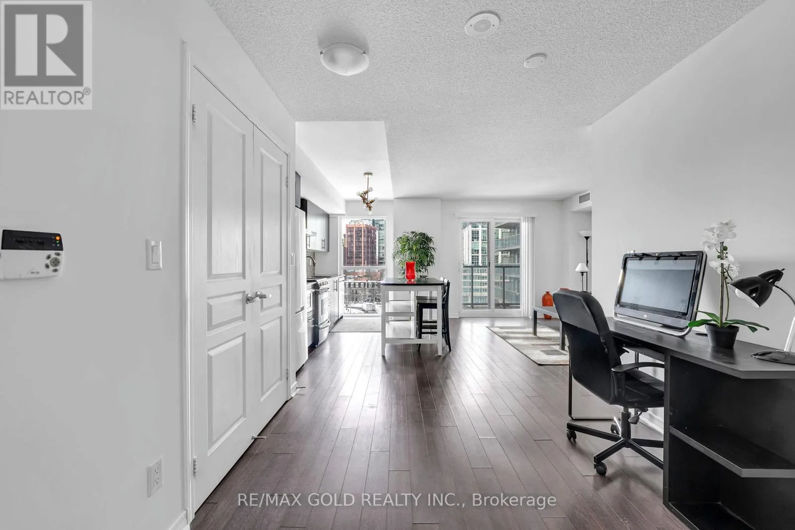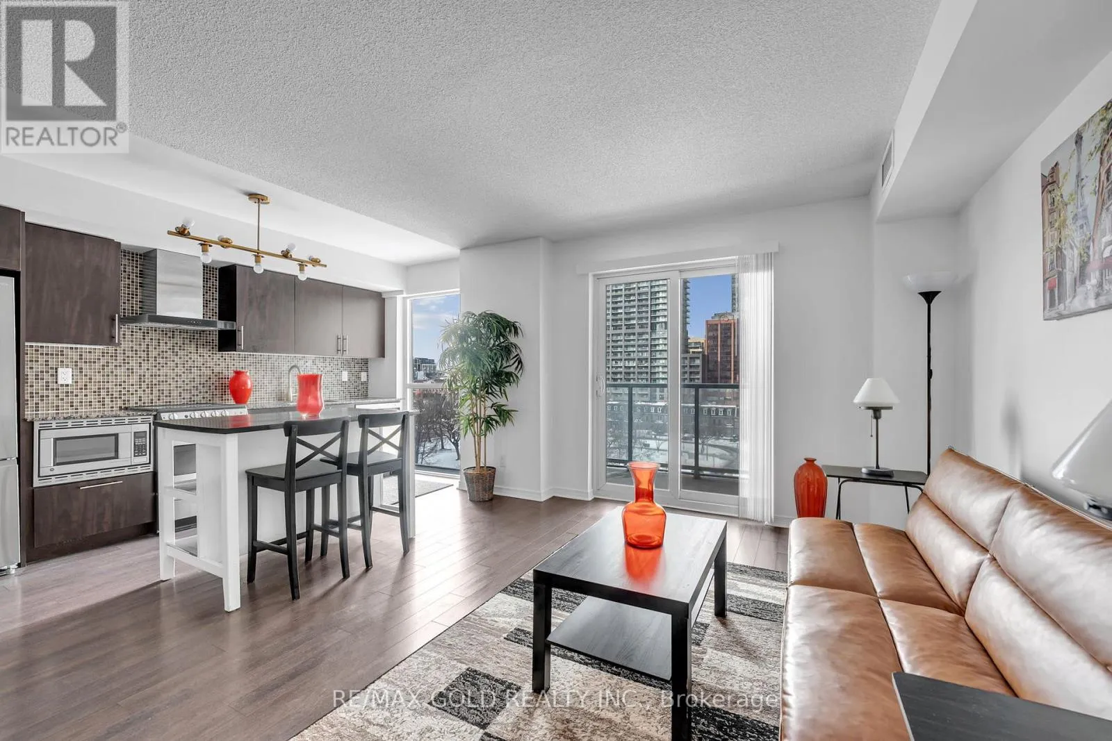 Front/ Spadina Live at the iconic Fly Condos in the heart of downtown Toronto. This well-designed one-bedroom suite plus den/office offers a bright, open-concept layout with functional living space and contemporary finishes throughout. Floor-to-ceiling windows fill the unit with natural light, while the versatile den provides the perfect space for a home office or additional storage. The modern kitchen features sleek cabinetry, quality appliances, and ample counter space, seamlessly flowing into the living and dining area - ideal for both everyday living and entertaining.Residents enjoy an impressive selection of premium amenities, including a fully equipped fitness centre with sauna, yoga and Pilates studio, theatre and media room, guest suites, 24-hour concierge, and a stunning rooftop terrace complete with a party room, cabanas, and BBQ areas offering breathtaking city views.Perfectly positioned steps to public transit, the Financial District, and the Entertainment District, and within walking distance to shopping, dining, and major downtown landmarks such as the CN Tower and Rogers Centre, Fly Condos delivers the ultimate blend of comfort, convenience, and vibrant urban living. (id:27476)