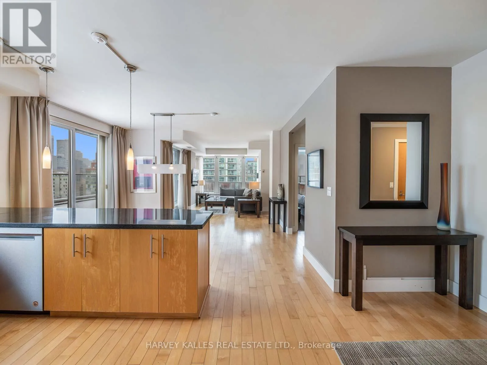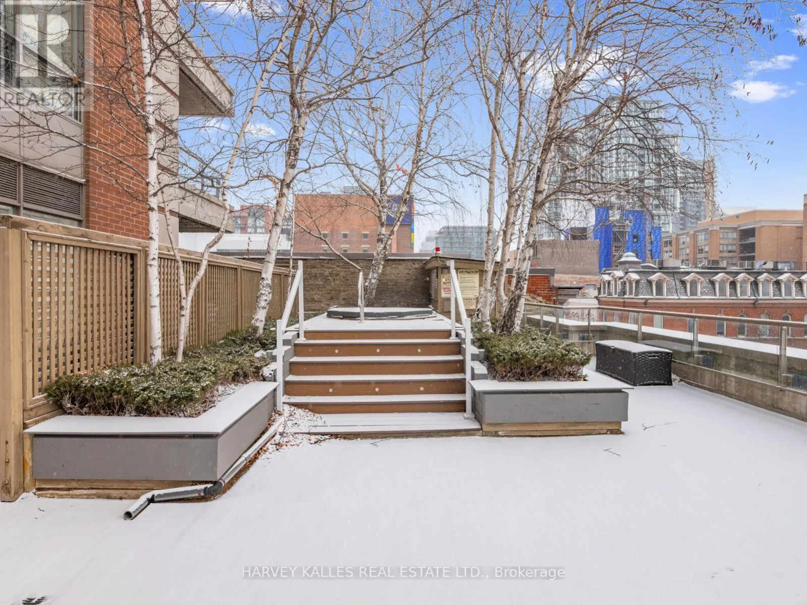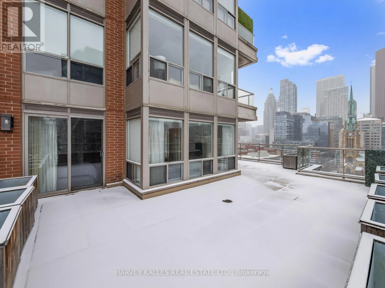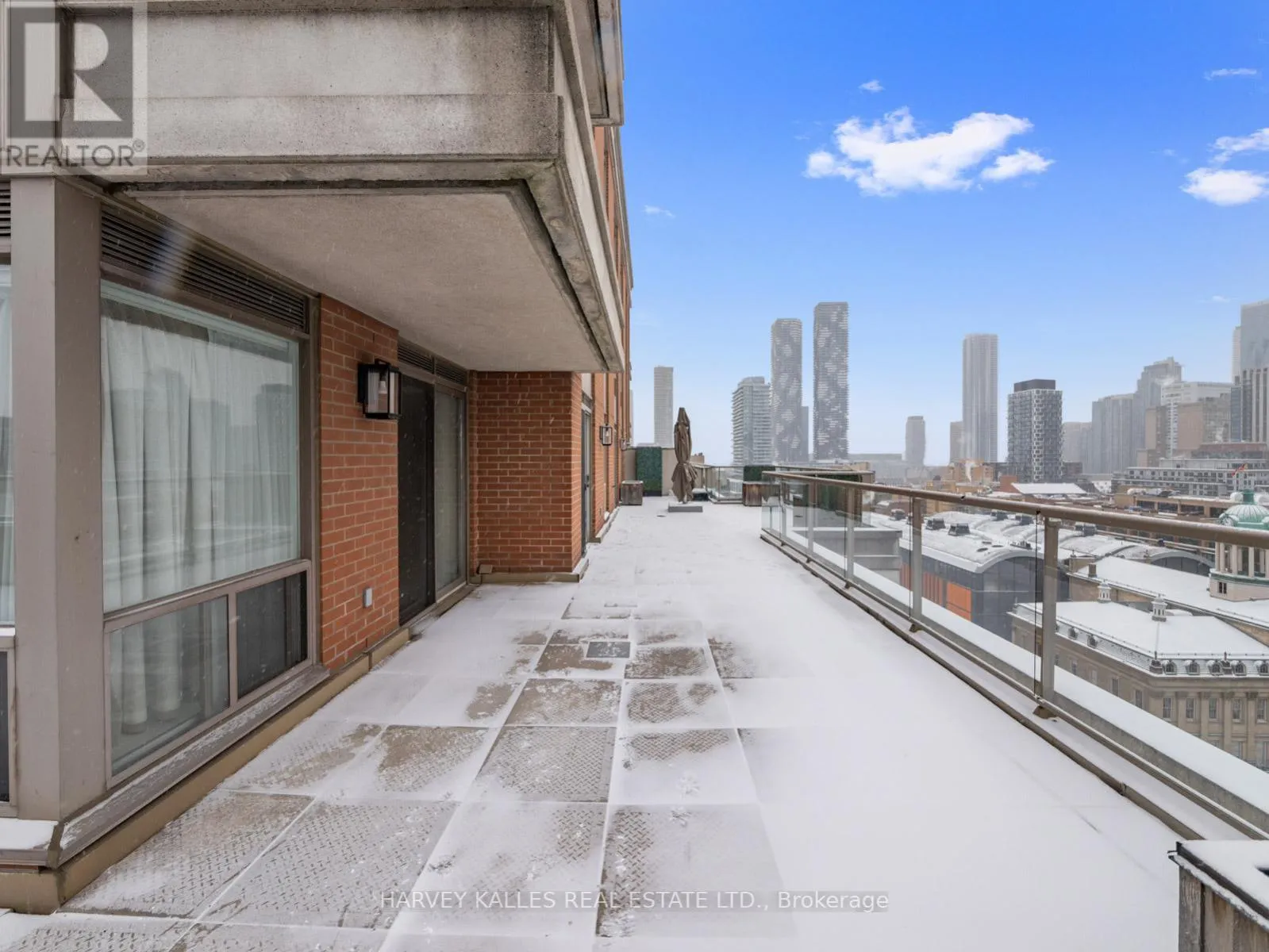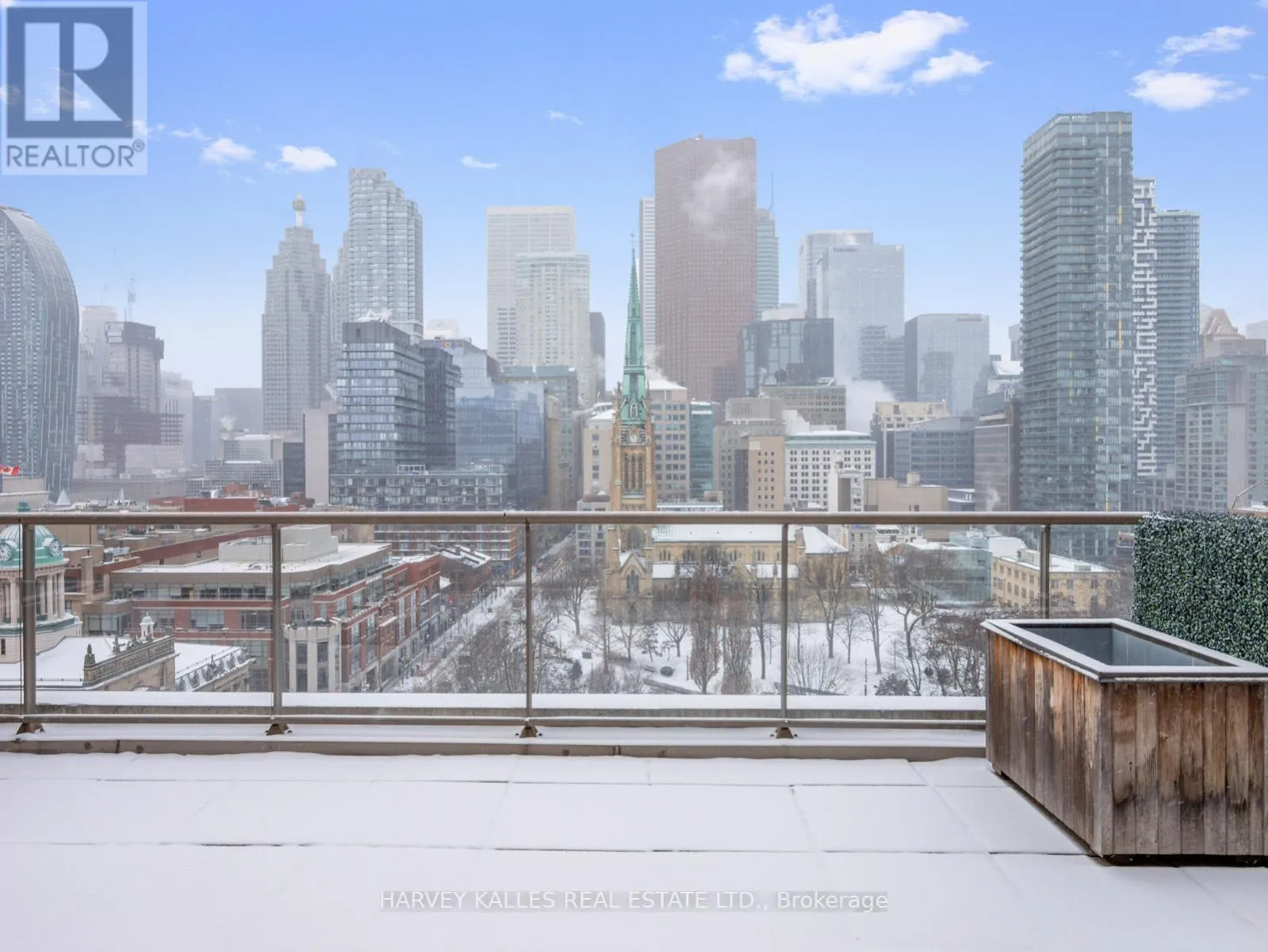 King and Jarvis Located in the historic St. Lawrence Market District, this exceptional southwest-facing corner residence at King George Square offers unobstructed views of the Cathedral of St. James and St. James Park. With over 1,100 sq. ft. of interior living space and an extraordinary private terrace, this is a truly one-of-a-kind offering rarely seen in the downtown core.The well-designed two-bedroom plus oversized den layout is flooded with natural light and ideal for both everyday living and large-scale entertaining, seamlessly connecting indoor and outdoor spaces through multiple walk-outs. The primary bedroom is thoughtfully positioned in its own private wing and features a walk-in closet, a 4-piece ensuite, and direct access to the expansive terrace - creating a true retreat.The spacious kitchen is finished with stainless steel appliances and granite countertops, while hardwood flooring runs throughout the suite. Additional features include blackout curtains and privacy blinds, offering both comfort and functionality. This boutique building is perfectly situated within walking distance of the Financial District, Theatre District, Distillery District, George Brown College, and an exceptional selection of shops, restaurants, and everyday amenities. Quick access to TTC transit, bike paths, the Gardiner Expressway, and the waterfront further enhances the convenience of this prime location. Building Amenities: 24-hour concierge, underground parking, gym, billiards room, library, party room, sauna and a residents' rooftop terrace complete with hot tub and BBQ. (id:27476)