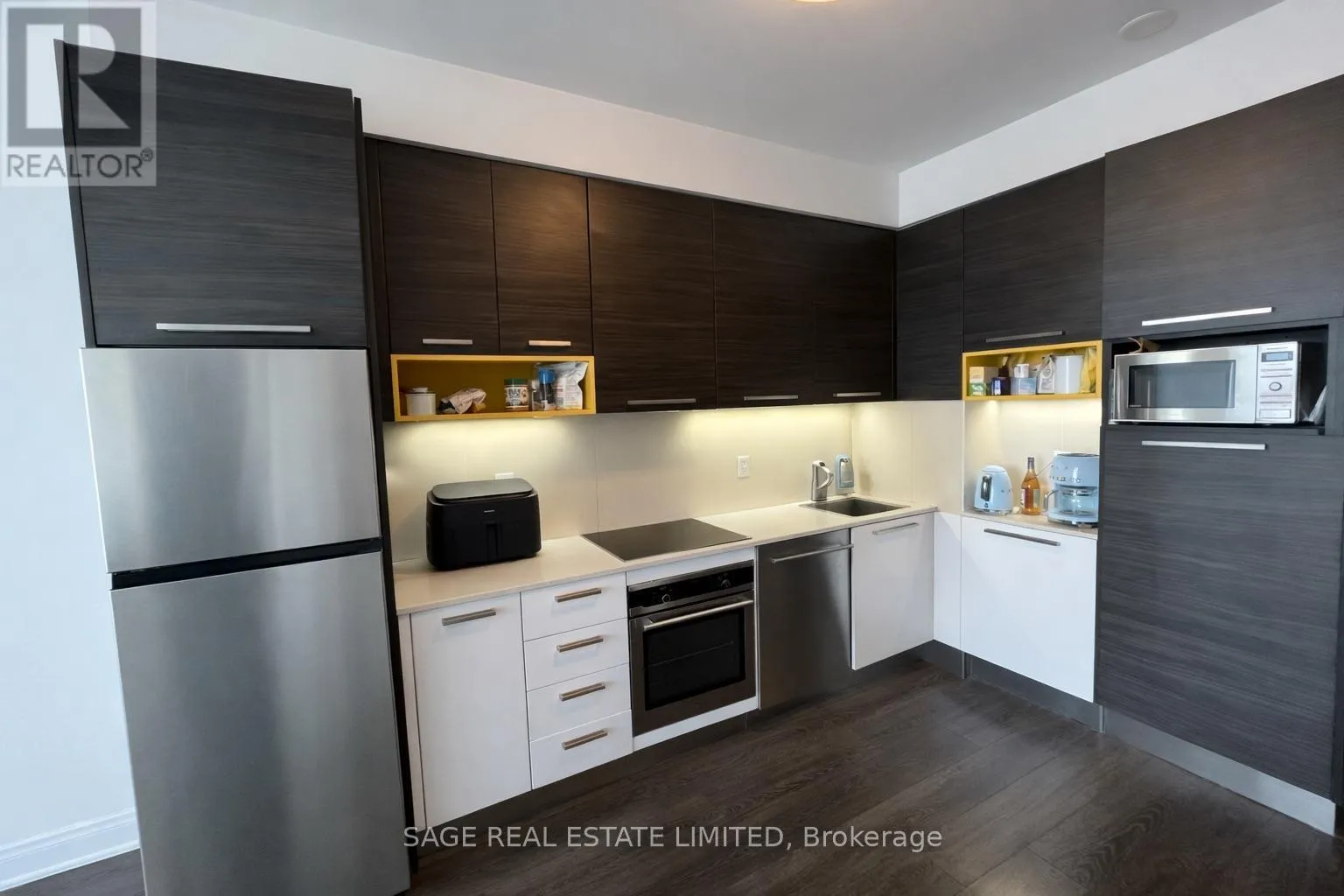 LAKE SHORE PARK LAWN Welcome to Suite 1406 at 36 Park Lawn Rd - a bright, well-laid-out 1 bedroom + den in the heart of Humber Bay Shores. The space is functional and easy to live in, with floor-to-ceiling windows and an open living/dining area that doesn't feel cramped. The den is actually usable - perfect for a proper home office or guest space. The kitchen is modern and clean with stone counters, full-sized appliances, and plenty of storage, flowing naturally into the main living area.Step outside and you're right by the Humber Bay Waterfront Trail, marinas, parks, and Lake Ontario. Morning walks, bike rides, coffee runs, patio dinners - it's all here. Metro is literally downstairs, so groceries take five minutes.For commuters, you're right at the QEW and Gardiner - easy east into downtown or west toward Mississauga and beyond. It's the kind of location that just makes daily life simple. (id:27476)