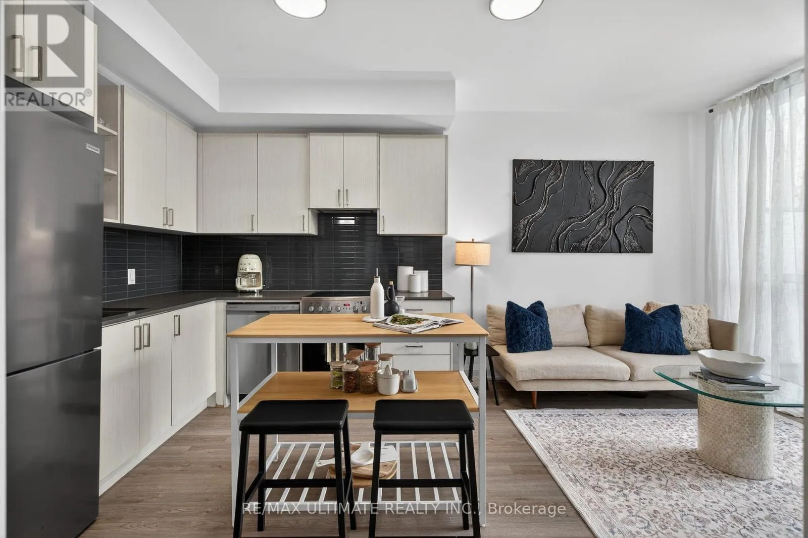 Keele / Downsview Park Welcome to this stunning newly built 1+1 bedroom suite offering the perfect blend of modern elegance and open concept living. Featuring a bright west facing layout, this thoughtfully designed suite by Mattamy includes a spacious primary bedroom and a versatile den ideal for a home office, guest room, or nursery. Designer inspired vinyl plank flooring throughout, complemented by built-in stainless steel appliances, quartz countertops and soaring 10-ft ceilings. Floor to ceiling windows lead to an exceptionally large balcony, creating seamless indoor outdoor living and the perfect space to enjoy beautiful sunsets. Residents enjoy exceptional upscale amenities and superb property management, ensuring a truly elevated lifestyle. Amenities include a luxury fitness centre with yoga and spin studios, stylish co-working spaces, an outdoor BBQ terrace, kid's play room, game room and an elegant party room. Ideally located just minutes from major highways, transit, and the expansive trails and green space of Downsview Park, and steps to Rogers Stadium for easy access to events. An incredible opportunity to own in a vibrant, growing community. Perfect for professionals, first-time buyers or investors seeking luxury and convenience. (id:27476)