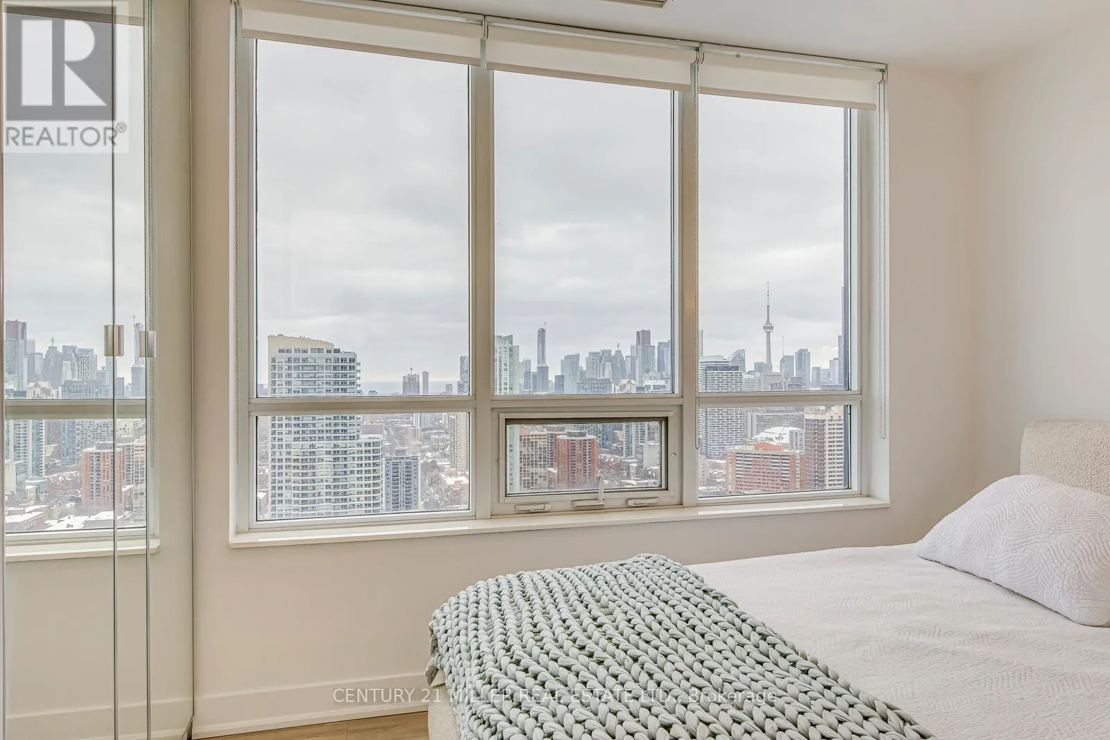 Bloor St & Sherbourne St One-of-a-Kind Sub-Penthouse Corner Suite With Iconic CN Tower & Lake Views! Experience elevated downtown living in this rare south-facing sub-penthouse residence featuring breathtaking, unobstructed views of the CN Tower, city skyline, and Lake Ontario from every room. Soaring 10-foot ceilings and expansive wrap-around windows flood the space with natural light, creating a bright and sophisticated atmosphere high above the city. The thoughtfully designed 2-bedroom, 2-bathroom layout offers exceptional flow and functionality. The open-concept living and dining area seamlessly connects to a private balcony - perfect for morning coffee or evening sunsets. The gourmet kitchen features a large breakfast island, quartz countertops, and brand-new stainless steel appliances (recently upgraded by the current owners), combining modern style with everyday practicality. The spacious primary suite includes custom built-in cabinetry and a spa-inspired ensuite with a glass standing shower. Premium wood flooring runs throughout, enhancing the home's clean, contemporary aesthetic. Located in a LEED-certified energy-efficient building with 24/7 concierge service, excellent amenities, visitor parking, and a premium parking space included with EV charger. Steps to the subway, Yorkville shopping, restaurants, groceries, parks, Rosedale Ravine, and easy access to the DVP. A true sky-level retreat in one of downtown's most prestigious and connected locations. (id:27476)