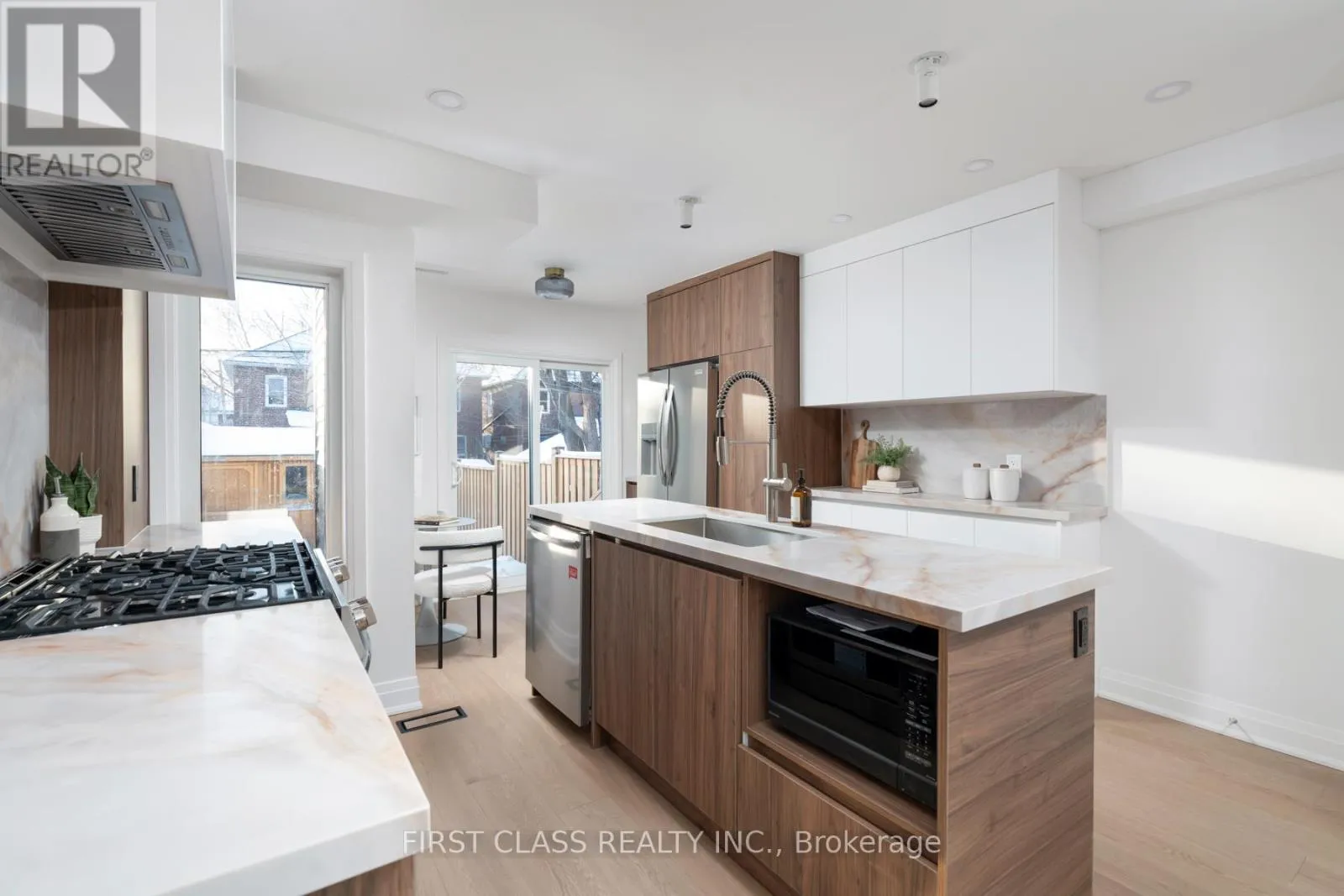 Greenwood & Mortimer A comprehensive studs-up transformation completed with meticulous attention to detail, this home offers modern comfort and long-term peace of mind. All major systems have been comprehensively upgraded, including structure, insulation, plumbing, electrical, ductwork, and fully owned HVAC systems, with all work completed to code, city inspections passed, and ESA certification provided.The interior features wide-plank European white oak engineered hardwood flooring, custom closets, oak staircases, and a thoughtfully designed kitchen with quartz countertops, quality appliances, and ample storage. Bathrooms are finished with premium tile selections and practical storage solutions.Legal front pad parking, and private outdoor space with new fencing and deck.An unbeatable location just steps to transit, schools, and a short walk to Danforth Avenue, offering easy access to vibrant shops, dining, cafes, and everyday amenities. with meticulous attention to detail, this home offers modern comfort and long-term peace of mind. All major systems have been comprehensively upgraded, including structure, insulation, plumbing, electrical, ductwork, and fully owned HVAC systems, with all work completed to code, city inspections passed, and ESA certification provided.The interior features wide-plank European white oak engineered hardwood flooring, custom closets, oak staircases, and a thoughtfully designed kitchen with quartz countertops, quality appliances, and ample storage. Bathrooms are finished with premium tile selections and practical storage solutions.Legal front pad parking, and private outdoor space with new fencing and deck.An unbeatable location just steps to transit, schools, and a short walk to Danforth Avenue, offering easy access to vibrant shops, dining, cafes, and everyday amenities. (id:27476)