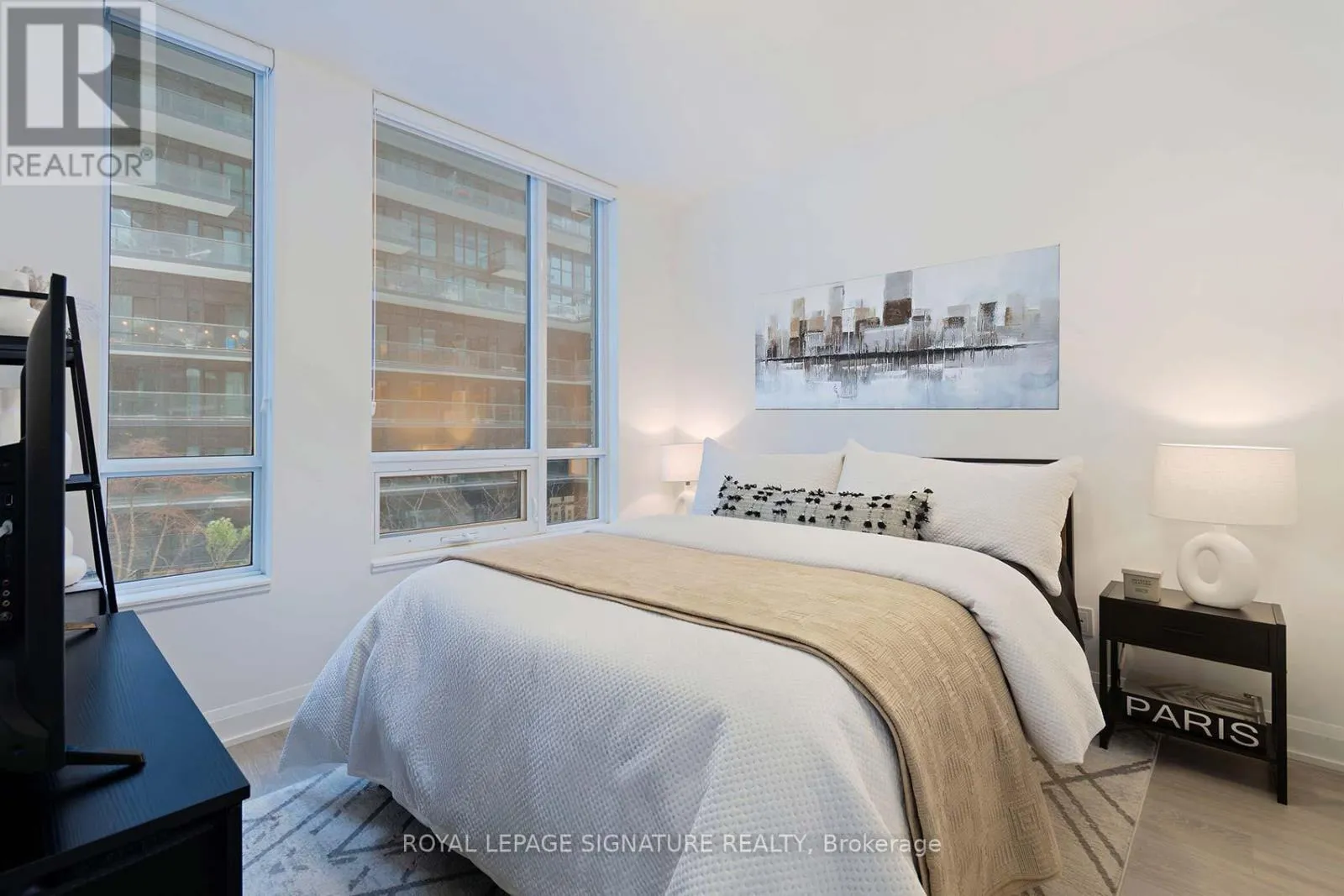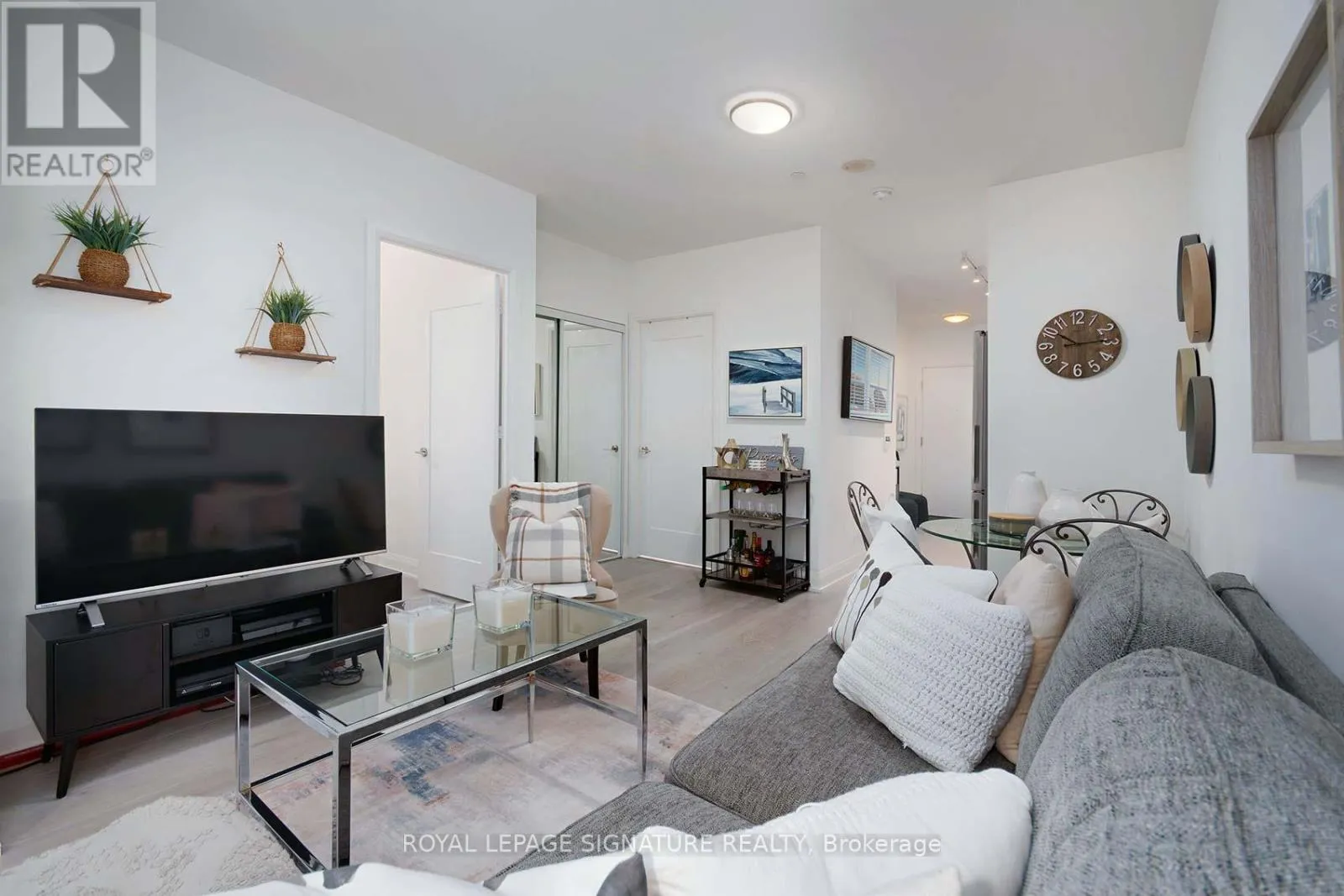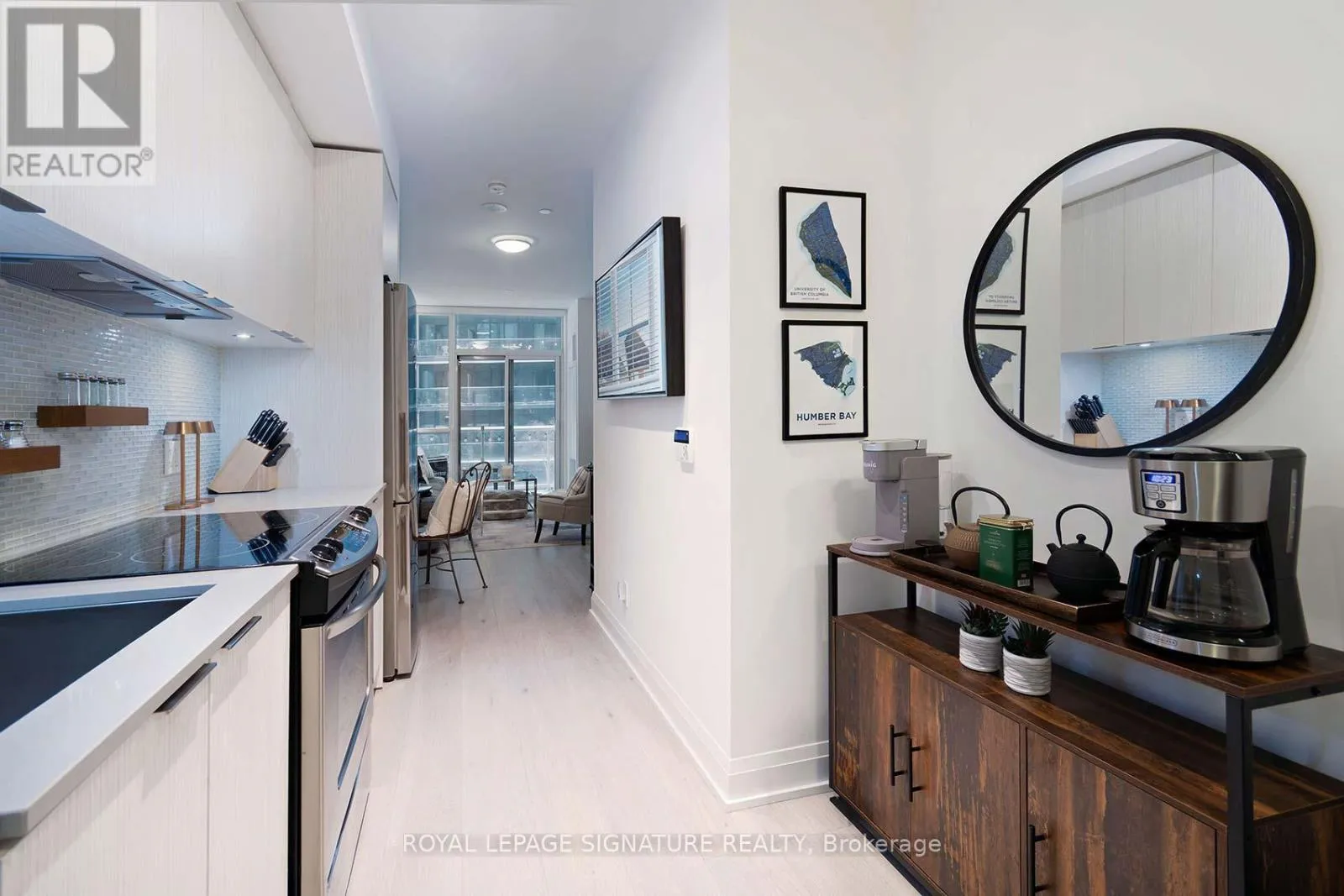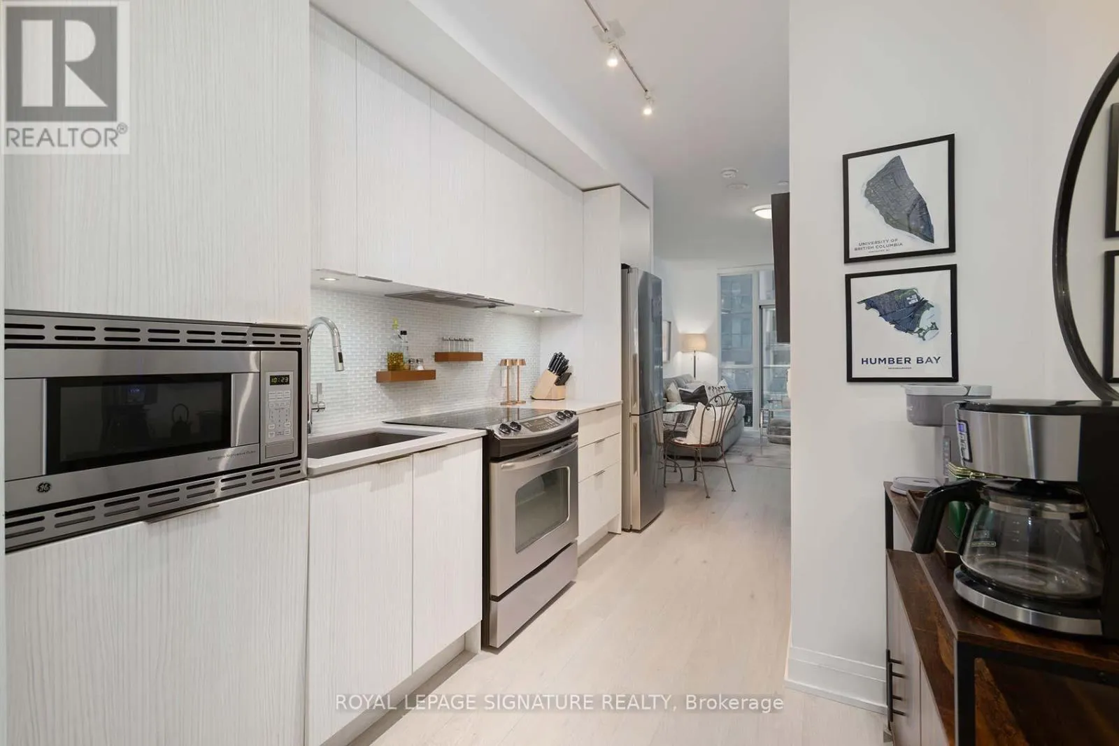 Cross Streets: PARK LAWN RD & MARINE PARADE. ** Directions: PARK LAWN & MARINE PARADE. Welcome Riva del Lago - A Monarch-built luxury 16-storey boutique condo in the highly sought-after Humber Bay Shores waterfront community. This beautiful residence is ideally located just steps from Lake Ontario and offers 551 SQ FT of functional space, carpet-free layout featuring one generously sized bedroom with a walk-in closet complete with custom organizers, and one full bathroom. Wide plank, Light-coloured laminate flooring floors throughout the unit, enhancing the bright and modern feel. The contemporary kitchen is equipped with contemporary cabinetry, quality appliances, quartz counters, glass tile backsplash under mount lights & an under mount sink. Enjoy your private 35 sq ft BALCONY with serene partial views overlooking Humber Bay, and the added convenience of being located next door to the building's fitness facilities. Additional features include one secure underground PARKING SPACE, a STORAGE LOCKER and Convenient Ensuite Stackable Washer & Dryer. Residents have access to exceptional amenities including a fully equipped two-storey fitness centre, indoor pool, sauna, party room, 24/7 concierge, Theatre room, "Pet-Washing" Room, Guest Suite and visitor parking. You can literally step out of the building and grab a coffee or a bite to eat, at one of the many bakeries or eateries. Conveniently situated minutes from the Gardiner Expressway, with TTC and streetcar access just steps from the building, commuting to downtown Toronto is efortless. Surrounded by scenic lakeside trails, ideal for jogging and cycling, as well as walkable dining, nearby shopping, and leisure options-this home offers the perfect balance of urban convenience and waterfront living. Please see ATTACHEDFEATURE SHEET for all upgrades and information. FLOOR PLAN also attached. (id:27476)