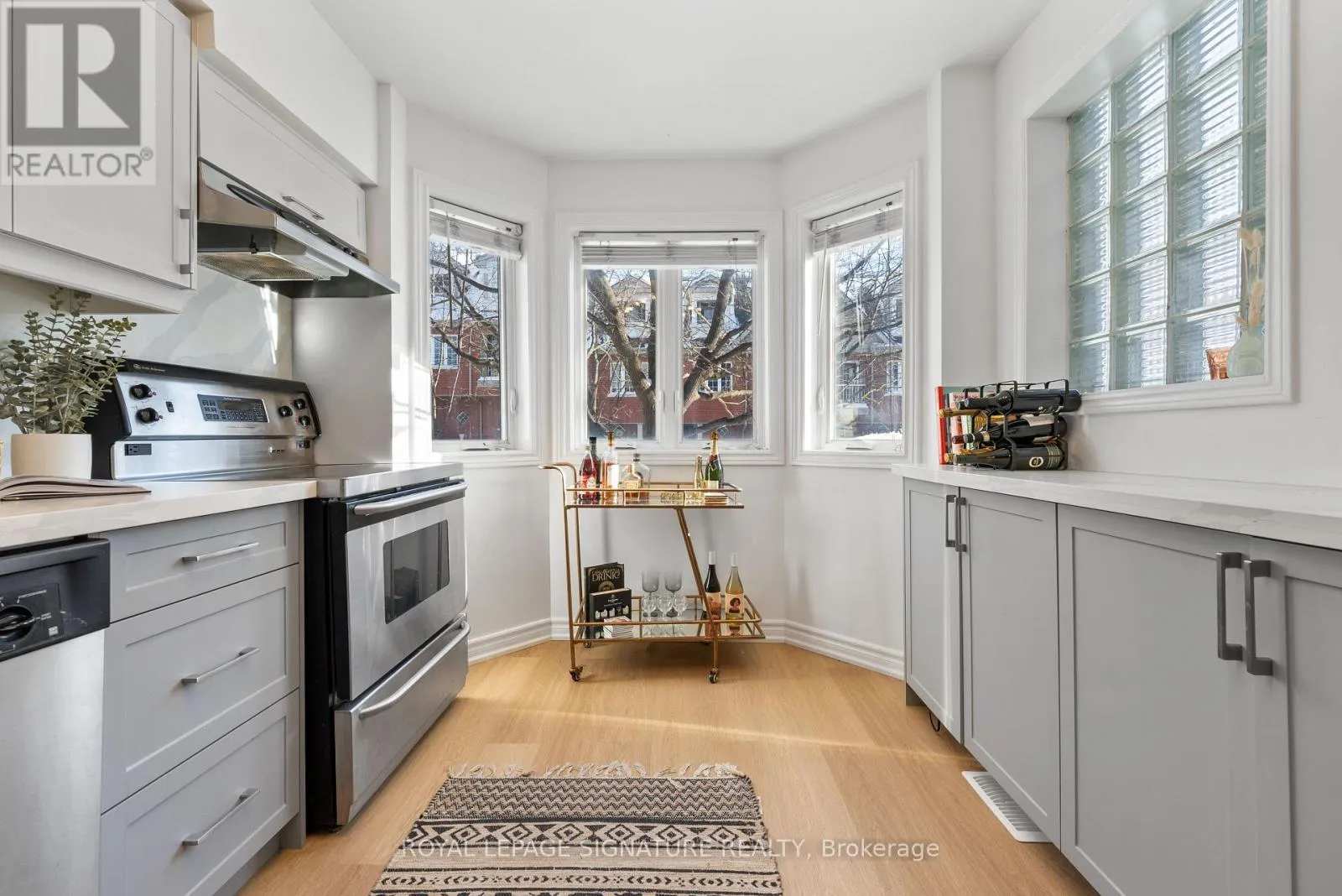 Adelaide and Shaw Welcome to 32D Massey St, a stylish city townhome that truly feels like home, tucked away on a quiet, tree-lined street in one of downtown Toronto's most walkable neighborhoods. This thoughtfully laid-out 2-bedroom, 2.5-bathroom residence offers the perfect blend of comfort and urban convenience. The renovated kitchen is bright, well-appointed, and designed for easy everyday living, while the main floor opens to a private back deck overlooking a peaceful common area, an unexpected retreat in the heart of the city. Both bedrooms feature their own ensuite washrooms, offering privacy and flexibility for guests or roommates. The primary bedroom includes a walk-out to a private terrace, perfect for morning coffee or unwinding at the end of the day. Complete with one parking space and one locker, this home truly checks all the boxes. Just steps to Trinity Bell woods Park, King Street's top bars and restaurants, Queen West galleries and cafés, and the iconic Ossington strip, with TTC at your doorstep. Enjoy the vibrant energy of downtown living, with a peaceful space to come home to. (id:27476)