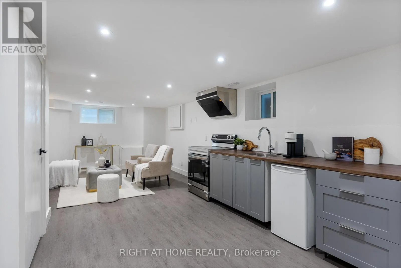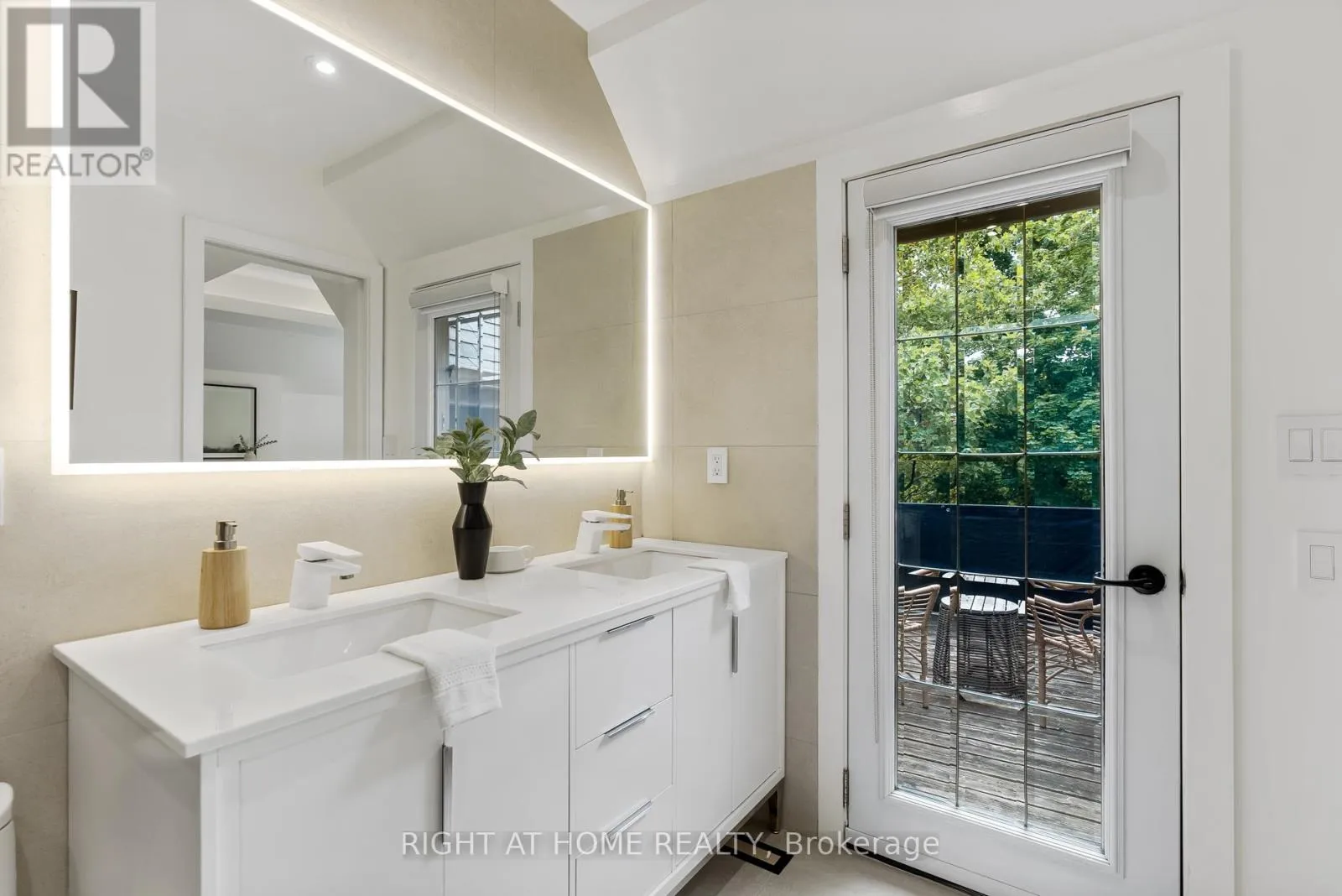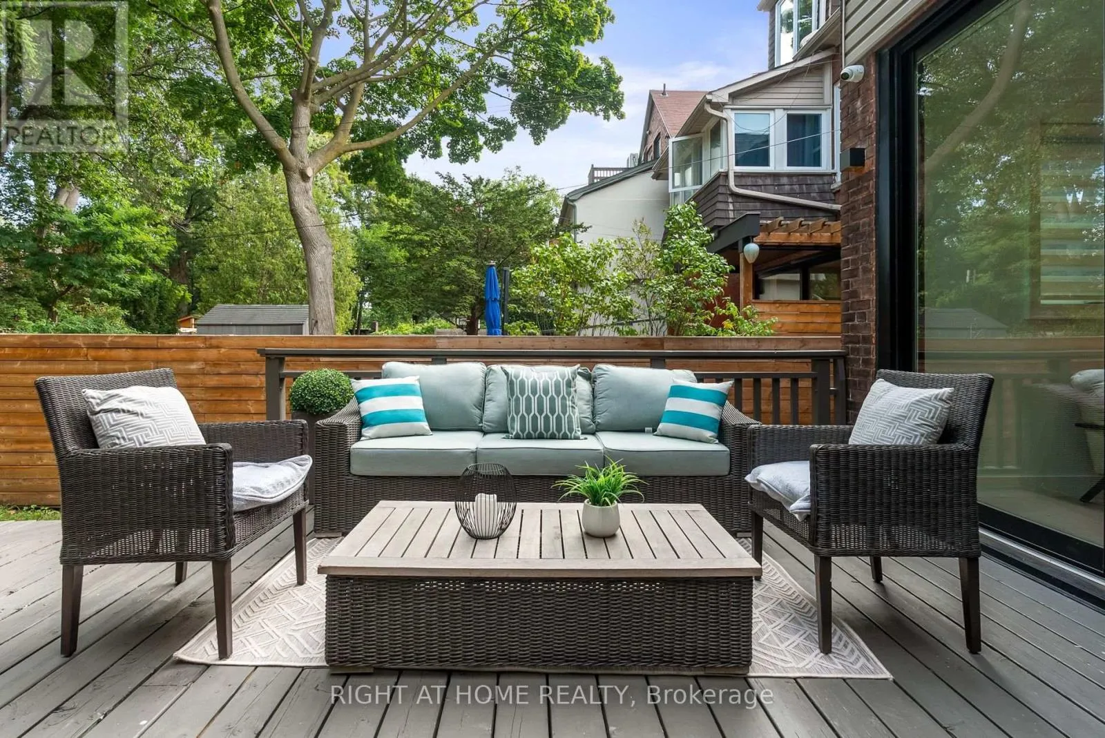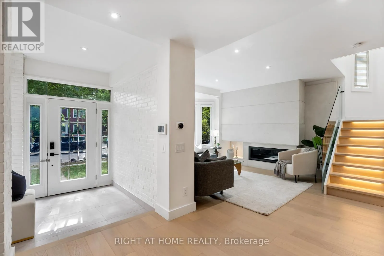 Roncesvalles Ave & Howard Park This classic detached home has been meticulously rebuilt from the studs, offering the sophistication of a new luxury residence wrapped in timeless charm. Exceptional back-to-bricks renovation in prime High Park, steps to Roncesvalles Ave. A generous foyer opens to a sun-filled open-concept main floor with soaring ceilings, sleek linear gas fireplace, and striking floating glass staircase. The chef-inspired kitchen features an oversized island, breakfast bar, coffee station, and spacious dining area-perfect for entertaining. A stylish den with walkout to the rear deck and a refined powder room. Upstairs offers three bedrooms, each with a private ensuite; the serene primary retreat boasts a spa-like bath and private balcony. The bright lower level features a bedroom, bath, open living space, kitchenette, and separate entrance-ideal for income or multi-generational living. Located in coveted Howard Jr & Fern school districts, steps to High Park, transit, subway, GO Station and UP Express. An unparalleled Toronto lifestyle. Sophisticated plumbing and electrical improvements made throughout this Zen Oasis. Move into this beautiful turnkey home with substantial mechanical upgrades throughout. Please see attachments for renovation details and building permit information. (id:27476)