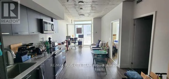 Cross Streets: Queen/Broadview. ** Directions: Queen St / Baseball Pl. Welcome to this well-designed one-bedroom condo in the highly sought-after Riverside Square community at Broadview and Queen Street East. This bright west-facing suite offers a functional open-concept layout that connects the living and dining area to a private outdoor space, making it ideal for everyday living and entertaining. The modern kitchen is equipped with integrated appliances and sleek finishes, while the spacious bedroom includes a large closet and comfortable proportions. A major highlight of this rental is exclusive access to a private 275 sq. ft. terrace, complete with a gas line, perfect for outdoor dining, barbecuing, or relaxing at home. Added convenience includes access to a shared indoor kitchen area with sink and fridge, as well as a washroom located on the same floor as the terrace. Residents enjoy an exceptional range of amenities, including a rooftop pool and lounge at 30 Baseball Place, a fully equipped fitness centre at 15 Baseball Place, concierge service, guest suites, and a dog spa located on P2. TTC streetcar access is right outside the building, with cafes, restaurants, shops, and daily essentials all within walking distance. This rental offers a rare combination of indoor comfort, private outdoor space, and resort-style amenities in one of Toronto's most vibrant east-end neighbourhoods. (id:27476)