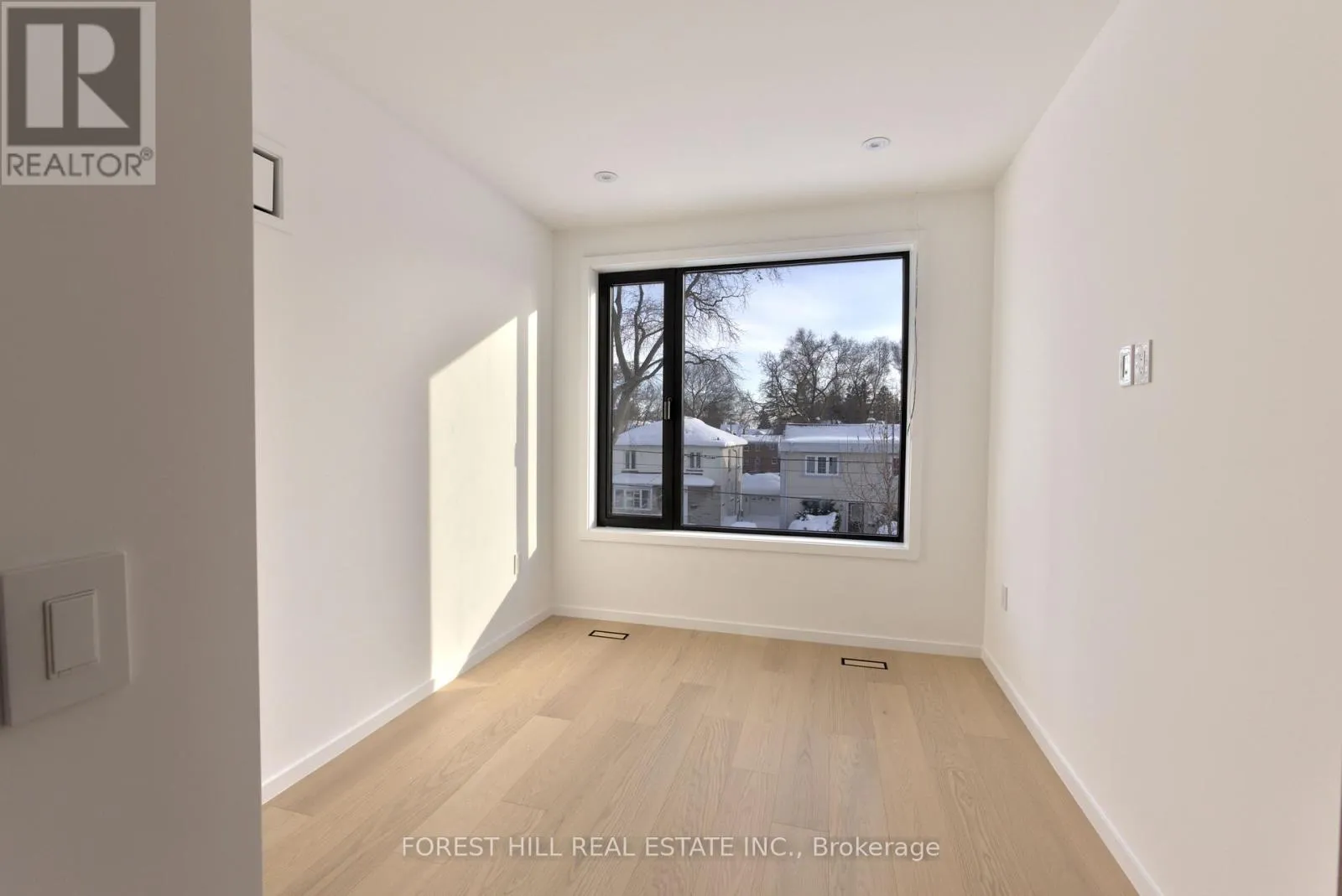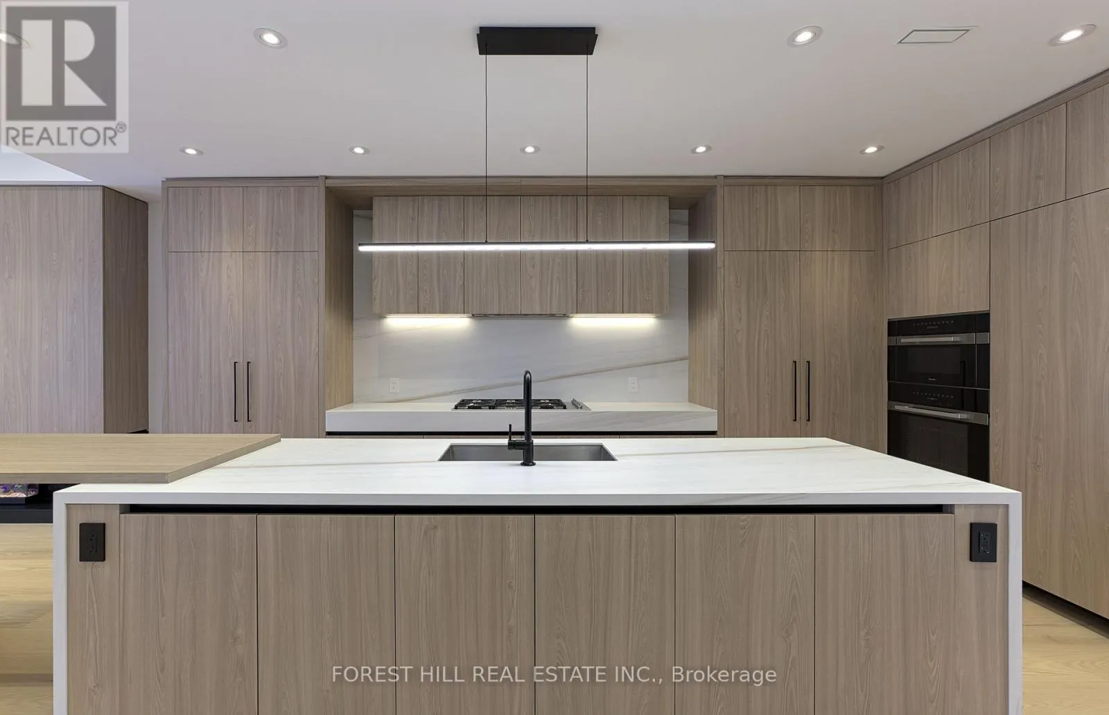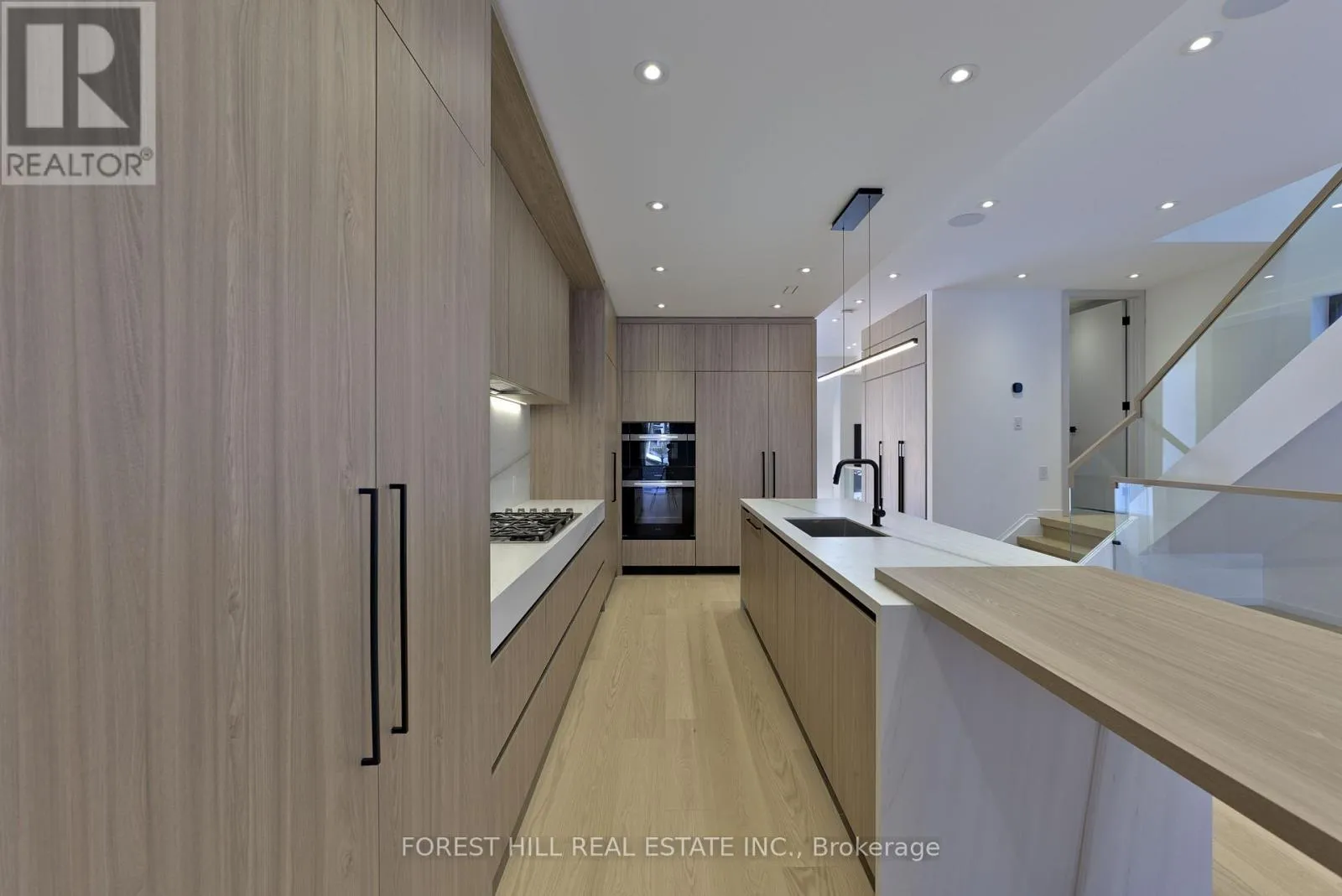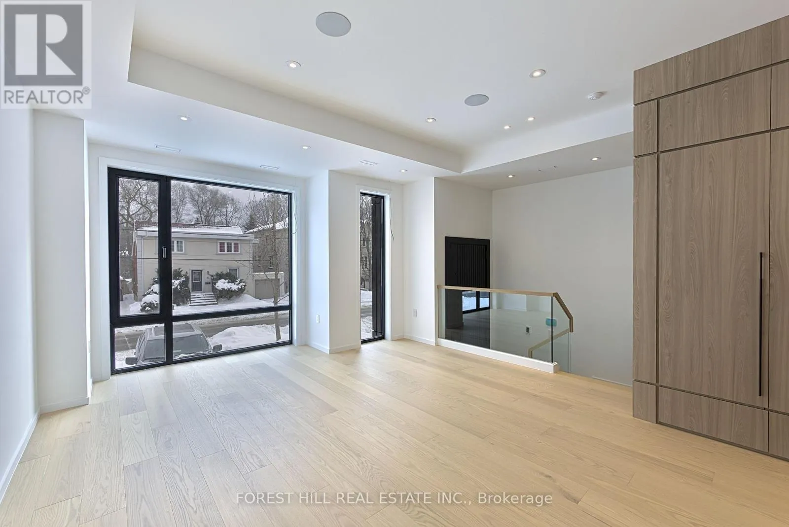 Cross Streets: Yonge/Sheppard. ** Directions: Yonge Sheppard. Experience refined luxury living in this stunning modern home on an exceptionally rare 27.5-foot lot. Boasting four bedrooms-each with a private ensuite-this residence blends modern living with everyday comfort. A heated foyer welcomes you into a living and dining area highlighted by wide-plank hardwood flooring and floor to ceiling windows. The house is operated by Control 4 smart home system and covered by security cameras.The gourmet kitchen showcases Miele built-in appliances including cooktop, oven, microwave, and integrated refrigerator with freezer, all complemented by soft-close cabinetry with Blum hardware and a striking waterfall island with a breakfast nook. The family room offers a 72" electric fireplace, built-in wall unit, surround-sound rough-in, and expansive patio doors opening onto a covered composite deck-perfect for year-round entertaining with BBQ rough-in and integrated speaker system.Retreat to the serene primary bedroom featuring a custom walk-in closet, integrated headboard with niche lighting, modern fireplace with TV rough-in, and a spa-inspired five-piece ensuite complete with heated floors and House of Rohl fixtures. Each additional bedroom includes its own ensuite and built-in closet.The fully finished basement is designed with radiant heating, a full custom kitchen with elegant AGT finishes, quartz surfaces, and a private bedroom suite-ideal for extended family or guests. With parking for up to five vehicles and exceptional craftsmanship throughout, this home defines contemporary elegance in every detail.Conveniently located in family friendly neighborhood, close to transit, grocery stores, variety of restaurants and easy access to the 401. (id:27476)