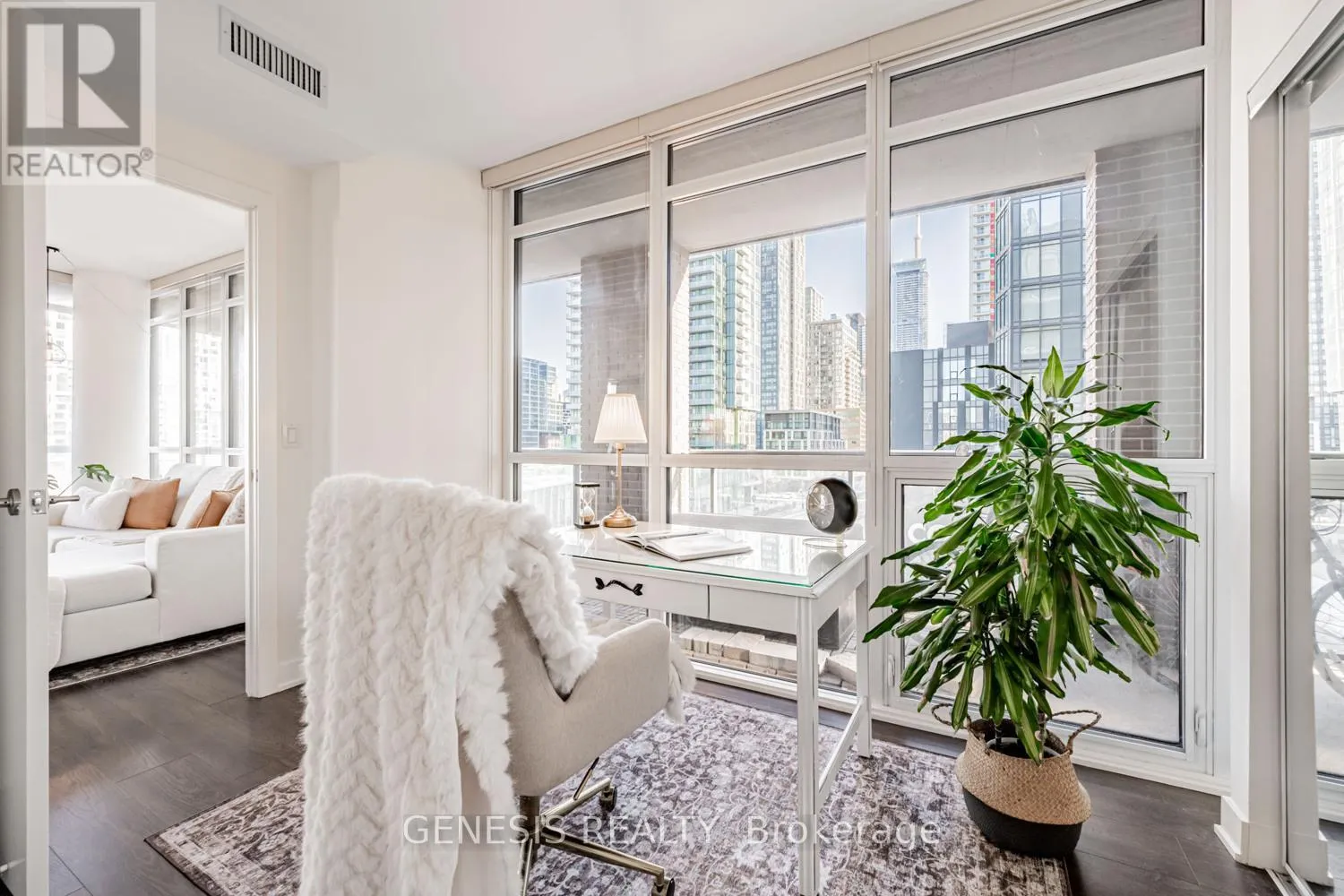 Fort York & Bathurst Experience elevated downtown living in this rare, light-filled corner suite in a boutique building where privacy and convenience meet. Floor-to-ceiling windows frame unobstructed views over Fort York Park, filling the unit with natural light in every room. A wrap-around balcony expands the living space outdoors, creating the perfect setting for morning coffee, sunsets and effortless entertaining. Inside, the spacious and functional layout features two full bedrooms plus a versatile den - ideal for a work-from-home setup or a cozy reading nook. The primary bedroom offers a luxurious walk-in closet and private ensuite. This unit features a brand-new washer/dryer and microwave oven. Freshly painted and very well-maintained, this unit is ready to make your own. Positioned at the bustling Fort York & Bathurst, you're steps to the waterfront, entertainment district, liberty village, The Well and Stackt Market. Easy access to major highways, Union and Exhibition GO Stations. On the building's retail level, enjoy direct access to Anytime Fitness, Next Golf Simulator, Organic Nail Bar and a convenience store. Walk, run or bike down Martin Goodman Trail enjoying all the vibrancy that this neighbourhood has to offer. Enjoy 24/7 security and concierge, 1 parking and 1 locker. Bonus: The best parking spot in the building (drive straight in, right beside the elevators). (id:27476)