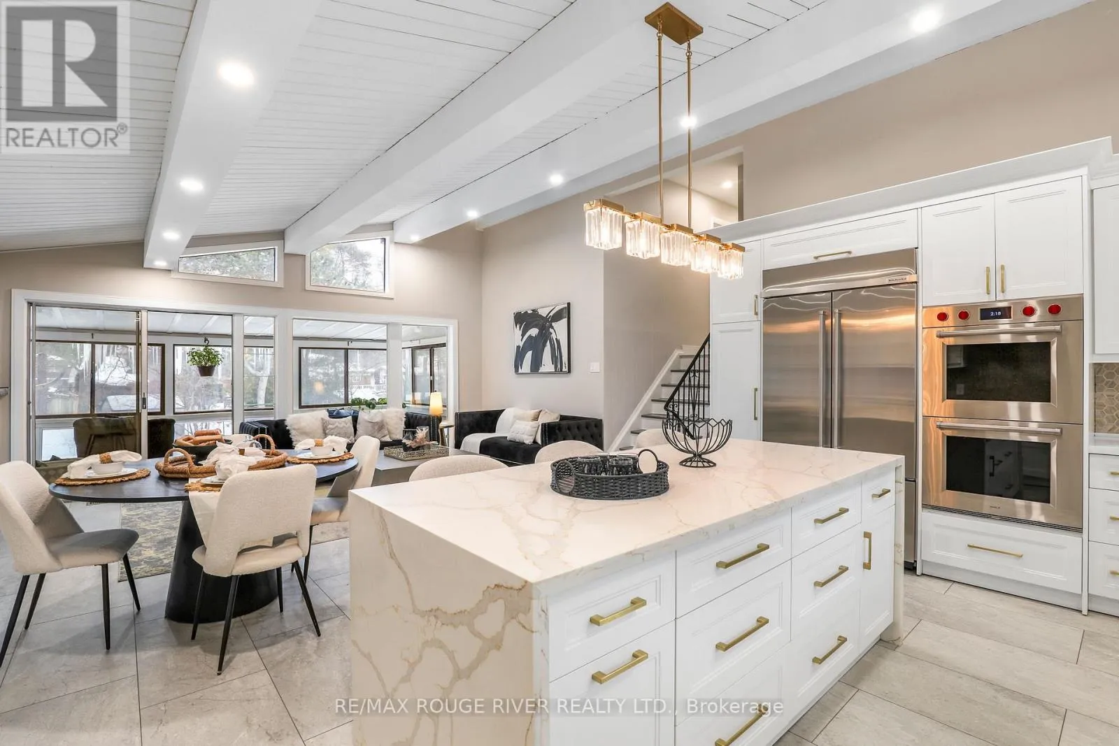 Cross Streets: Port Union and Lawson. ** Directions: East of Port Union. Welcome home to 287 Pendermere Pkwy, nestled in the highly desirable West Rouge community. This beautifully updated 4-level side split showcases a stunning chef's kitchen featuring a large waterfall centre island, premium built in Wolf appliances, double ovens, and cooktop, all seamlessly open to the dining and living areas with soaring vaulted ceilings. A bright and spacious sunroom fills the home with natural light, creating the perfect space to relax or entertain.Enjoy updated bathrooms throughout, including a primary ensuite with heated flooring. The main floor offers a versatile den ideal for a home office. An above-grade lower level with walk-out and separate entrance provides excellent in-law or income potential, with a roughed-in bathroom in the utility room on the lower level. Additional highlights include two fireplaces, an inground concrete swimming pool, pool shed, 100-amp electrical service with copper wiring, and a high-efficiency furnace. Set on an oversized, mature treed lot with an impressive 86-foot rear width. Conveniently located within walking distance to excellent schools, shopping, and TTC, and just minutes to Rouge Hill GO Station and Highway 401. (id:27476)