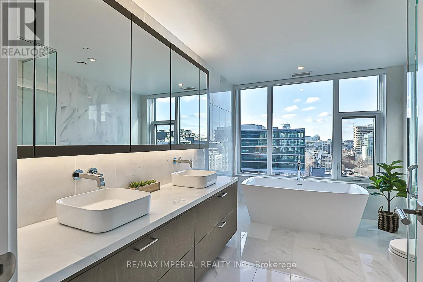 Cross Streets: Wellington and Draper Sts. ** Directions: Spadina and Wellginton. Super-rare ultra-luxury condo in the heart of Toronto for lease. Step into unparalleled luxury with this stunning Signature Series suite at The Well. Bright and spacious, offering 2,297 sq ft plus a 166 sq ft balcony, this NW-facing residence features two bedrooms plus a large den and three washrooms, along with an ultra-spacious living and dining area. Designed to impress, the home offers an expansive living space thoughtfully separated for privacy, a white kitchen with elegant marble details, and a built-in wine cellar complemented by top-of-the-line Miele appliances. Enjoy the warmth of the direct-fireplace feature and hardwood flooring throughout, with 10-foot ceilings enhancing the sense of space and light. The primary suite features a spa-like five-piece bathroom with premium finishes, a soaking tub, and a glass-enclosed shower. Additional highlights include an independent laundry room and an advanced intercom system for added security and convenience. Experience refined living with exclusive access to Tridel's ultra-luxury lobby and premium amenities. Ideally located just steps from The Well and Spadina, in one of Toronto's most sought-after neighbourhoods. Includes two parking spaces (one EV-ready) conveniently located next to the parking entrance. (id:27476)