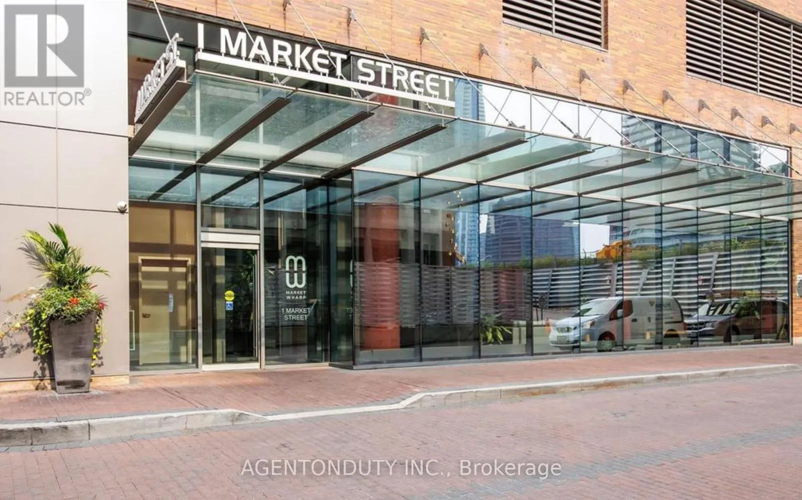 Cross Streets: jarvis/the esplanade. ** Directions: south of st Lawrence market. Experience elevated downtown living at Market Wharf! This bright and stylish suite at 1 Market St #1301 offers an unbeatable location in the heart of Toronto. Just steps to St. Lawrence Market, the Financial District, Harbourfront, Union Station, and with immediate access to the DVP and Gardiner Expressway - convenience truly doesn't get better than this.Inside, enjoy soaring 9' ceilings, modern finishes, and wood and tile flooring throughout. The thoughtfully designed layout is perfect for today's lifestyle, whether you're working from home or entertaining. Step out onto the oversized west-facing balcony to take in spectacular Toronto skyline views and stunning sunsets - the perfect break between meetings or a relaxing end to your day.Contemporary décor, abundant natural light, and an unbeatable urban setting make this suite a standout opportunity in one of downtown's most sought-after communities. Live where everything happens! (id:27476)
