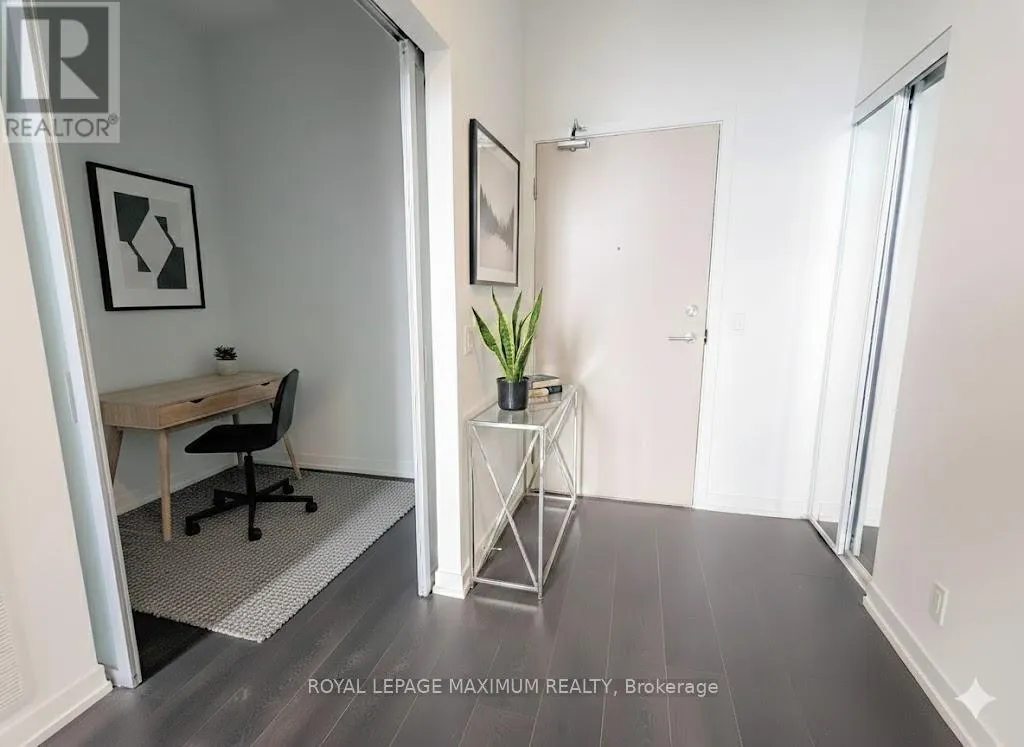 Cross Streets: BATHURST AND EGLINGTON. ** Directions: enter from Bathurst. This one-bedroom plus den condo features a functional and well-planned layout. The suite opens to an open-concept kitchen and living area with a walk-out to a south-facing balcony overlooking the building's interior courtyard. The kitchen includes stainless steel built-in appliances, stone countertops, a tile backsplash, and track and pot lighting, with floor-to-ceiling windows bringing in abundant natural light. The fully enclosed den with sliding glass doors can be used as a home office or second bedroom. The primary bedroom has a built-in closet, and the three-piece bathroom is finished with modern fixtures. An in-suite laundry enclosure includes a stacked front-loading washer and dryer. Parking and a locker are included. Situated in the Forest Hill and Cedarvale area, the building is close to transit, shops, restaurants, and everyday amenities. Residents enjoy concierge service, a fitness centre, yoga and exercise areas, an outdoor terrace with BBQs, and shared recreational spaces. Direct subway access from the lobby is coming soon. (id:27476)