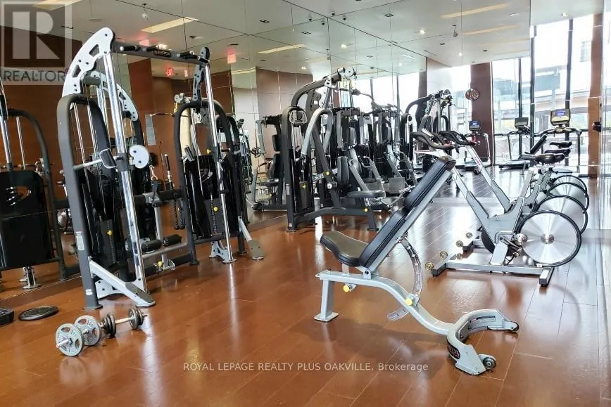 Burnhamthorpe/Hwy 427 This 5th floor, 1-bedroom + den condo in Valhalla offers just under 700 sq ft of living space with an open-concept layout and floor-to-ceiling windows. The den, measuring 8 x 8 feet, can serve as an office or potential second bedroom. The main living area includes an additional office nook, while the kitchen features a large movable island and pantry. The bedroom, which fits a queen bed, has a walk-in and a linen closet. Recent updates include bedroom laminate flooring (2016), a Bosch washer and dryer (2018), a Bosch dishwasher (2022), pull down window blinds (2024) and front entrance sliding mirror closet doors (2025). Valhalla provides numerous amenities for residents. The building offers 24-hour concierge service, multiple gyms, an indoor pool and hot tub, yoga rooms, saunas, a theatre room, a billiard room, a children's play room, and two party rooms. Three guest suites are available for rental, and the building is pet-friendly, allowing two pets per unit. The condo's location near the parking spot and storage on the 3rd floor adds convenience. With low-cost internet options and a policy against short-term rentals, Valhalla combines comfort and practicality for its residents. (id:27476)