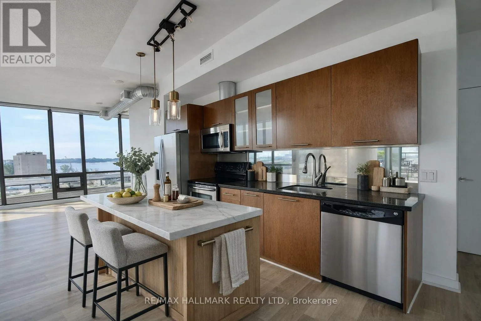Cross Streets: Parliament & Mill. ** Directions: Mill & Parliament. Welcome to 33 Mill St - where lifestyle meets location! This rare south-east facing corner suite offers breathtaking lake and Distillery District views from your own massive 500 sq ft private terrace - perfect for morning coffee, summer dinners, or relaxing at sunset. Inside, enjoy nearly 800 sq ft of bright, open-concept living with floor-to-ceiling windows that flood the space with natural light. The thoughtfully designed layout features a spacious primary bedroom with two separate closets, a 4-piece ensuite, and beautiful lake views. The second bedroom offers direct walk-out access to the terrace - ideal for guests, a home office, or both. The modern kitchen is equipped with stainless steel appliances, and the unit has been freshly painted with brand new flooring, giving it a clean, move-in ready feel. This sought-after building delivers true 5-star amenities: rooftop pool, hot tub, sun deck with BBQs, fully equipped gym, party room, and more - all with incredible skyline views. Located in the heart of the Historic Distillery District, you're steps to top restaurants, cafés, boutiques, waterfront trails, transit, and easy highway access.795 sq ft interior + 500 sq ft terrace. Includes 1 parking space and 1 locker.A rare opportunity to enjoy space, views, and unbeatable downtown living. (id:27476)