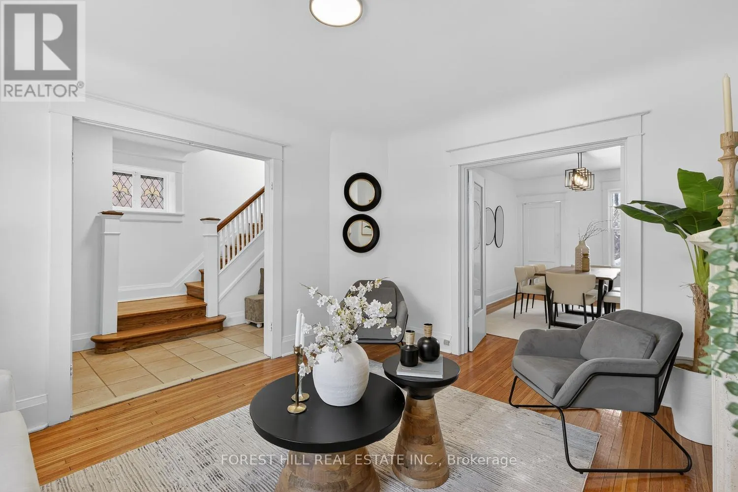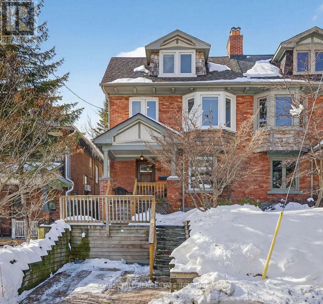 ALBERTA/TYRREL Nestled along coveted Alberta Avenue in prestigious Wychwood, this elegant & beautiful semi-detached home offers an exceptional amount of space and stature in one of the neighbourhood's most sought-after pockets. With approximately 2,200 sq ft above grade and over 2,900 sq ft of total living space, the large scale here is rarely found in the area. This late Edwardian era home features original stained glass, five generous bedrooms plus a den/office across the second and third floors, airy and sunlight filled throughout. This showstopper features three full bathrooms, Expansive principal rooms that include oversized living and dining areas ideal for family living and entertaining.The kitchen offers a pantry and a walk-out onto the deck and lush thoughtful curated backyard while the finished lower level boasts impressive ceiling height & pot lights - creating flexible space for laundry, recreation, guests, or a home office. Outback, the deep, table-land back garden looks like a private oasis complete with a deck, perennial rose and flower garden, cedar and mature trees that provide shade, serenity and al fresco dining. A garden shed adds convenient storage for tools, BBQ, bikes, or strollers. The front garden has a lovely blooming Dogwood tree, Climbing Rose, Japanese Purple-Leaf Sand Cherry tree plus more. Legal front pad parking for one car, ample street parking on both Alberta and Tyrrel, and supreme location just steps to McMurrich Junior Public School and Winona Drive Senior Public School. Enjoy being minutes from public transit, Wychwood Barns and its popular Saturday Farmers' Market, Hillcrest Park, Geary Avenue's vibrant dining scene, Ossington, St Clair Ave West and more - all while living on a prominent peaceful mature tree-lined street with a secluded vibe surrounded by nature. A rare opportunity to own a substantial spacious charming forever family home in the heart of Wychwood. (id:27476)