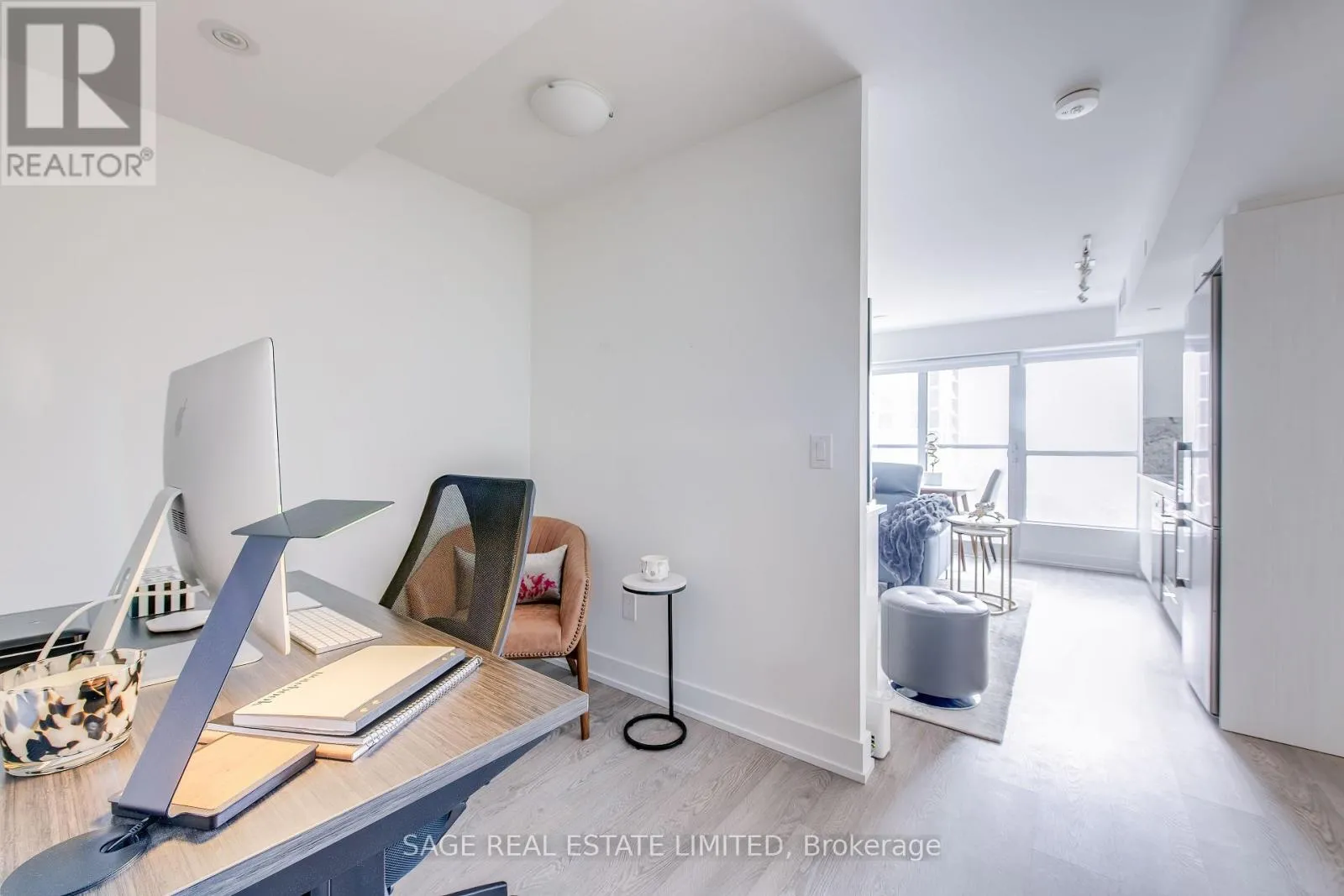 Islington/Bloor Welcome to Bloor Promenade! Suite 834 is a bright and functional 1-bedroom plus den with northwest exposure, offering city views and abundant natural light. The spacious bedroom comfortably fits a queen bed with bedside tables and features a walk-in closet. The den provides the ideal space for a home office, nursery, or creative nook.Thoughtful finishes include premium laminate floors, sleek cabinetry, stone countertops, and stainless steel appliances. Parking and a locker are included for added convenience and storage. Enjoy resort-inspired amenities designed to fit every lifestyle:indoor pool, yoga studio, fully equipped fitness centre, basketball court, party lounge, games room, theatre, rooftop sundeck with BBQs, concierge, bike storage, pet wash, and visitor parking. Steps to Islington subway, with quick access to the QEW/427/401, Sherway Gardens, local shops, parks, and trails. Downtown is just 20 minutes away. (id:27476)