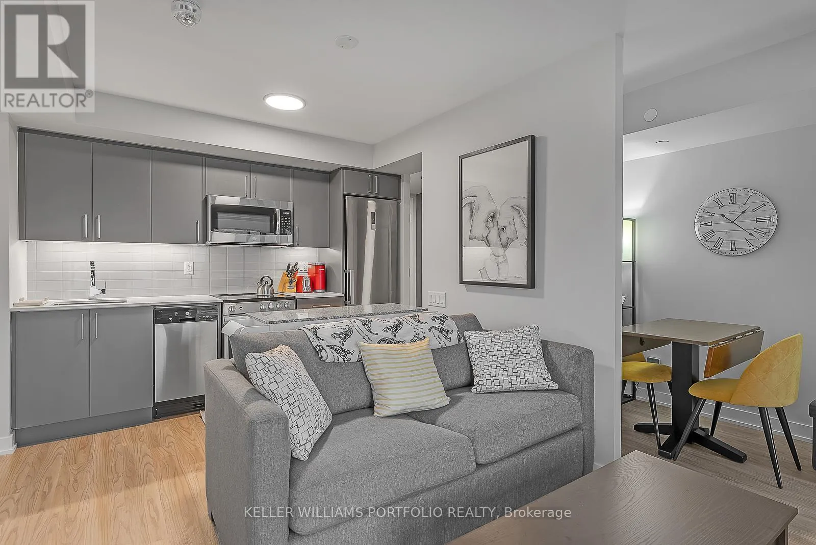 William R. Allen Rd / Wilson Ave Beautiful Furnished 1 Bedroom + Den Unit At Rocket Condo W/ Wilson Subway Station At Your Doorstep. Stylish Open Concept Layout W/Balcony, Modern Finishes Throughout. Laminate Flooring, Designer Eat-In Kitchen W/ Quartz Counter Top, En Suite Laundry. Building Amenities Include: Fitness Facility, Day Care, Boardroom, Lounge W/ Bbq And Party Room. Prime Location Close To Subway Station, Yorkdale Mall With Easy Access To York University And Major Hwys. (id:27476)