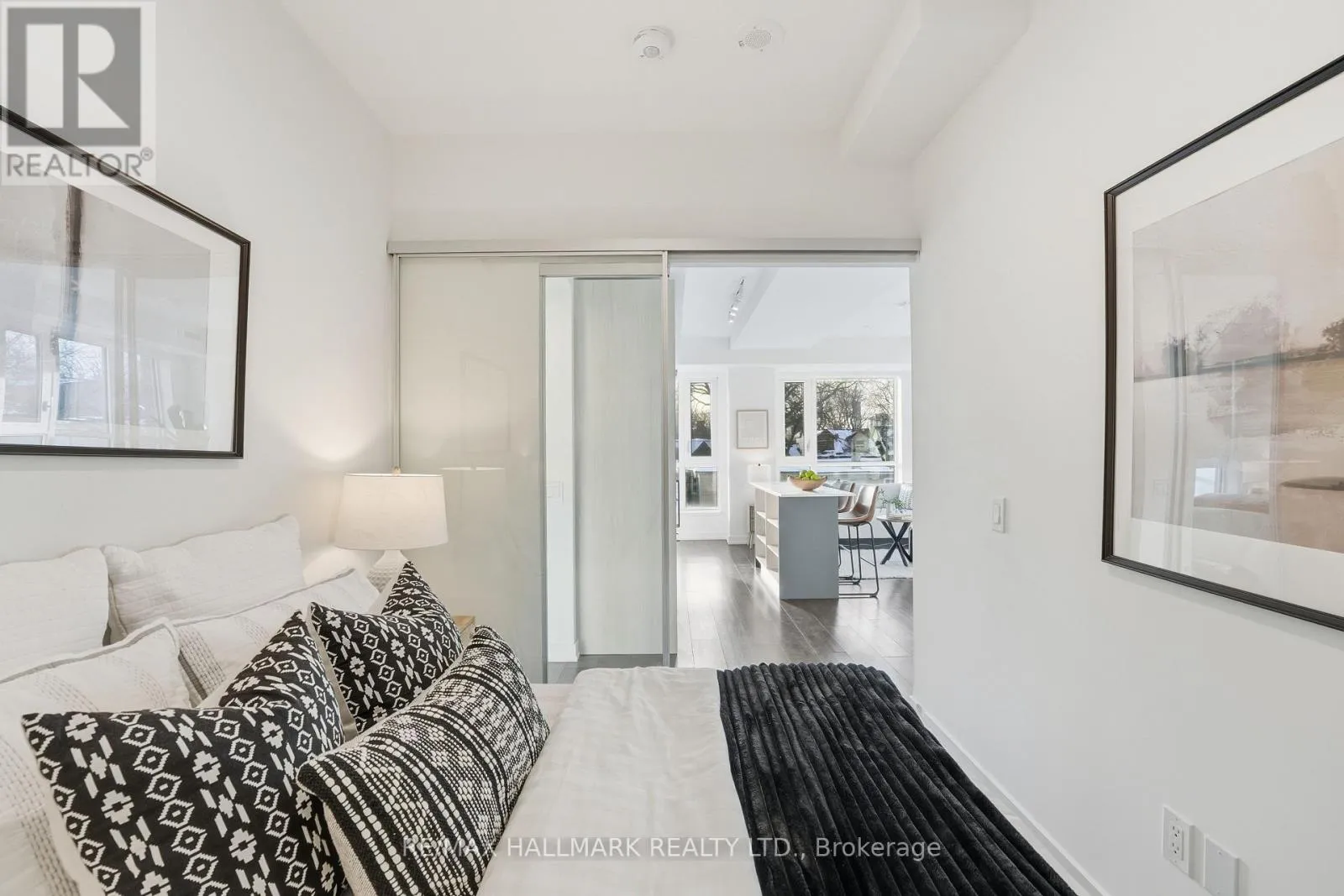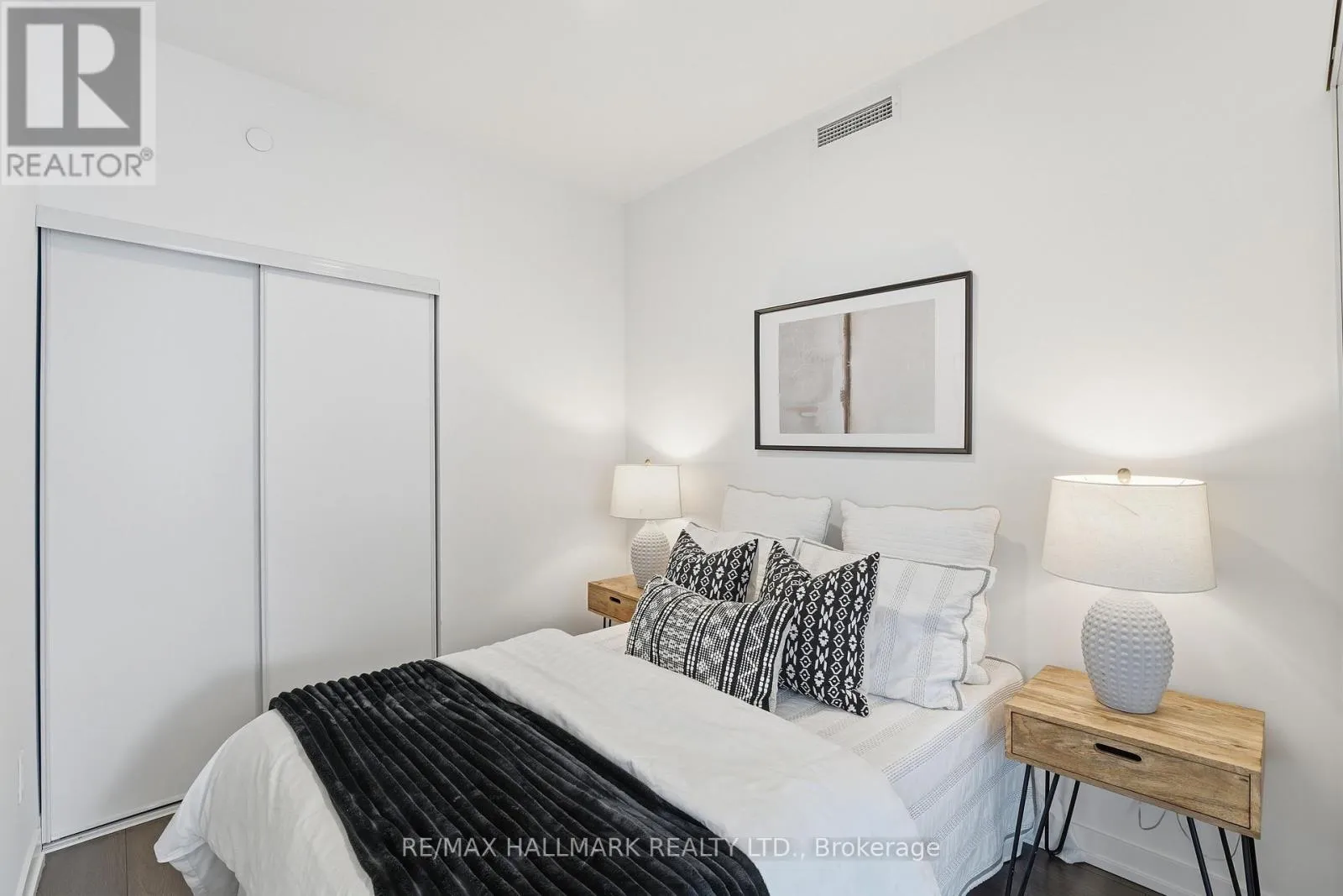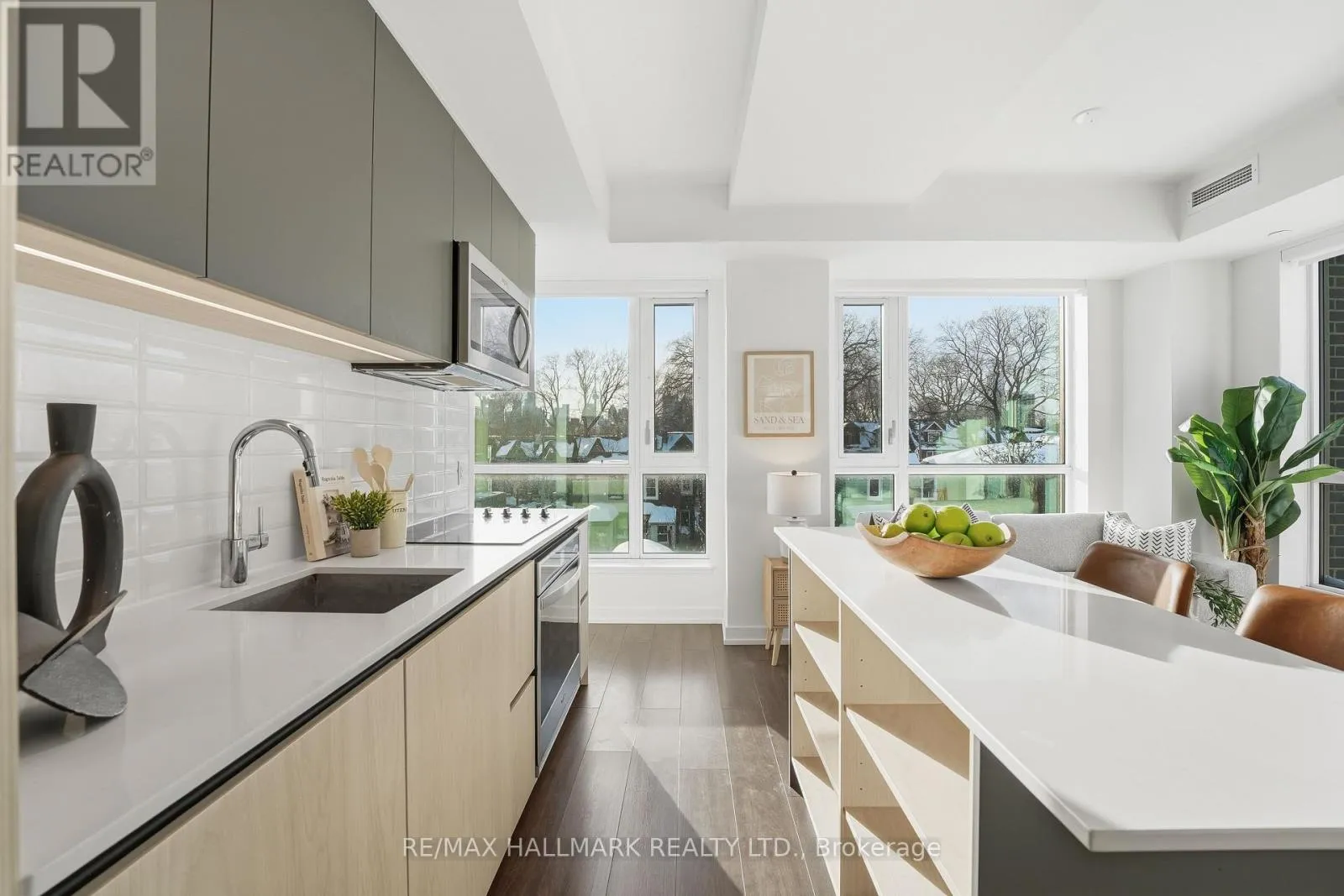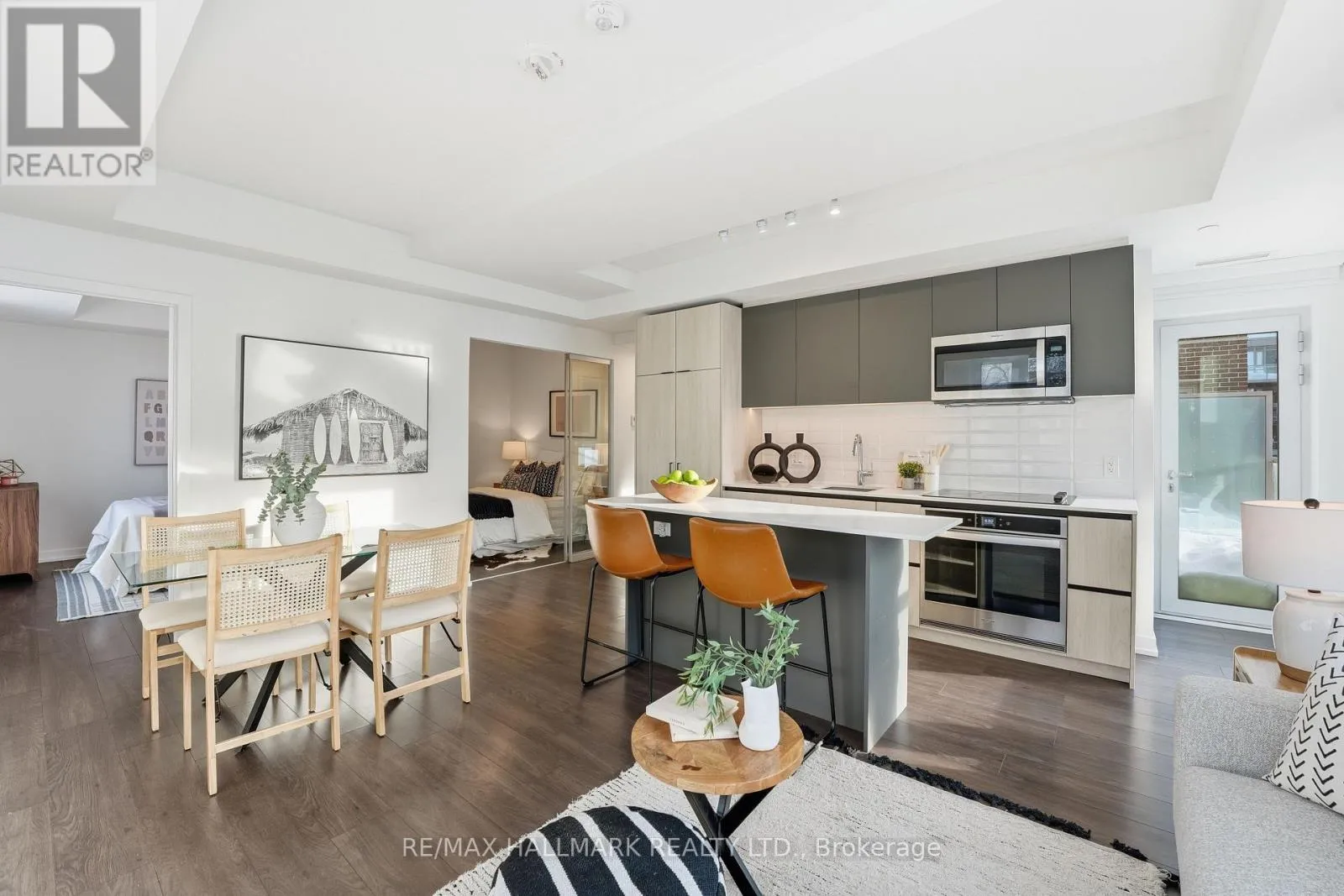 Cross Streets: Logan Ave/Eastern Ave. ** Directions: https://share.google/N1h65a1EIcVkHL38Z. Stylish & quiet 3-bedroom, 2-bathroom corner suite with underground parking & locker in Leslieville's iconic Wonder lofts, formerly the historic Weston Bakery. Highly functional layout with 9 ft smooth ceilings, abundant natural light, and west-facing exposure with north and south exposures. Contemporary two-tone chef's kitchen features integrated stainless steel appliances, white quartz countertops, under-cabinet lighting, undermounted sink, and a generous island that doubles as a breakfast bar . Flint Oak wide plank laminate flooring throughout. Primary bedroom includes a 4-piece ensuite. Second bathroom is a 4-piece with a deep soaker tub. The second bedroom works beautifully as a spacious home office with glass sliding doors and great natural light. The third bedroom features north-facing windows with sunlight throughout the day and motorized blackout roller blinds. Remote-controlled day shade blinds are also installed in the living area, and blackout in primary bedroom. Enjoy world-class amenities including a rooftop deck with unobstructed views and BBQs, fire pit, gym, concierge, co-working space with WiFi, indoor family and children's playroom, pet wash, and bike storage. Unbeatable location just steps to the best stretch of Queen Street East, with top-tier restaurants, independent boutiques, lively patios, transit, and excellent schools nearby. Ideal for a work-from-home couple or a growing family. A rare blend of style, comfort, and urban convenience in one of Toronto's most dynamic neighborhoods. A must see! (id:27476)