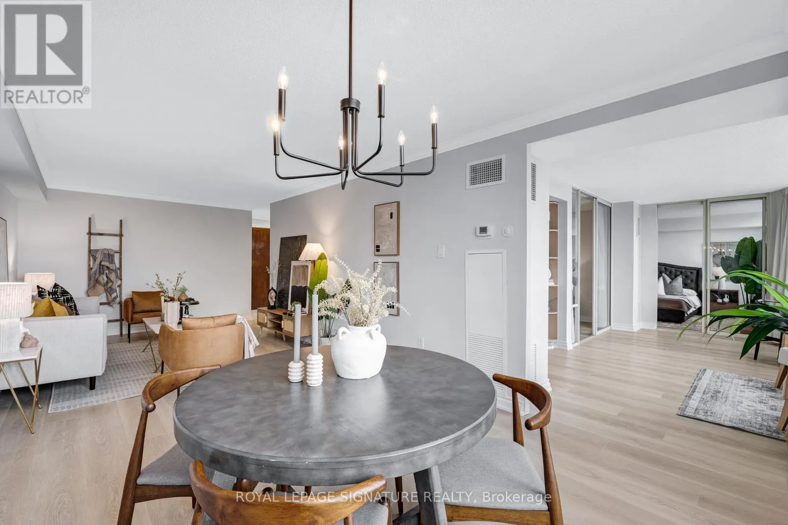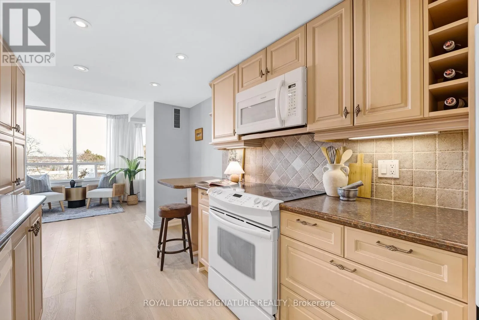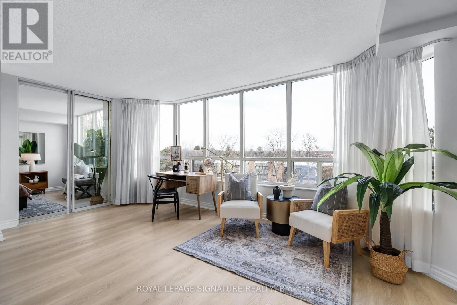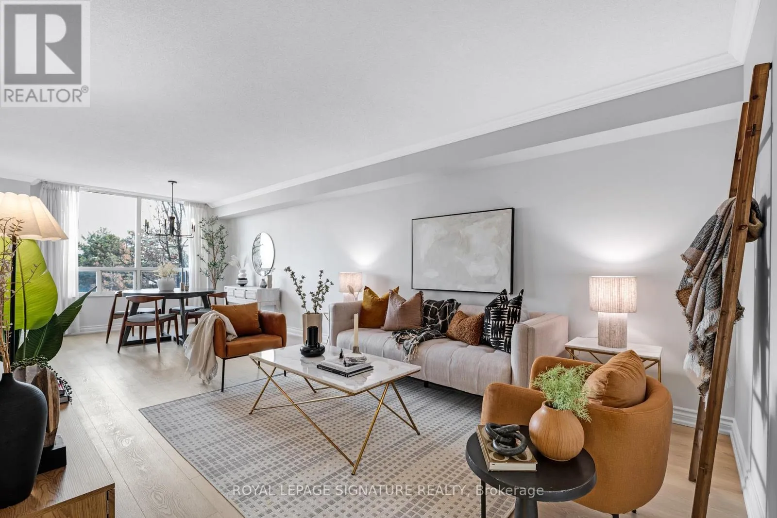Cross Streets: Don Mills Rd & Lawrence Ave E. ** Directions: Type \"1210 Don Mills Rd\" into Waze!. Suite dreams start here: Welcome to this spacious 2+1 bedroom, 2 bathroom suite offering an impressive 1,366 square feet of bright, functional living space in the highly sought-after Windfield Terrace, nestled in the desirable Don Mills & Lawrence neighbourhood. Freshly painted with newly laid floors, this move-in-ready home combines comfort, style, and unbeatable convenience. Step inside to a welcoming foyer with a large closet and additional storage in the walk-in ensuite laundry room (see floor plan!). The expansive living and dining area easily accommodates a full-sized dining table-perfect for entertaining or family gatherings. The generously sized kitchen features ample cabinetry and a breakfast bar for easy everyday living. The multifunctional den is great for an office and a formal sitting area to unwind. Retreat to a spacious primary suite that fits a king-size bed, complete with a large walk-in closet and a private 4-piece ensuite with a spa-like soaker tub. The large second bedroom and full second bathroom offer flexibility for guests, or family. Enjoy impeccably maintained grounds with lush gardens and a stunning outdoor pool oasis. Building amenities include 24-hour concierge, gym, sauna, whirlpool, squash & racquetball courts, party/games room, table tennis, and more. Plus, there's ample indoor visitor parking for guests. The all-inclusive maintenance fees cover all utilities. The suite is ideally located within walking distance to The Shops at Don Mills with top restaurants and cafes, as well as banks, the library, and parks. Enjoy nearby scenic trails, transit and easy access to the DVP. This prime location delivers unparalleled lifestyle and convenience in one of Toronto's most desirable neighbourhoods. Don't miss this rare opportunity to own a sophisticated, spacious condo with resort-style amenities and true move-in-ready appeal! (id:27476)