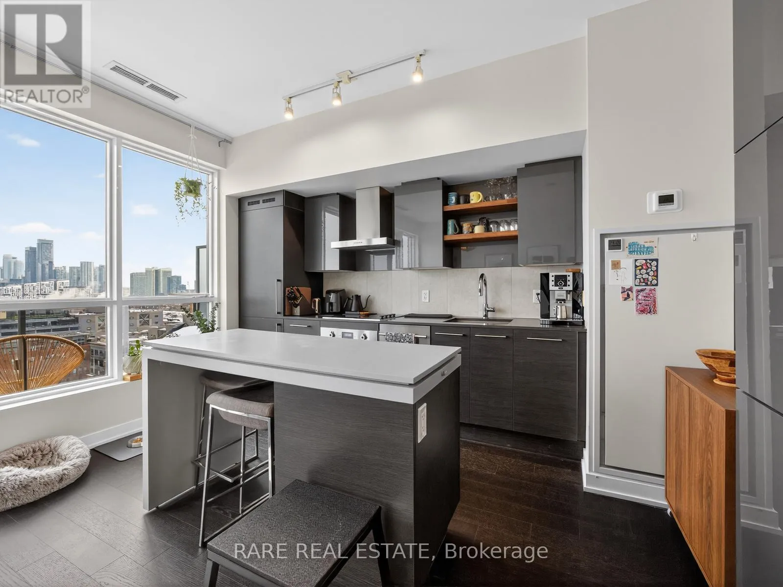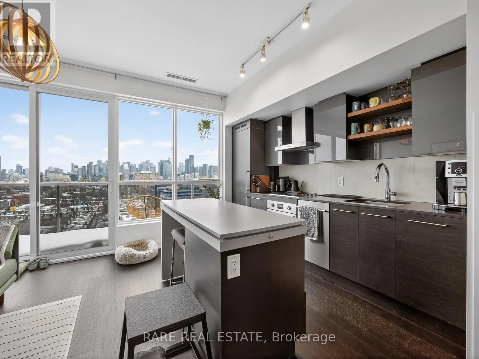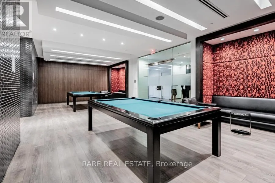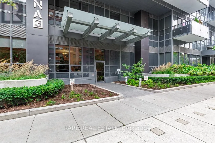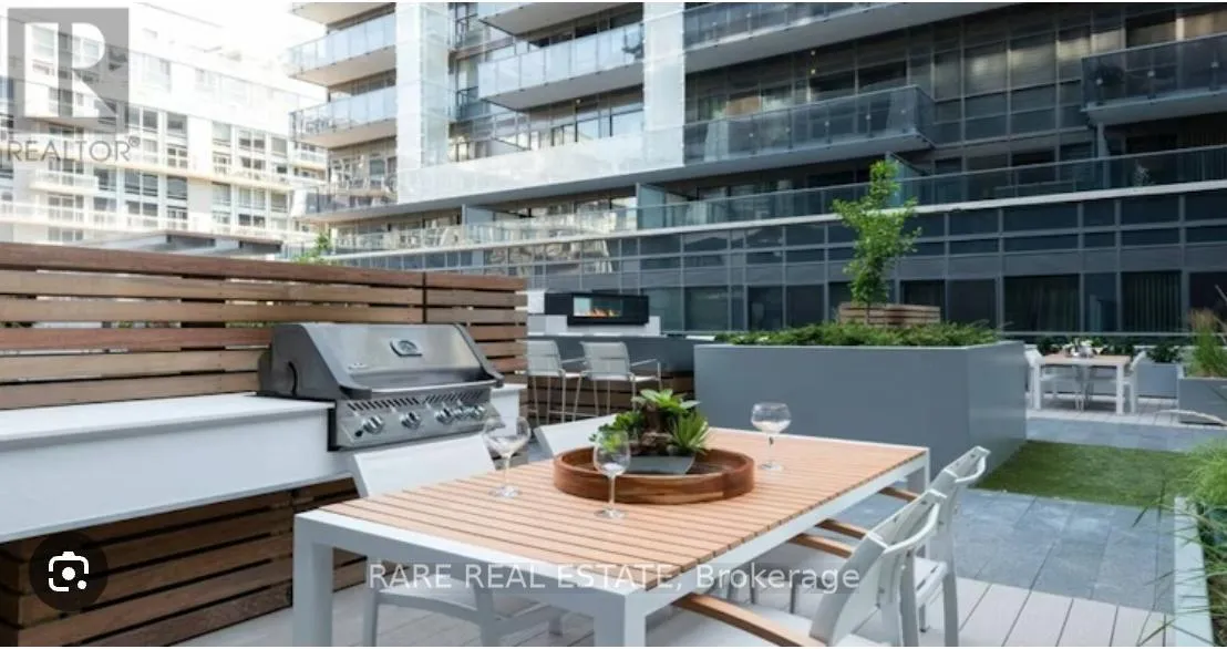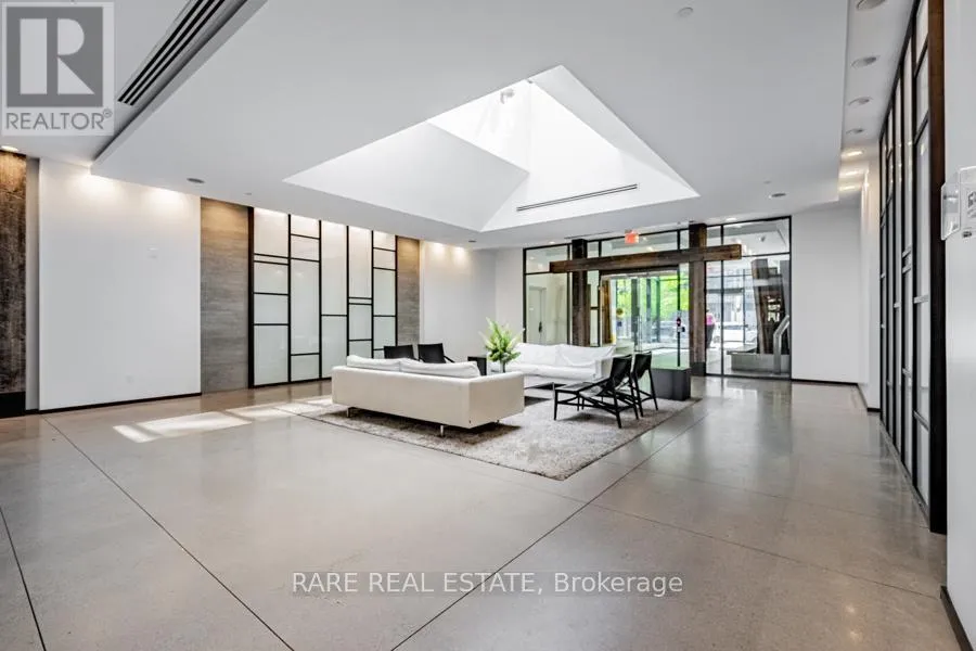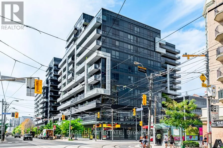 King Street W. and Shaw Street Located on King Street West near Shaw, this modern 1-bedroom plus den Penthouse condo features concrete ceilings, nine-foot floor-to-ceiling windows, and hardwood flooring. The upgraded kitchen includes stainless steel appliances, breakfast bar, quartz counter tops and a walk out to the private balcony. The building boasts a unique amenities list, including an indoor rain room with teak slate flooring, 24-hour concierge, guest suites, media and party rooms, rooftop deck, & fitness center. The south facing unit provides panoramic views of Toronto's stunning City skyline. The TTC streetcar has access right outside. Situated in Toronto s Entertainment District, near Liberty Village, and just a short trip to Rogers Centre, CN Tower, Metro Toronto Convention Centre, plus the vibrant shops, restaurants, bars, and clubs of King West: Key Building Amenities at 1030 King St W:Security & Service: 24-hour concierge and security services.Health & Fitness: Fully-equipped gym, yoga/aerobics studio, and a "Rain Room" with spa beds.Entertainment & Leisure: Rooftop terrace with BBQs and lounge seating, party room with kitchen, a games room with a bar, and a theatre room.Work & Convenience: Business centre with Wi-Fi, visitor parking, and guest suites.On-Site Retail: The building includes a Loblaws Urban Market, TD Bank, and other retail convenience options on the ground floor. The building is located in the King West neighbourhood, offering direct access to streetcar transit and proximity to Liberty Village. (id:27476)