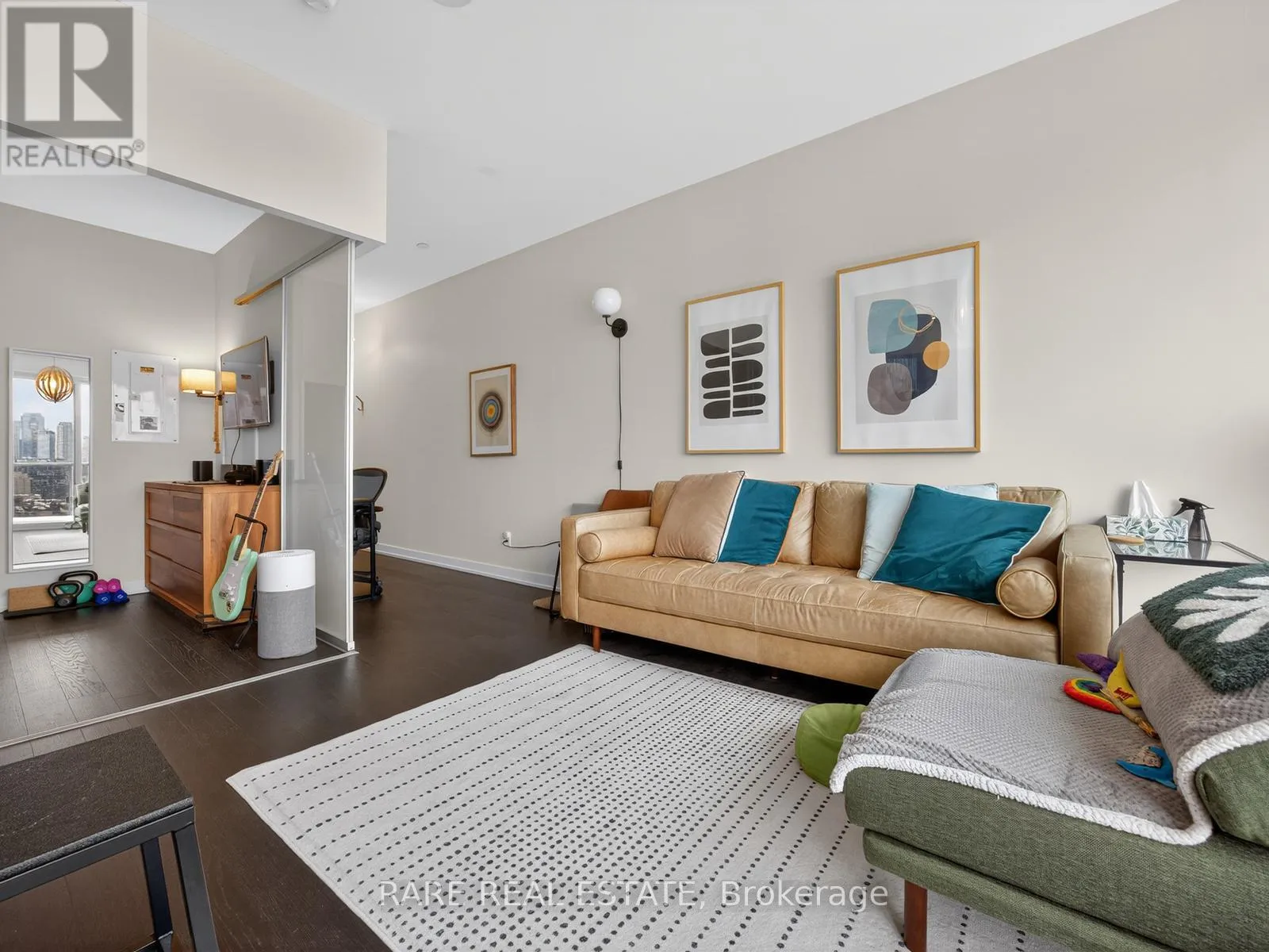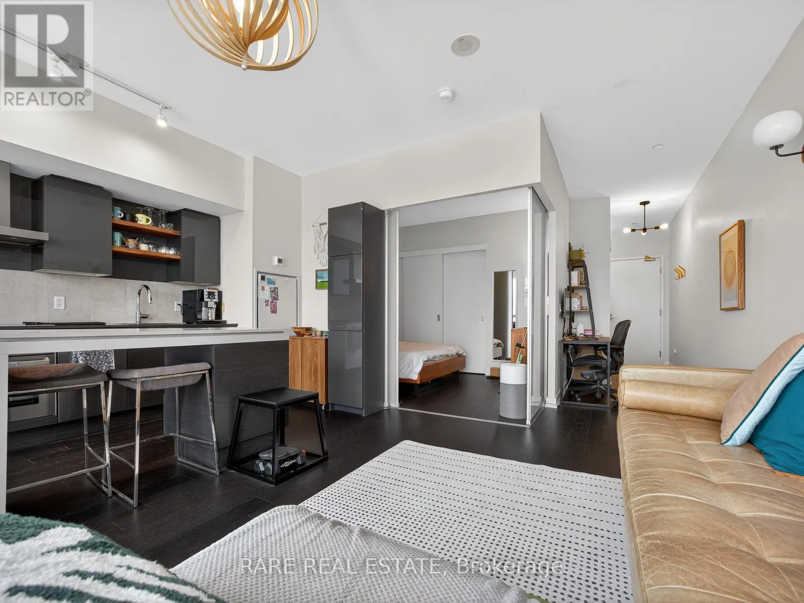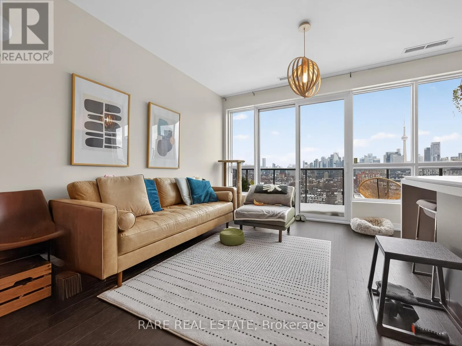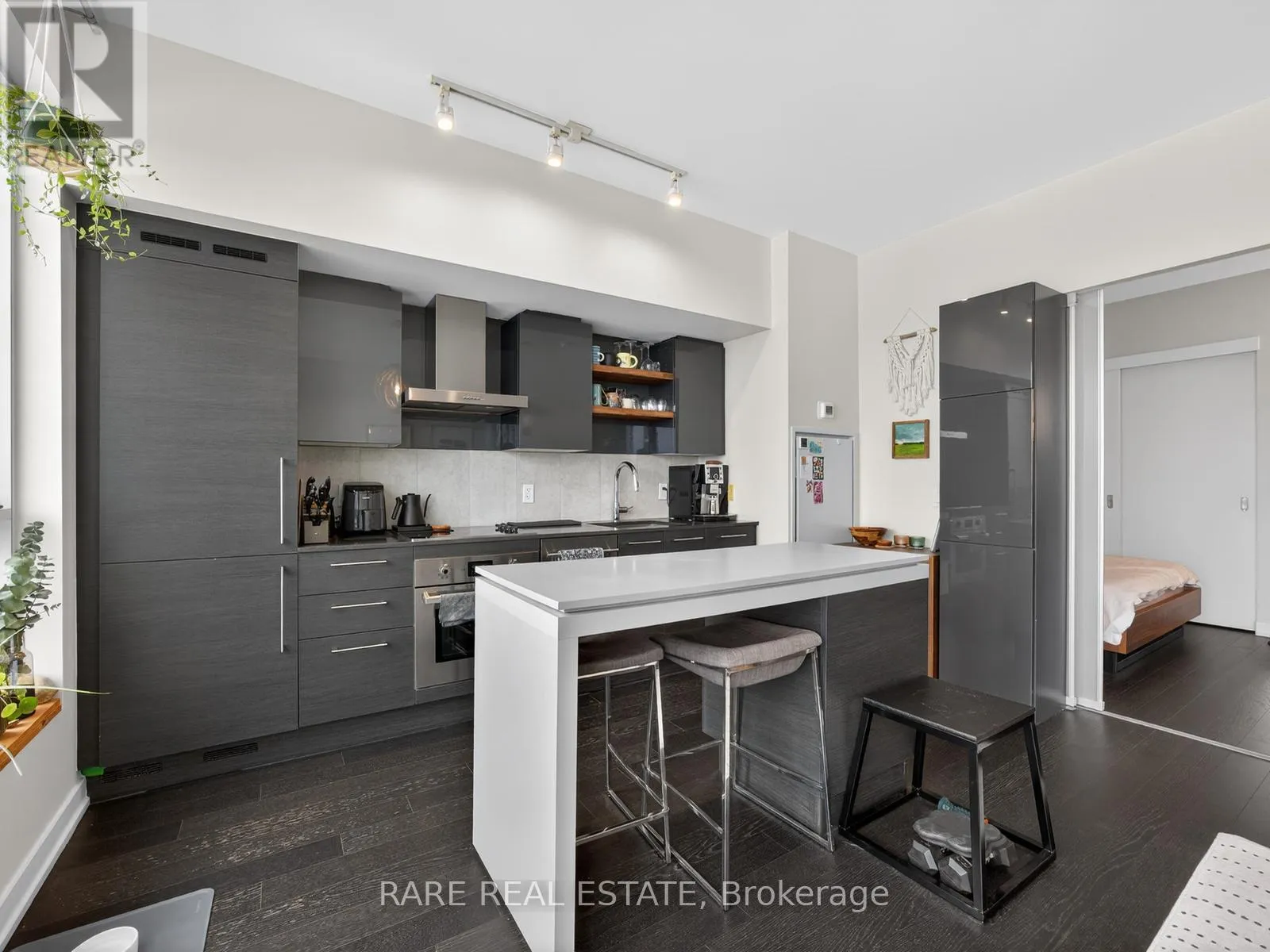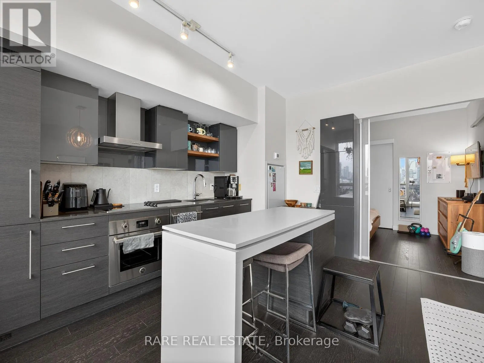 King Street W. and Shaw Street Located on King Street West near Shaw, this modern 1-bedroom plus den Penthouse condo features concrete ceilings, nine-foot floor-to-ceiling windows, and hardwood flooring. The upgraded kitchen includes stainless steel appliances, breakfast bar, quartz counter tops and a walk out to the private balcony. The building boasts a unique amenities list, including an indoor rain room with teak slate flooring, 24-hour concierge, guest suites, media and party rooms, rooftop deck, & fitness center. The south facing unit provides panoramic views of Toronto's stunning City skyline. The TTC streetcar has access right outside. Situated in Toronto s Entertainment District, near Liberty Village, and just a short trip to Rogers Centre, CN Tower, Metro Toronto Convention Centre, plus the vibrant shops, restaurants, bars, and clubs of King West: Key Building Amenities at 1030 King St W:Security & Service: 24-hour concierge and security services.Health & Fitness: Fully-equipped gym, yoga/aerobics studio, and a "Rain Room" with spa beds.Entertainment & Leisure: Rooftop terrace with BBQs and lounge seating, party room with kitchen, a games room with a bar, and a theatre room.Work & Convenience: Business centre with Wi-Fi, visitor parking, and guest suites.On-Site Retail: The building includes a Loblaws Urban Market, TD Bank, and other retail convenience options on the ground floor. The building is located in the King West neighbourhood, offering direct access to streetcar transit and proximity to Liberty Village. (id:27476)