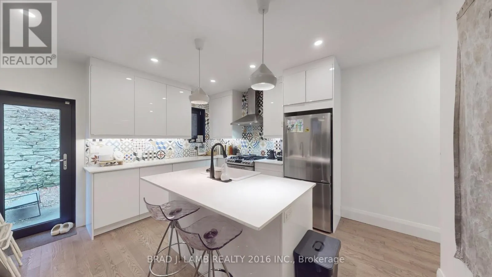 Davenport/Dufferin Legal Duplex easily converted back in to a single family home at very low cost. Two almost 900 square foot modern apartments both units have outdoor space, live in one and enjoy income on the second or immediately make this your family home. A value buy for those looking to get into the detached market. Designer finishes, every one meticulously chosen. Main floor features Chef's kitchen with gas range, large island, Stainless steel appliances undermount sink and chic tile backsplash. Light hardwood floors, black framed tilt and turn windows (2022). South facing, very bright oversized living and dining area with fireplace. bright spa like bathroom with glass shower. Proper bedroom and closet. Main floor walk out to your private, stone wall surrounded private backyard grotto. Head upstairs to the second floor apartment which features glass stair railings, light strip wood floor, large living and dining area (could add as wall to make it a bedroom if using for single family) with fireplace, walkout to front terrace with glass railings overlooking the park and with clear views downtown. Enjoy your morning coffee and watch the sunrise. Galley kitchen with Gas range, concrete countertops, undermount sink and stainless steel appliances. Large Primary bedroom with 4 pc ensuite bath feature claw foot tub and shower and double sink vanity. Office study at the real for those who need a quiet workspace. Rear exit to tiered backyard with unobstructed views to the south and all day sun. Street parking always available right in front of the house. Staging and styling provided by Scott Shallow & Co. Open House Sat Feb. 21 and Sun. Feb. 22 from 2-4 pm (id:27476)
