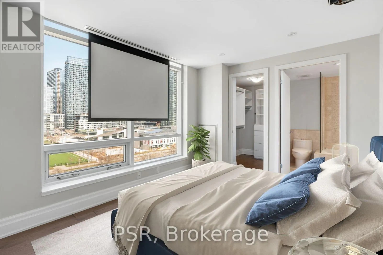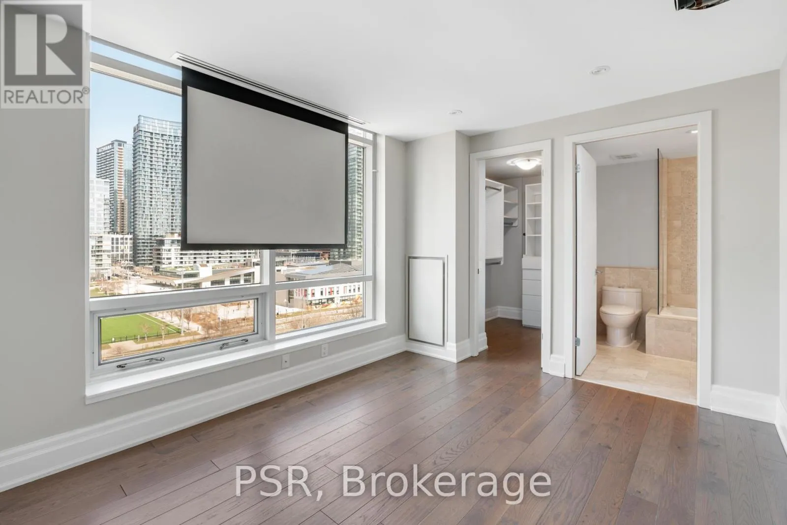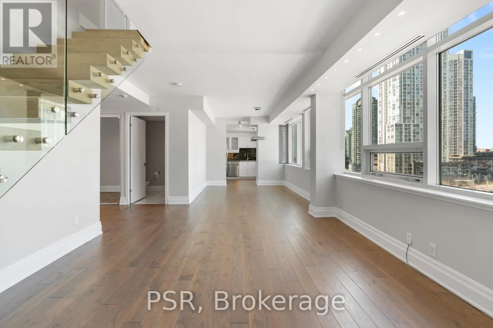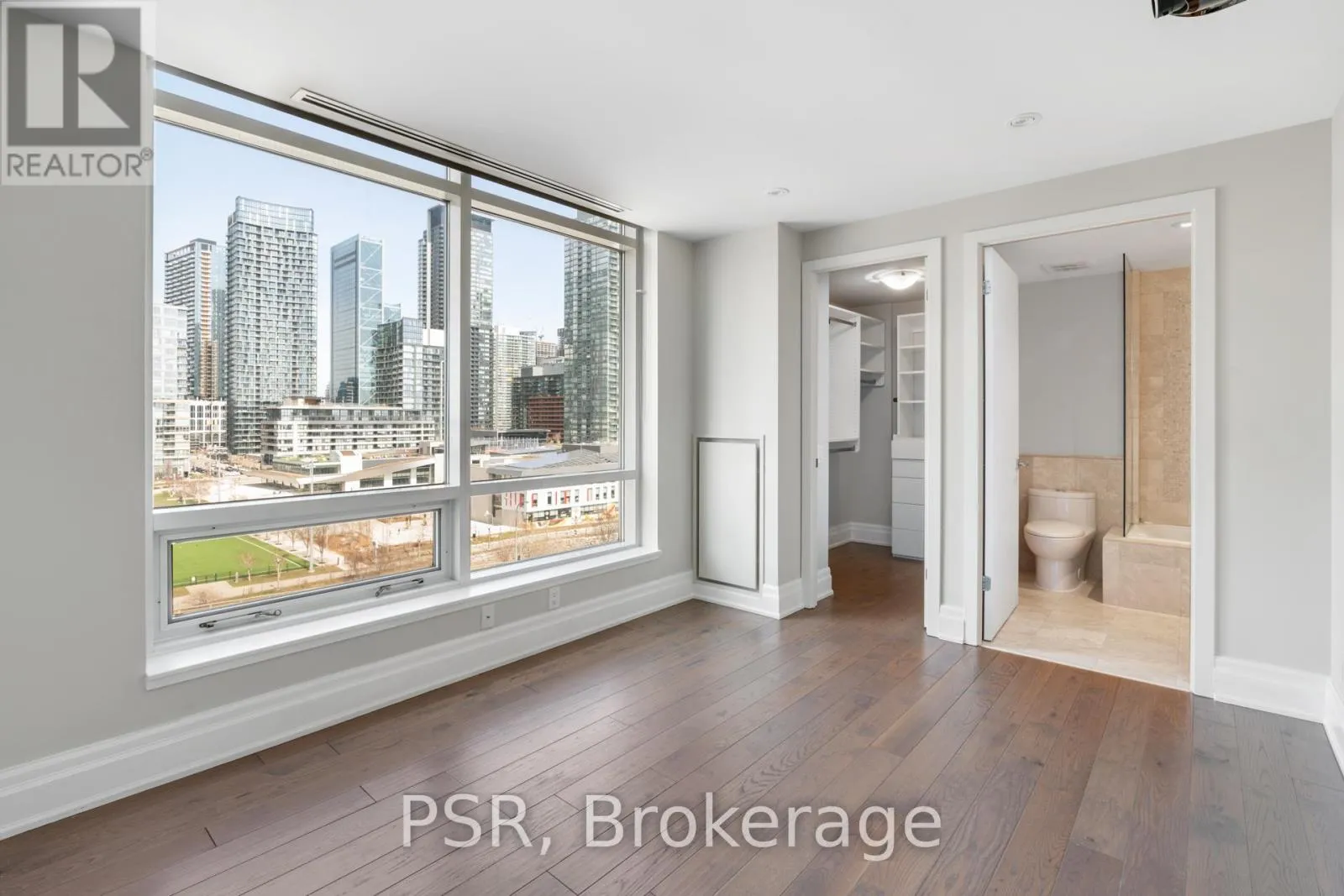 Queens Quay W & Spadina This beautifully renovated two-storey penthouse suite offers a thoughtfully designed layout spanning 1,315 sq. ft. of interior living space. The main level features a spacious living and dining area anchored by a gas fireplace, along with a large foyer adjacent to a powder room for added convenience. The suite features engineered hardwood floors throughout and an abundance of windows, allowing for exceptional natural light. The upper level offers a well-appointed primary bedroom complete with a walk-in closet and an ensuite bathroom, while the second bedroom also features its own ensuite. Laundry is conveniently located on the second level. Ideally situated steps to grocery, restaurants, LCBO, banks, and public transit, with close proximity to King West, Queen West, and some of Toronto's finest dining. Residents enjoy access to top-tier building amenities. One parking space and one locker included. (id:27476)