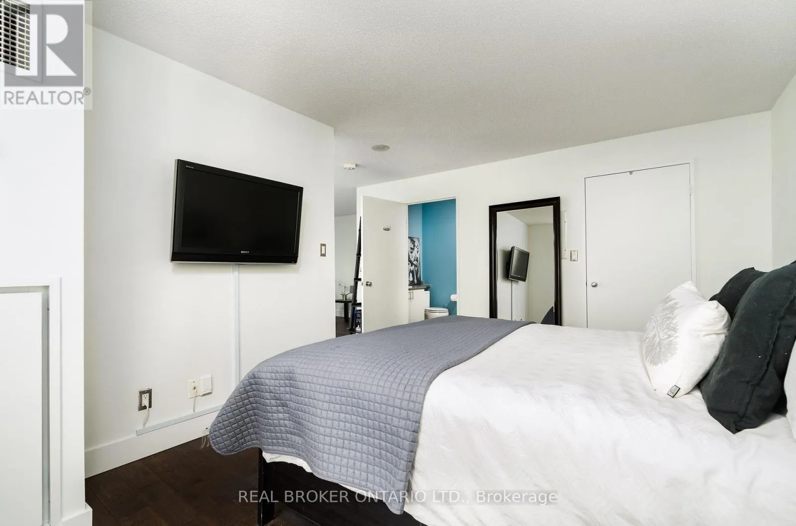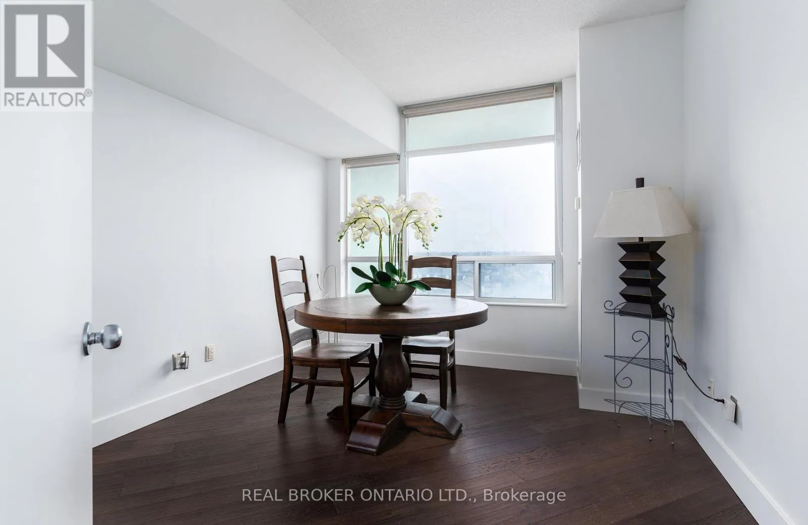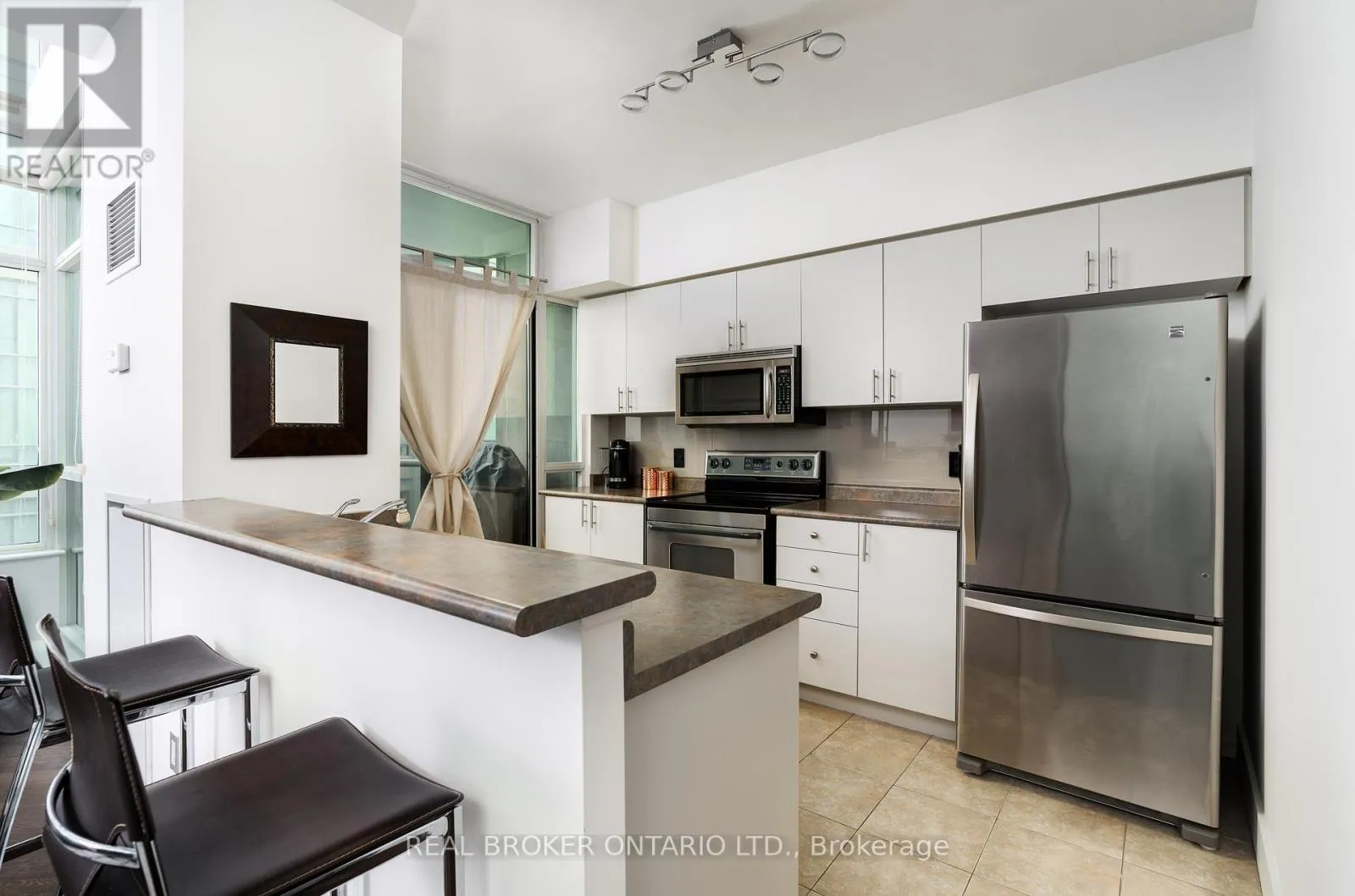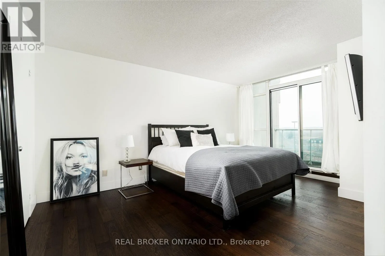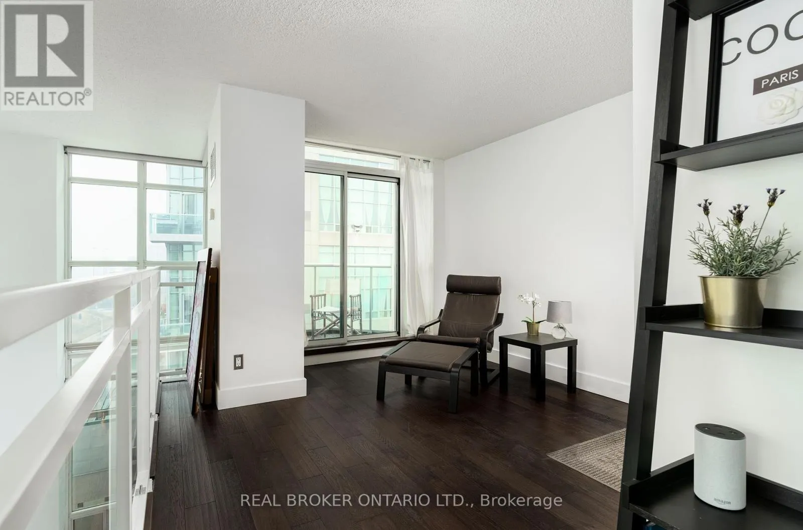 Grand St / Manitoba St Welcome to this stunning loft-style residence offering almost 1,400 sq ft of bright, open living in one of Toronto's most sought-after waterfront communities. This rare 2-bedroom + den, 2 full bath suite combines house-like space with dramatic design, featuring 17-ft floor-to-ceiling windows that flood the home with natural light and showcase unobstructed panoramic views.The open-concept main level is perfect for entertaining, highlighted by walnut hardwood flooring, a custom staircase, and a statement fireplace that anchors the living space. The thoughtfully designed layout includes a versatile den ideal for a home office or guest area. The spacious primary retreat features a custom walk-in closet and private 4-piece ensuite, offering both comfort and functionality. Enjoy seamless indoor-outdoor living with the rare bonus of three private balconies, plus the convenience of one parking space and a large locker on P1. Residents enjoy exceptional amenities including a rooftop garden, BBQ area, party & billiards room, gym, sauna, and squash court. Ideally located steps from waterfront trails, transit, shops, and cafes, with the new 12-acre Grand Avenue Park nearby adding even more green space to this vibrant community. A truly unique loft offering size, style, and lifestyle in one exceptional package. (id:27476)