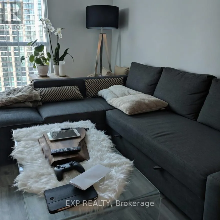 Sherway Gardens/Queensway Executive Suite Across from Sherway Gardens Mall and Trillium Health CentreLocated conveniently beside the QEW and 427, this open-concept 1+1 suite feels like a 2-bedroom. Features include hardwood floors, a peninsula kitchen with granite countertops, and modern finishes throughout.Enjoy luxury amenities including an indoor pool with whirlpool, a fully-equipped gym, 24-hour concierge service, and a party room with kitchen.This unit also comes with 2 tandem parking spaces and is just 10 minutes from downtown Toronto. (id:27476)