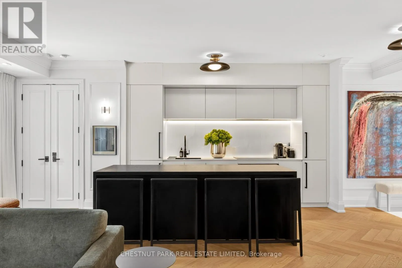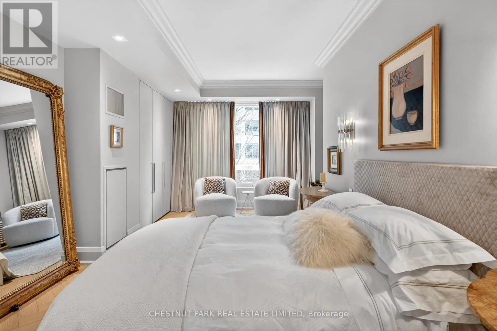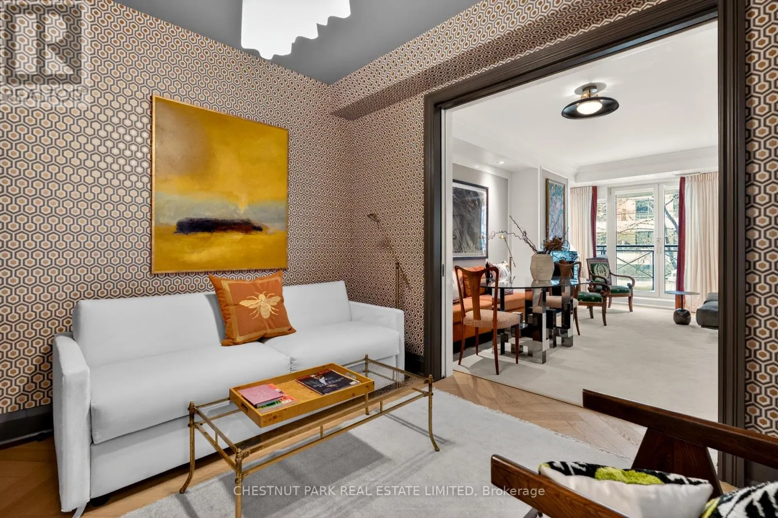 Scrivener Square/Yonge Street Welcome to this beautifully renovated and curated apartment which was completely gutted by the present owner in 2024-2025. The apartment faces south and is located in the treetops creating an abundance of natural light and privacy. The interior enjoys a good sized foyer which guides you into the expansive open concept Living room, Dining room and Open concept gourmet Kitchen. The apartment is appointed with engineered chevron pattern hardwood floors. There is excellent ceiling height for art connoisseurs and your art. The Living room is ideal for large furniture and is accented with an electric fireplace for cozy nights in. The Dining area is intimate yet it is large enough for a sumptuous dining experience of ten people. The kitchen is a chef's delight for cooking. There is ample space for preparation and a large centre island which also enjoys under counter eating for four people. There is a private good sized balcony off the Living room. The entire south side of the apartment is a wall of large windows. Off the Living room is an optional second bedroom, home office or den. This versatile room is entered by a set of double doors. Beyond this room is a 3 piece ensuite, which also serves as a powder room and a contained laundry area. There is excellent circular flow in the apartment. The Primary bedroom feels like a separate wing with a large king sized bedroom, sitting area, tailored & fitted closets with an abundance of space. Beyond is a glorious 5 piece custom designed into two sections for use and privacy. Off the main foyer is a walk-in Pantry for storage and a wine cooler. This is truly a wonderful and bespoke offering located in Summerhill with amazing proximity to the best dining, shops, the LCBO and the TTC. Park location for kids, peace and doggies. Truly a well thoughtful design experience. There is 24 hour Security and on site Property Management. (id:27476)